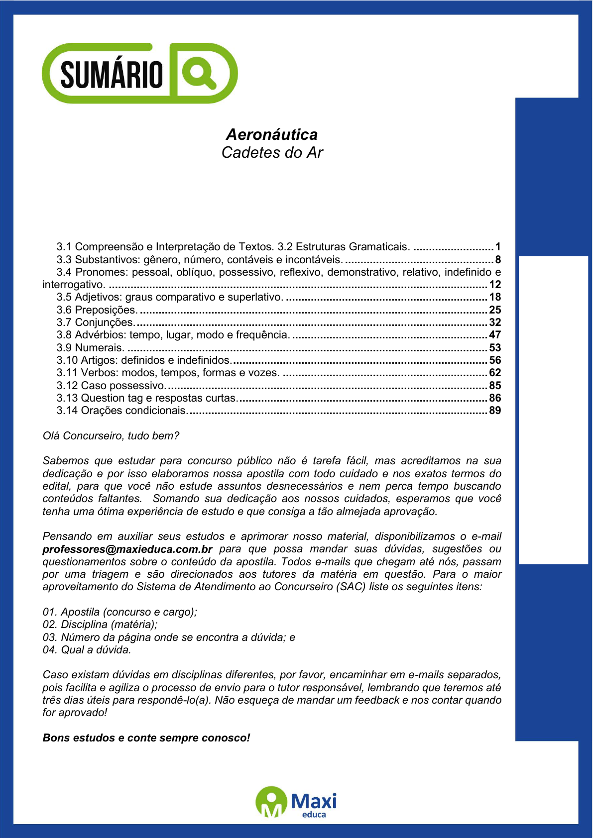 Pensando em auxiliar seus estudos e aprimorar nosso material, disponibilizamos o e-mail