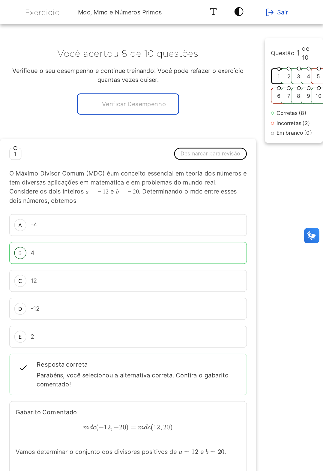 Você acertou 8 de 10 questões