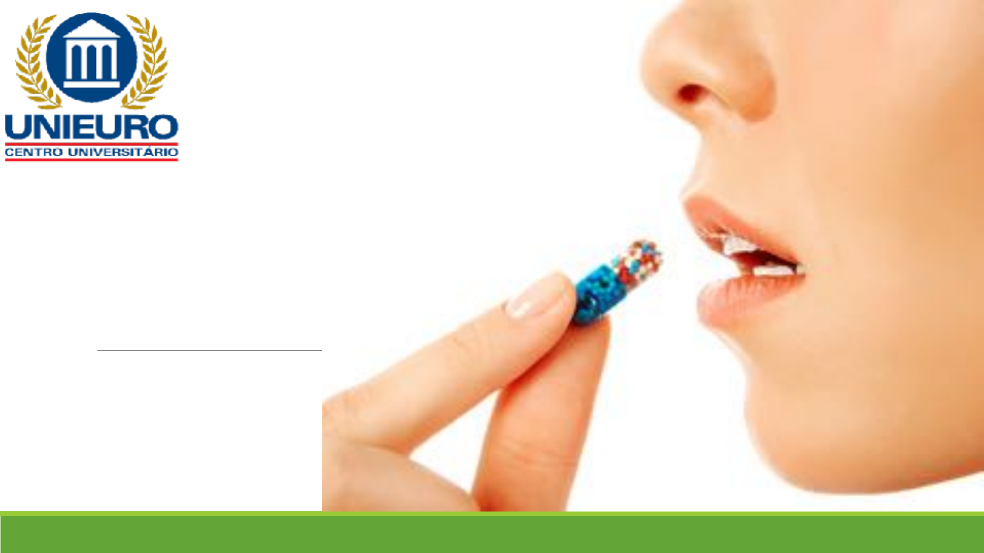 INTRODUÇÃO A FARMACOLOGIA APLICADA A CLÍNICA DE ODONTOLOGIA DISCIPLINA DE FARMACOLOGIA APLICADA Profª Ana Carolina Venção FARMACOLOGIA Dê acordo com a dose ou via de administração trará um efeito tóxico ou medicamento ORIGEM: GREGO Pharmakon: DROGA, MEDICAMENTO LOGOS: ESTUDO DISCIPLINA DE FARMACOLOGIA APLICADA Profª Ana Carolina Venção DISCIPLINA DE FARMACOLOGIA APLICADA ❑A utilização dos fármacos no auxílio ao tratamento das infecções e patologias bucais. ❑A utilização dos fármacos na prevenção das doenças das infecções e patologias bucais ❑Terapia prévia a procedimentos invasivos em odontologia APLICADA A CLÍNICA DE ODONTOLOGIA Profª Ana Carolina Venção DISCIPLINA DE FARMACOLOGIA APLICADA DEFINIÇÕES Droga: Substância química capaz de modificar a função dos organismos vivos,com finalidade medicamentosa ou sanitária. Fármaco: É uma substância química que altera a função fisiológica de um modo específico Profª Ana Carolina Venção DEFINIÇÕES DISCIPLINA DE FARMACOLOGIA APLICADA Droga: Substância química capaz de modif icar a função dos organismos vivos,com finalidade medicamentosa ou sanitária. LICÍTA INLICÍTA Profª Ana Carolina Venção Profª Ana Carolina Venção Medicamento: Produto farmacêutico, tecnicamente obtido ou elaborado: ❖ Finalidade profilática, ❖ Curativa ❖ Paliativa ou para fins de diagnóstico. DISCIPLINA DE FARMACOLOGIA APLICADA DEFINIÇÕES DISCIPLINA DE FARMACOLOGIA APLICADA DEFINIÇÕES Profª Ana Carolina Venção Remédio: Substância animal, vegetal, mineral ou sintética; procedimentos: ❑ Ginástica ❑ Massagem ❑ Acupuntura ❑ Banhos ❑ Fé ou crença; usados com intenção benéfica. DISCIPLINA DE FARMACOLOGIA APLICADA Profª Ana Carolina Venção Placebo: Tudo o que é feito com intenção benéfica para aliviar o sofrimento: fármaco/medicamento/droga/ r e m é d i o ( e m c o n c e n t r a ç ã o pequena ou mesmo na sua ausência). “não apresenta princípio ativo” DISCIPLINA DE FARMACOLOGIA APLICADA Profª Ana Carolina Venção Medicamento ético ou de referência: Sua principal função é servir de parâmetros para registros dos posteriores medicamentos similares e genéricos, quando sua patente expirar. Medicamento genérico: É um medicamento com a mesma substância ativa, forma farmacêutica e dosagem e com a mesma indicação que o medicamento original(de marca ). DISCIPLINA DE FARMACOLOGIA APLICADA Profª Ana Carolina Venção Medicamento similar: É o medicamento autorizado a ser produzido após prazo da patente de fabricação do medicamento de referência ou inovador ter vencido. DISCIPLINA DE FARMACOLOGIA APLICADA Dose letal 50: A concentração de uma substância química capaz de matar 50% da população de animais testados. A dose mede-se em ml (miligrama) de substância por cada quilograma (Kg) de massa corporal do animal testado. ESTUDO DA TOXICIDADE DO FÁRMACO EM ANIMAIS. Profª Ana Carolina Venção Biodisponibilidade: É uma medida da extensão de uma droga terapeuticamente ativa que atinge a circulação sistêmica e está disponível no local de ação. CAPACIDADE DO FÁRMACO ATINGIR UMA CONCENTRAÇÃO MÍNIMA NA CORRENTE SANGUÍNEA DISCIPLINA DE FARMACOLOGIA APLICADA Profª Ana Carolina Venção Bioequivalência: É um termo utilizado para avaliar a equivalência biológica esperada in vivo de duas preparações diferentes de um medicamento. Se dois medicamentos são ditos ser bioequivalentes , isso significa que se espera que eles sejam, para todas as intenções e propostas iguais. Profª Ana Carolina Venção DISCIPLINA DE FARMACOLOGIA APLICADA Dois fármacos que diminuem a dor ( analgesia ) podem ser definidos como bioequivalência. Posologia: É o modo como o medicamento deve ser administrado Meia-vida: É o tempo necessário para que metade de uma substância seja removida do organismo por um processo químico ou físico. Posologia - qual concentração / qual o intervalo de administração / qual via … encontramos nas bulas dos fármacos. Meia vida plasmática = O tempo que vai desde a administração do fármaco até ele ter metade de sua concentração máxima. ADMINISTRA - METABOLIZA - ELIMINA. DISCIPLINA DE FARMACOLOGIA APLICADA Profª Ana Carolina Venção Especificidade: Capacidade de um fármaco reconhecer apenas um receptor. Afinidade: Tendência de um fármaco se ligar ao seu receptor. Eficácia: Tendência de um fármaco, uma vez ligado, ativar o seu receptor. Profª Ana Carolina Venção DISCIPLINA DE FARMACOLOGIA APLICADA Agonistas: Substâncias que causam alterações na função celular, produzindo vários tipos de efeitos. Antagonistas: Substância que se liga ao receptor sem causar ativação impedindo consequentemente a ligação do agonista. Agonistas ligam no receptor produz efeito, e antagonistas ligam nos receptores e não produzem efeito. DISCIPLINA DE FARMACOLOGIA APLICADA Profª Ana Carolina Venção Antagonista competitivo reversível: Haverá a ligação do fármaco aos receptores da célula, porém eles se desligam. Antagonista competitivo irreversível: Haverá a ligação do fármaco aos receptores da célula, porém eles não se desligam. DISCIPLINA DE FARMACOLOGIA APLICADA Profª Ana Carolina Venção DISCIPLINA DE FARMACOLOGIA APLICADA Nenhuma Resposta Resposta Profª Ana Carolina Venção ➢ ANTAGONISMO POR BLOQUEIO DOS RECEPTORES: Antagonismo competitivo reversível e o antagonismo irreversível. ➢ ANTAGONISMO QUÍMICO: Duas substâncias se combinam em solução e uma anula o efeito farmacológico da outra. Ex.: Quelantes. ➢ ANTAGONISMO FARMACOCINÉTICO: Quando uma droga diminui o efeito de outra droga no sítio, afetando a absorção, o metabolismo ou a excreção do outro fármaco. Profª Ana Carolina Venção DISCIPLINA DE FARMACOLOGIA APLICADA O efeito de um fármaco é diminuído ou totalmente abolido na presença de outro fármaco. Dessensibilização: Diminuição do efeito de um fármaco que ocorre