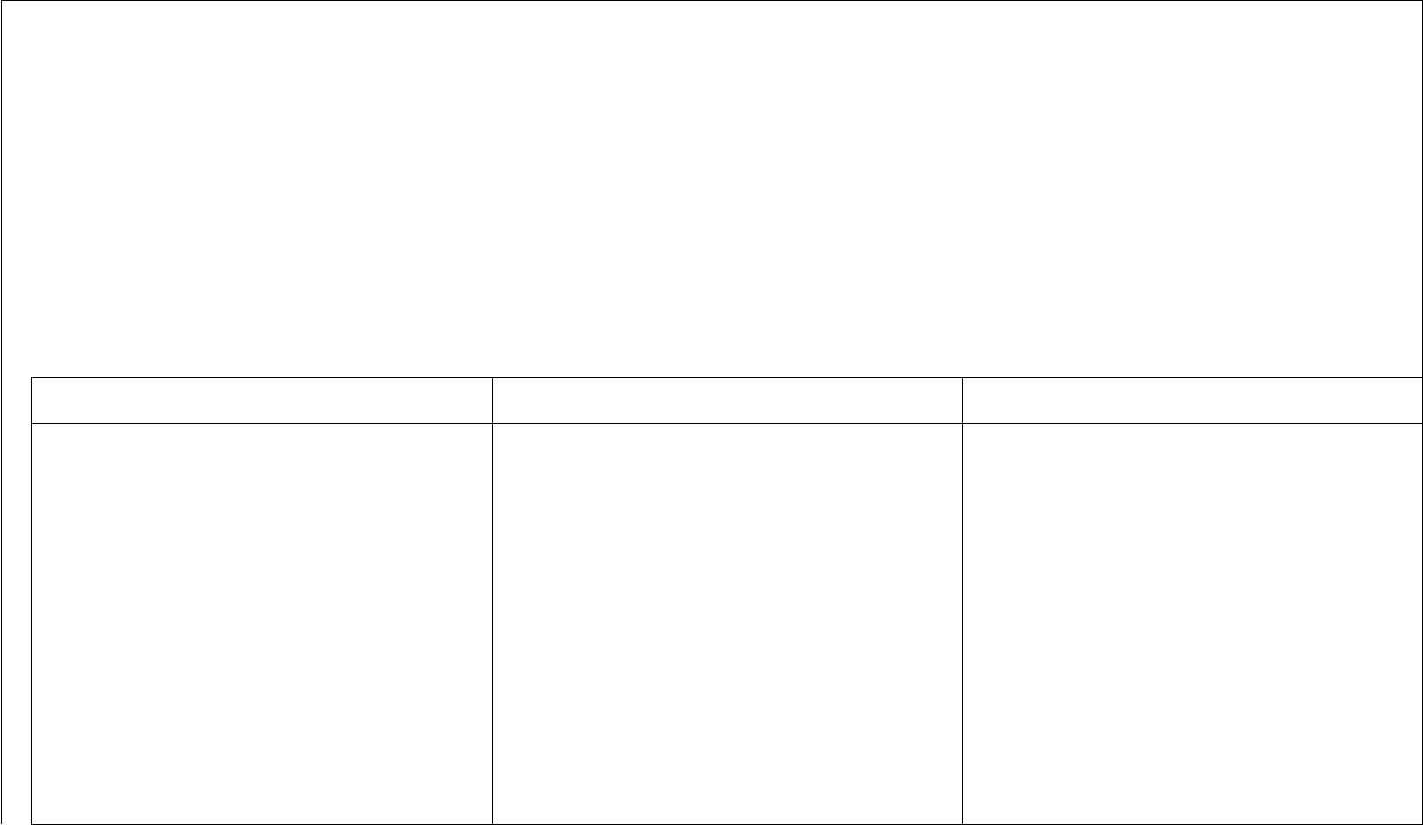 Prefeitura Municipal de Ibirité Secretaria Municipal de Educação PLANEJAMENTO DO 3º TRIMESTRE PERÍODO: 01/09/2023 A 14/12/2023 ESCOLA: PRÓ – INFÂNCIA DO BAIRRO JARDIM MONTREAL / OURO NEGRO EDUCAÇÃO INFANTIL/2º PERÍODO FAIXA ETÁRIA: CRIANÇAS PEQUENAS (4 A 5 ANOS E 11 MESES) CAMPO DE EXPERIÊNCIA: EF (ESCUTA, FALA, PENSAMENTO E IMAGINAÇÃO. OBJETIVOS DE APRENDIZAGEM E DESENVOLVIMENTO ESTRATÉGIAS/EXPERIÊNCIAS PROPOSTAS OBSERVAÇÕES (EI03EF01) Expressar ideias, desejos e sentimentos sobre suas vivências, por meio da linguagem oral e escrita (escrita espontânea), de fotos, desenhos e outras formas de expressão. (Dia da Independência do Brasil) · Roda de conversa, cartaz, dobradura de chapéu, música da independência. (Dia da Árvore) · Canções, número de letras, sílabas, som das letras, escrita espontânea, pintura. (Primavera) · Roda de conversa, canções, número de letras, sílabas, som das letras, escrita espontânea, pintura. (Dia Nacional da Consciência Negra) · Roda de conversa, escrita espontânea, número de letras, sílabas, som inicial e final, folhear livros a procura de imagens representativas, contação de história, registro através de desenhos. · 01/09 Início da semana da Pátria · 07/09- Dia da Independência do Brasil · 21/09 Dia da árvore · 23/09 Primavera · 23/09 Feira literária · Talento da terra 11/11 · 12/10 Dia das crianças · 29/10 Dia Nacional do livro · 15/11 Proclamação da república · 20/11 Dia da consciência negra (EI03EF02) Inventar brincadeiras cantadas, poemas e canções, criando rimas, aliterações e ritmos. (Dia da Independência do Brasil) · Roda de conversa, cartaz, dobradura de chapéu, música da independência. (Dia da Árvore) · Canções, número de letras, sílabas, som das letras, escrita espontânea, pintura. (Primavera) · Roda de conversa, canções, número de letras, sílabas, som das letras, escrita espontânea, pintura. (Dia das Crianças) · Músicas, brincadeiras, jogos, contação de história, filme, piquenique. (Dia Nacional da Consciência Negra) · Roda de conversa, escrita espontânea, número de letras, sílabas, som inicial e final, folhear livros a procura de imagens representativas, contação de história, registro através de desenhos. (EI03EF03) Escolher e folhear livros procurando orientar-se por temas e ilustrações e tentando identificar palavras conhecidas. (Feira Literária) · Rimas e aliterações, poema, composição do livro (capa, autor, ilustrador, paginação) confecção de cartaz com máscara da história contada. história em áudio/ vídeo. (Dia das Crianças) · Músicas, brincadeiras, jogos, contação de história, filme, piquenique. (Dia Nacional da Consciência Negra) · Roda de conversa, escrita espontânea, número de letras, sílabas, som inicial e final, folhear livros a procura de imagens representativas, contação de história, registro através de desenhos. · 01/09 Início da semana da Pátria · 07/09- Dia da Independência do Brasil · 21/09 Dia da árvore · 23/09 Primavera · 23/09 Feira literária· Talento da terra 11/11 · 12/10 Dia das crianças · 29/10 Dia Nacional do livro · 15/11 Proclamação da república · 20/11 Dia da consciência negra (EI03EF04) Recontar histórias ouvidas e planejar coletivamente roteiros de vídeos e de encenações definindo os contextos, os personagens. (Feira Literária) · Rimas e aliterações, poema, composição do livro (capa, autor, ilustrador, paginação) confecção de cartaz com máscara da história contada. história em áudio/ vídeo. (EI03EF06) Produzir suas próprias histórias orais e escritas (escrita espontânea), em situações com função social significativa. (Dia da Árvore) · Canções, número de letras, sílabas, som das letras, escrita espontânea, pintura. (Primavera) · Roda de conversa, canções, número de letras, sílabas, som das letras, escrita espontânea, pintura. (Talentos da Terra) · Desenho livre, pintura livre com guache, roda de conversa sobre o que cada um gosta de fazer. (EI03EF07) Levantar hipóteses sobre gêneros textuais veiculados em portadores conhecidos, recorrendo estratégias de observação gráfica e/ou de leitura. (Feira Literária) · Rimas e aliterações, poema, composição do livro (capa, autor, ilustrador, paginação) confecção de cartaz com máscara da história contada. história em áudio/ vídeo. (EI03EF08) Selecionar livros e textos de gêneros conhecidos para a leitura de um adulto e/ou para sua própria leitura (partindo de seu repertório sobre esses textos, como a recuperação pela memória, pela leitura das ilustrações). (Proclamação da república) · Música, roda de conversa, atividade de registro, soldado de quebra-cabeça. Escrita espontânea das palavras Proclamação da República. (EI03EF09) Levantar hipóteses em relação à linguagem escrita, realizando registros de palavras e textos, por meio de escrita espontânea. (Dia da Árvore) · Canções, número de letras, sílabas, som das letras, escrita espontânea, pintura. (Primavera) · Roda de conversa, canções, número de letras, sílabas, som das letras, escrita espontânea, pintura. (Proclamação da república) · Música, roda de conversa, atividade de registro, soldado de quebra-cabeça. Escrita espontânea das palavras Proclamação da República. (Dia Nacional da Consciência Negra) · Roda de conversa, escrita espontânea, número de letras, sílabas, som inicial e final, folhear livros a procura de imagens representativas, contação de história, registro através de desenhos. · 01/09 Início da semana da Pátria · 07/09- Dia da Independência do Brasil · 21/09 Dia da árvore · 23/09 Primavera · 23/09 Feira literária · Talento da terra 11/11 · 12/10 Dia das crianças · 29/10 Dia Nacional do livro · 15/11 Proclamação da república · 20/11 Dia da consciência negra Prefeitura Municipal de Ibirité Secretaria Municipal de Educação PLAN