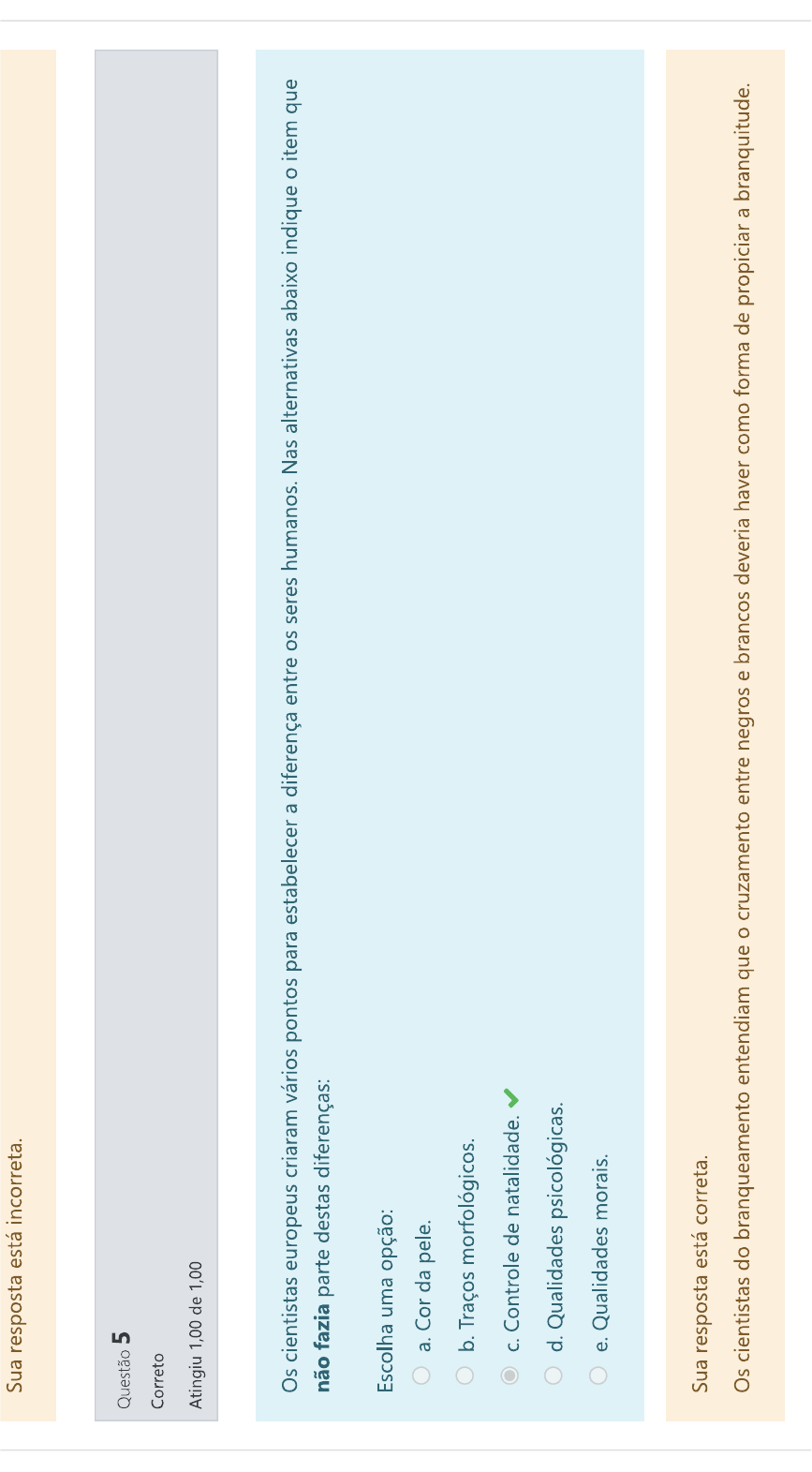 Leia a afirmação abaixo e assinale a alternativa correta: “O racismo é naturalizado numa sociedade que hierarquiza e desumaniza determinados grupos...