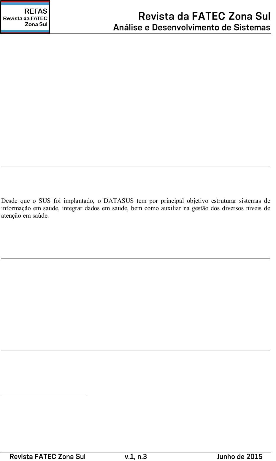 DATASUS: O USO DOS SISTEMAS DE INFORMAÇÃO NA SAÚDE PÚBLICA Areta Cristina Lima 1 Michele Cássia Januário 2 Pedro Thiago Lima 3 Walcyr de Moura e Silva 4 Artigo recebido em janeiro de 2015 e aceito em junho de 2015 RESUMO Desde que o SUS foi implantado, o DATASUS tem por principal objetivo estruturar sistemas de informação em saúde, integrar dados em saúde, bem como auxiliar na gestão dos diversos níveis de atenção em saúde. Este trabalho pesquisará alguns dos aplicativos que o DATASUS criou nos seus 23 anos de história; alguns com tecnologia em desuso, outros com tecnologia de ponta. Palavras-chave: DATASUS; Saúde Pública; Sistemas de Informação. ABSTRACT Since the SUS was implemented, the DATASUS aims to stimulate health information systems, integrate data on health and assist in the management of the various health care levels. This work will search some of the applications that DATASUS has created in its 23 years of history, with some technology into disuse, others with the latest technology. Keywords: DATASUS; Public Health; Information System. 1 Egressa do curso de Análise e Desenvolvimento de Sistemas da FATEC Zona Sul. email: aretacristina2@hotmail.com. 2 Egressa do curso de Análise e Desenvolvimento de Sistemas da FATEC Zona Sul. email michele.januario@gmail.com. 3 Egresso do curso de Análise e Desenvolvimento de Sistemas da FATEC Zona Sul. email: pedrothiagolima@yahoo.com.br. 4 Professor dos cursos de Gestão Empresarial e Análise e Desenvolvimento de Sistemas da FATEC Zona Sul. email: walcyr@gmail.com. CONVIDADO 17 1 INTRODUÇÃO A última revisão da Constituição Brasileira, que data do ano de 1988, foi resultado de um amplo debate em um período de anos em diversos segmentos da sociedade. Nesta versão, o Estado passou a ter o dever de garantir saúde a todos. O direito à Saúde foi consolidado com a criação do SUS, implementado pela Lei Orgânica da Saúde – Lei 8080, de 19 de setembro de 1990 que dispõe sobre a promoção e organização dos serviços de saúde. No mesmo ano é sancionada a Lei 8.142, 28 de dezembro de 1990, que torna legal a participação popular na gestão do SUS e dispõe sobre os recursos financeiros e transferências intergovernamentais dos mesmos na área da saúde. Desde que o SUS foi implantado várias ferramentas foram construídas para atender à demanda da Saúde Pública, que é construída por meio do levantamento de dados dos vários sistemas de informação. A principal ferramenta vem com a criação do DATASUS através do Decreto 100 de 16/04/1991, cujos dados confere justificativas concretas para uma série de políticas públicas em saúde. 2 REVISÃO DA LITERATURA Em 1990, é criado o SUS – Sistema Único de Saúde com a Lei 8.080 (Lei Orgânica da Saúde) de 19 de setembro de 1990 que dispõe, além de outros pontos, sobre a promoção, prevenção e organização dos serviços de saúde. Também, da Lei 8.142 de 28 de dezembro de 1990, que torna legal a participação popular na gestão do SUS e dispõe sobre os recursos financeiros e transferências intergovernamentais dos mesmos na área da saúde. Os serviços de saúde devem obedecer a parâmetros técnicos e serem acessíveis e organizados de forma hierarquizada e sua gestão deve ser descentralizada. Contudo, desde que o SUS foi implantado, várias ferramentas foram construídas para atender à demanda da Saúde Pública. O que é conhecida como demanda em saúde é o conjunto das necessidades da população sob a luz da temática saúde. A informação adquirida dos diversos sistemas de informação vem de encontro com a criação de um departamento onde é possível armazenar grande quantidade de informações, e que essas possam embasar as políticas públicas de saúde. Nesse sentido, para o provimento da informação em saúde, é criado o Departamento de Informática do SUS – o DATASUS. O Departamento é formalizado pelo decreto 100 de 16/04/1991. Junto, cria-se a FUNASA – Fundação Nacional de Saúde 5 . Antes do DATASUS, o processamento de dados e contas referentes à saúde eram realizadas pelo DATAPREV (Empresa de Tecnologia da Informação da Previdência Social) 6 . 5 Brasil. Ministério da Saúde. Secretaria Executiva. Departamento de Informática do SUS. DATASUS Trajetória 1991-2002 / Ministério da Saúde, Secretaria Executiva, Departamento de Informática do SUS. – Brasília: Ministério da Saúde, 2002. 18 O DATAPREV utilizava mainframes da Unisys, contudo o DATASUS já inicia as suas atividades permeadas pelo conceito de Downsizing, que é o oposto de fazer uso de sistemas de grande porte já instalados, em prol da redução do porte dos equipamentos de informática utilizados para o processamento de informações 7 . No seu início, o DATASUS utiliza como equipamentos microcomputadores com processador 386, Banco de Dados Oracle; herdam do INAMPS, o BULL para conversão e migração dos dados processados pelo DATAPREV e INAMPS e equipamento Alfa da Digital 8 . Em 1998, os equipamentos para o sítio do DATASUS, são alocados numa Sala-Cofre de 76 m 2 , que conta com: nobreak, climatização, monitoração de temperatura, umidade e detecção de incêndio e combate a incêndio no interior da sala. Requisitos necessários para manter a enorme base de dados, arquivos, sistemas de gerenciamento de redes, aplicativos, elementos ativos de rede LAN e WAN. Todas as informações são copiadas para o meio magnético, respeitando a política de backup vigente. Por exemplo: no Sistema de Informação Hospitalar (SIH) geram-se duas cópias de segurança. Uma para a empresa especializada em mídias magnéticas e outra para o DATASUS/DF. O acesso ao local é controlado por câmeras de segurança e o pessoal autorizado a entrar na sala deve possuir cartão que gera histórico com data e hora do acesso. As fitas geradas ficam em uma sala, adjacente à sala-cofre, que só é aberta ao pessoal autorizado para colocação e retirada de fit