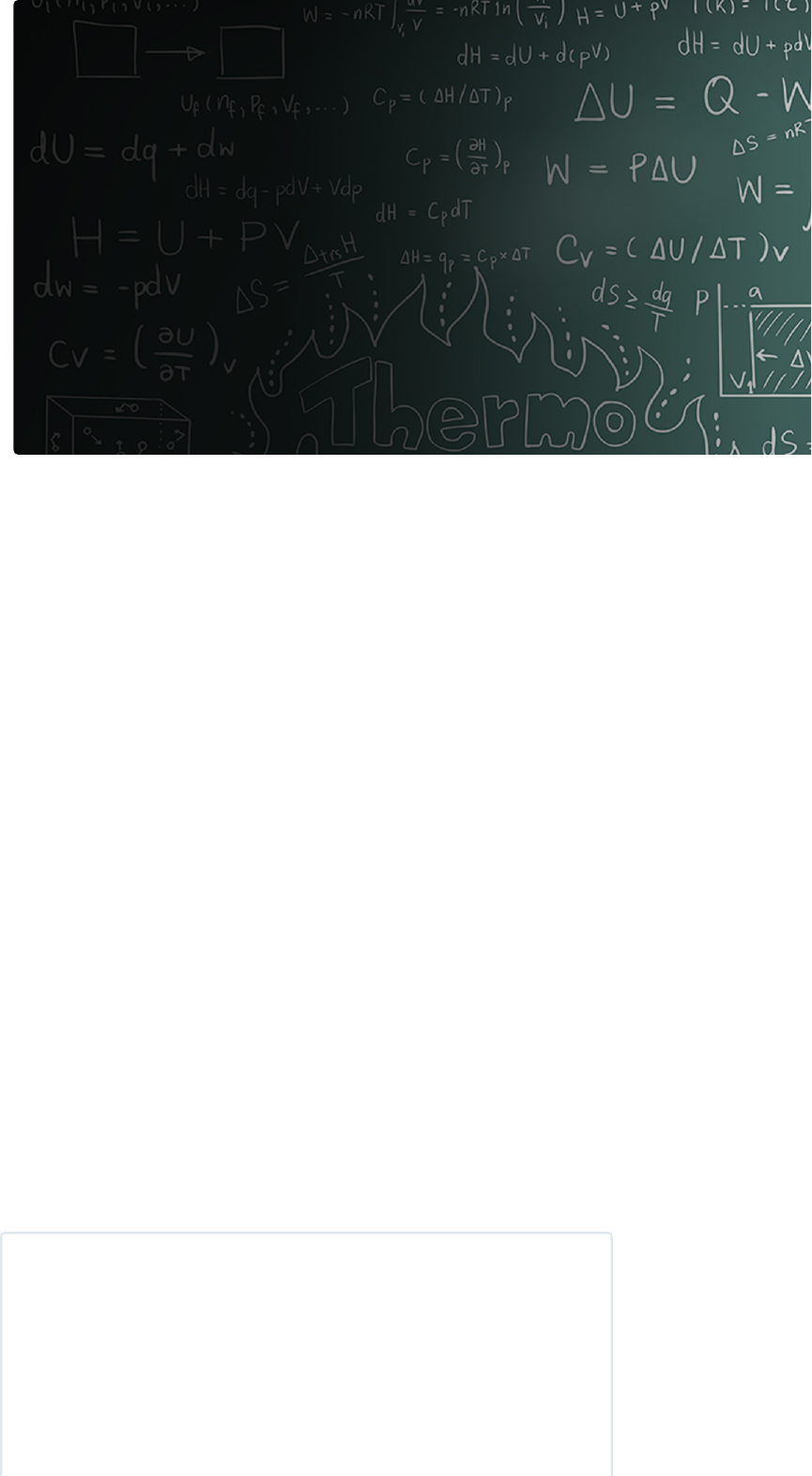 Sistemas termodinâmicos Prof. Fábio Bicalho Cano Descrição Apresentação de conceitos e definições da termodinâmica essenciais para a identificação e a descrição do comportamento de sistemas com base nas propriedades e nos processos. Propósito Uma base teórica sólida permite ao engenheiro projetar e analisar vários sistemas de interesse, como sistemas de refrigeração voltados para a refrigeração doméstica, comercial e industrial, sistemas de potência destinados ao transporte terrestre, marítimo e aéreo e à produção de energia elétrica ou processos industriais designados para a obtenção de produtos químicos, alimentos e medicamentos. Objetivos Módulo 1 Estado e propriedade de uma substância 24/07/24, 11:55 Sistemas termodinâmicos https://stecine.azureedge.net/repositorio/00212en/03525/index.html?brand=estacio# 1/66 Reconhecer as definições e os conceitos básicos da termodinâmica. Módulo 2 Equilíbrio de fase de uma substância pura Identificar o comportamento e as propriedades de substâncias puras primordiais para os cálculos termodinâmicos. Módulo 3 Lei zero da termodinâmica Analisar a lei zero da termodinâmica. A importância da termodinâmica aplicada à engenharia Orientação sobre unidade de medida Em nosso material, unidades de medida e números são escritos juntos (ex.: 25km) por questões de tecnologia e didáticas. No entanto, o Inmetro estabelece que deve existir um espaço entre o número e a unidade (ex.: 25 km). Logo, os Introdução 24/07/24, 11:55 Sistemas termodinâmicos https://stecine.azureedge.net/repositorio/00212en/03525/index.html?brand=estacio# 2/66 1 - Estado e propriedade de uma substância Ao �nal deste módulo você será capaz de reconhecer as de�nições e os conceitos básicos da termodinâmica. Vamos começar! Estado e propriedade de uma substância Veja agora os conceitos e definições relativos ao estado termodinâmico e às propriedades da matéria. relatórios técnicos e demais materiais escritos por você devem seguir o padrão internacional de separação dos números e das unidades. 24/07/24, 11:55 Sistemas termodinâmicos https://stecine.azureedge.net/repositorio/00212en/03525/index.html?brand=estacio# 3/66 Conceitos básicos de termodinâmica O que é a termodinâmica? Essencialmente, ela é a ciência que estuda a energia, as suas transformações e as eficiências energéticas dessas transformações. Como ciência, a termodinâmica estrutura-se em leis de caráter geral que expressam todos os fatos experimentais evidenciados até os dias de hoje. Dentro do vocabulário da termodinâmica, algumas definições e conceitos devem ser apresentados com clareza para que interpretações equivocadas não ocorram em análises futuras. Dessa maneira, temos as seguintes definições: Sistema Porção de matéria definida e identificada que representa uma parte do todo (conhecido como universo). Ao iniciarmos um estudo termodinâmico, devemos definir o sistema, que geralmente é identificado por meio de uma superfície fechada pontilhada. Vizinhança "Também pode ser identificado por vizinhanças ou ainda, ambiente". É o complemento do sistema, ou seja, aquilo que está além dele e que acaba por completar o universo. Fronteira Interface entre o sistema e sua vizinhança. 24/07/24, 11:55 Sistemas termodinâmicos https://stecine.azureedge.net/repositorio/00212en/03525/index.html?brand=estacio# 4/66 A imagem ao lado apresenta um sistema onde é possível identificar sua vizinhança e os tipos de fronteira: A fronteira é qualquer superfície fechada, real ou imaginária, fixa ou variável, que estabelece os limites físicos do sistema. Imagem 1.1 - Sistema, fronteira e vizinhança. Como exemplo dos tipos de fronteira, observe as imagens 1.2, 1.3 e 1.4. A imagem 1.2 apresenta uma fronteira real e variável, como pode ser observado em um conjunto cilindro-pistão automotivo: 24/07/24, 11:55 Sistemas termodinâmicos https://stecine.azureedge.net/repositorio/00212en/03525/index.html?brand=estacio# 5/66 Imagem 1.2 – Gás confinado em um conjunto cilindro-pistão: fronteira real e variável. Já a imagem 1.3 apresenta uma fronteira real e fixa, como as observadas em reservatórios de parede rígida: 24/07/24, 11:55 Sistemas termodinâmicos https://stecine.azureedge.net/repositorio/00212en/03525/index.html?brand=estacio# 6/66 Imagem 1.3 – Cilindros cheios de gás: fronteira real e fixa. Por fim, a imagem 1.4 tem um conjunto de possíveis sistemas com fronteiras imaginárias em uma planta de potência a vapor simples: Imagem 1.4 – Fronteiras imaginárias: A – Sistema de geração de vapor; B – Sistema de potência; C – Sistema de geração elétrica; D – Sistema de água de resfriamento. Estado termodinâmico O estado termodinâmico (ou simplesmente estado) é a condição física estabelecida pela organização das espécies químicas que compõem a matéria do sistema e que macroscopicamente é definida por propriedades mensuráveis. Esse estado representa uma situação de equilíbrio na qual os valores dessas propriedades definidoras não se alteram no tempo nem apresentam tendências à mudança. Tais propriedades são denominadas variáveis de estado, coordenadas termodinâmicas ou propriedades de estado. Observe a imagem a seguir e tente responder: Qual é a diferença entre os estados físico sólido, líquido e gasoso? 24/07/24, 11:55 Sistemas termodinâmicos https://stecine.azureedge.net/repositorio/00212en/03525/index.html?brand=estacio# 7/66 Imagem 1.5 – Estados físicos ou de agregação da matéria. Confira a seguir a diferença entre esses estados: Estado sólido No estado sólido, os átomos, os íons ou as moléculas que compõem a matéria apresentam uma alta interação intermolecular e um pequeno distanciamento entre as espécies. Estado líquido Por sua vez, o líquido é um estado intermediário entre os estados sólido e gasoso, portanto, há uma interação intermolecular e 