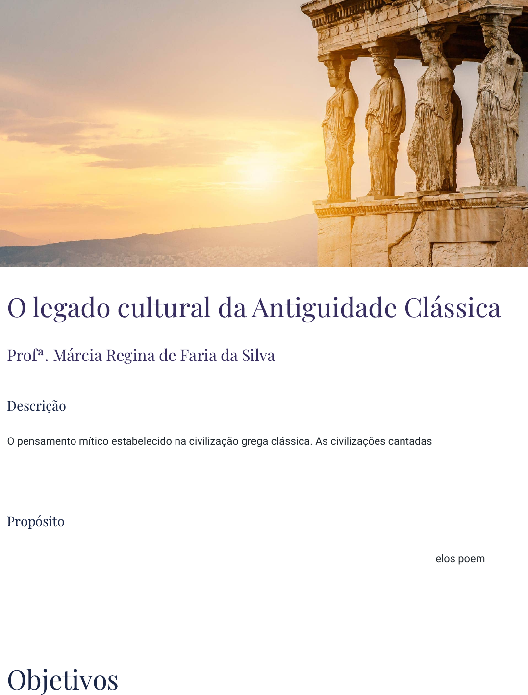 O legado cultural da Antiguidade Clássica Profª. Márcia Regina de Faria da Silva Descrição O pensamento mítico estabelecido na civilização grega clássica. As civilizações cantadas nas obras dos autores Homero e Hesíodo, e sua influência em povos posteriores. O pensamento filosófico como superação do pensamento mítico e constitutivo da pólis grega. O legado cultural da Antiguidade Clássica. Propósito Compreender a sociedade grega a partir da constituição da civilização micênica cantada pelos poemas homéricos; entender os conceitos de mito, rito e religião para os povos primitivos e a sistematização dos mitos pela composição hesiódica; bem como o processo gradativo de desmitificação que leva ao pensamento filosófico, permitirá ao aluno uma clara percepção do legado da Antiguidade Clássica. Objetivos Módulo 1 Identificar o contexto histórico-social vivido pelos gregos na Antiguidade Clássica. Módulo 2 Reconhecer a relação entre mito e religião na Antiguidade Clássica. Módulo 3 Identificar as principais correntes filosóficas gregas e sua importância para a construção do pensamento racional. Muito já ouvimos falar sobre a influência de gregos na atualidade. A cultura grega foi base e fundamento para a cultura ocidental em muitos aspectos. A matemática, a física, a química e até mesmo a teoria musical, tiveram sua origem na filosofia grega. Concepções míticas ainda estão presentes na atualidade e reelaborados até mesmo em produções cinematográficas. Os grandes heróis épicos com sua nobreza guerreira inspiram a construção dos heróis do presente. Os mitos de fim de mundo estão mais do que na moda. A filosofia, o mito e a religião gregas estão presentes em nossas vidas ainda hoje. Neste tema, aprenderemos a identificar todo esse legado. Introdução 1 - A sociedade grega na Antiguidade Ao �nal deste módulo, você será capaz de identi�car o contexto histórico-social vivido pelos gregos na Antiguidade Clássica. Quem eram os gregos? Quando pensamos em Antiguidade Clássica, certamente vem à nossa mente histórias da Guerra de Tróia, do Minotauro ou de Hércules. Nosso imaginário está permeado de mitos de heróis e deuses. Mas você já parou para pensar em como deve ter sido a vida do povo grego naquele período? Os habitantes da Grécia são basicamente a síntese de quatro povos indo-europeus que migraram em períodos diferentes para a Grécia continental e para as ilhas, as Cíclades. São eles: Jônios Eólios Aqueus Dórios As primeiras lendas em torno da consolidação de uma civilização estão relacionadas à luta de Teseu com o Minotauro, um ser metade touro, metade humano, que representava a soberania da civilização minoica de Creta sobre a Grécia. A derrota do Minotauro simboliza a derrocada da civilização minoica e o advento da civilização micênica, formada basicamente pelos povos aqueus. Essa civilização é cantada na Guerra de Troia, por meio de seus heróis imortalizados pelos poemas de Homero, a Ilíada e a Odisseia. Teseu lutando contra o Minotauro, por Étienne-Jules Ramey (francês, 1796-1852) O romance No Palácio do Rei Minos, do grego Níkos Kazantizákis, retrata de forma primorosa a civilização minoica de Creta. Vale a pena conhecer essa obra! A Guerra de Troia é o episódio histórico mais antigo do povo grego e pode ser considerado como um exemplo de como era organizada a civilização micênica. Para além dos mitos e das lendas, sabemos que Troia teve existência histórica. Foram descobertas, em escavações arqueológicas no que hoje é a Turquia, várias cidades sobrepostas no lugar em que os antigos indicavam que Troia se localizava. Ruínas da Antiga Cidade de Tróia. Patrimônio Mundial da UNESCO na Turquia Schliemann indica, após testes de datação e análise comparativa de peças encontradas, denominadas de “Tesouro de Atreu”, que se coadunavam com descrições de objetos nas narrativas homéricas, que a sétima cidade teria sido a Troia cantada pelos gregos. Saiba mais O motivo histórico para tantas cidades destruídas, provavelmente tenha sido comercial. Troia localizava-se no meio do caminho entre a Grécia e o Oriente e, provavelmente, atrapalhava o comércio dos gregos. Vários monumentos foram encontrados também na Grécia continental que se relacionam de alguma forma com as narrativas dos heróis que participaram da Guerra de Troia. chliemann “É famosa a história de Heinrich Schliemann, um mercador alemão apaixonado pela poesia homérica, que, decidido a encontrar os locais descritos nas epopeias, empreendeu uma série de expedições em busca dos locais citados na Ilíada e na Odisseia. Suas escavações, realizadas ao final do século XIX, provocaram danos irreparáveis em muitos dos sítios arqueológicos contra os quais investiu, no entanto, as escavações que fez em Micenas – à procura do palácio do rei Agamêmnon – e em Hissarlik, na Turquia – onde descobriu a cidade de Troia –, revelaram novos e fascinantes objetos de estudo para a melhor compreensão do passado grego.” (Gabrecht; Tragino, 2017, pág. 01) Helena e Menelau, de Goethe Tischbein O grego Theodoros Spyropoulos, em 2002, após vinte anos de escavações, afirmou que tinha descoberto o que havia restado do palácio do Rei Menelau e de sua mulher Helena. As ruínas ficam situadas a aproximadamente 25 quilômetros de Esparta, no Sul da Grécia. Acredita-se que o local pode ter sido a antiga Lacedemônia, o reino de Menelau, antes da destruição em 1200 a.C. por um terremoto. Oficinas, depósitos, muros e tumbas suntuosas foram encontrados nas escavações. Um outro arqueólogo, Christofilis Maggidis, também no Sul da Grécia, acredita ter encontrado o fragmento de um trono do palácio de Micenas, governado por Agamêmnon. Miticamente, por outro lado, a guerra teria acontecido por causa do rapto de Helena, esposa de Menelau, por Páris, príncipe de Troia, filho mais 