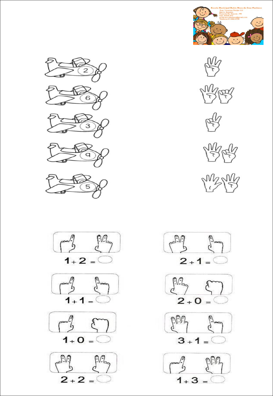 CONTE A QUANTIDADE DE DEDINHOS, E LIGUE AO NUMERAL CORRESPONDENTE : JUNTE A QUANTIDADE INDICADA PELOS DE DEDINHOS E REGISTRE O TOTAL: