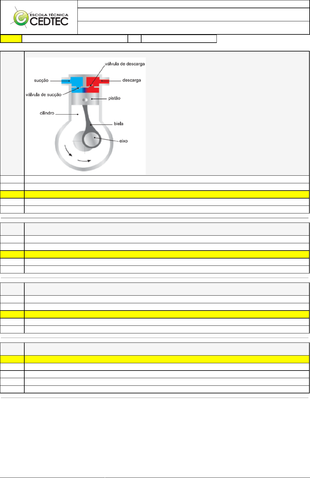 25/07/2024 20:21:39 1/1 REVISÃO DE SIMULADO Nome: PILATOS ARIMATEIA DA PAIXAO Disciplina: Hidráulica e Pneumática Respostas corretas são marcadas em amarelo X Respostas marcardas por você. Questão 001 Que tipo de compressor e mostrado na figura abaixo: X A) Compressor rotativo B) Compressor de eixo rotativo C) Compressor alternativo D) Compressor de lóbulos E) Compressor de parafuso Questão 002 Qual das bombas abaixo regula a vazão de fluido de acordo com necessidade do sistema hidráulico? A) Motor de engrenagem B) Bomba de palheta X C) Bomba de pistões D) Bomba centrifuga E) Bomba de engrenagem Questão 003 Calcule a foça aplicada pelo cilindro de 100 mm de diâmetro e pressão de 20 N/mm² A) 57 mil N B) 25 mil Kg X C) 157 mil N D) 100 kg E) 157 N Questão 004 Qual das opções abaixo não é uma vantagem do sistema hidráulicos? X A) Alto custo inicial B) Movimento iniciado em plena carga C) Possibilidade de trabalho submerso D) Transmitir grande força e torque em espaço reduzido E) Movimentos suaves e sem vibrações