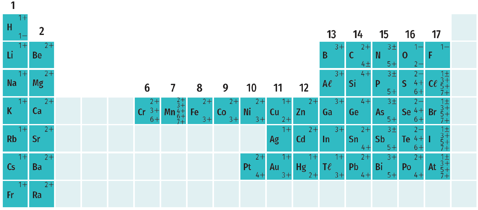 TABELA DE ÂNIONS Carga –1 F– Fluoreto Cℓ– Cloreto Br– Brometo I– Iodeto CℓO– Hipoclorito 2C O− Clorito 3C O− Clorato 4C O− Perclorato 2NO− Nitrito 3NO− Nitrato CN– Cianeto OCN– Cianato SCN– Tiocianato 3PO− Metafosfato 2 2H PO− Hipofosfito 3HCO− Bicarbonato 4MnO− Permanganato OH– Hidróxido H– Hidreto H3CCOO– Acetato Carga –2 O2– Óxido 2 2O − Peróxido S2– Sulfeto 2 3SO − Sulfito 2 4SO − Sulfato 2 2 3S O − Tiossulfato 2 3CO − Carbonato 2 2 4C O − Oxalato 2 3SiO − Metassilicato 2 3HPO − Fosfito 2 4HPO − Hidrogenofosfato 2 4CrO − Cromato 2 2 7Cr O − Dicromato 2 4MnO − Manganato 2 3MnO − Manganito Carga –3 3 4PO − Fosfato 3 3BO − Borato 3 6Fe(CN) − Ferricianeto Carga –4 4 2 7P O − Pirofosfato 4 4SiO − Silicato 4 6Fe(CN) − Ferrocianeto TABELA DE CÁTIONS MONOVALENTES (1+) BIVALENTES (2+) TRIVALENTES (3+) TETRAVALENTES (4+) Cá ti on s co m a pe na s um a va lê nc ia H3O+: hidrônio 4NH+ : amônio Li+: lítio Na+: sódio K+: potássio Rb+: rubídio Cs+: césio Ag+: prata Be2+: berílio Mg2+: magnésio Ca2+: cálcio Sr2+: estrôncio Ba2+: bário Ra2+: rádio Zn2+: zinco Cd2+: cádmio Aℓ3+: alumínio Bi3+: bismuto Cá ti on s co m m ai s de u m a va lê nc ia Cu+: cobre(I) ou cuproso 2 2Hg + : mercúrio(I) ou mercuroso Au+: ouro(I) ou auroso Cu2+: cobre(II) ou cúprico Hg2+: mercúrio(II) ou mercúrico Cr2+: crômio(II) ou cromoso Fe2+: ferro(II) ou ferroso Co2+: cobalto(II) ou cobaltoso Ni2+: níquel(II) ou niqueloso Sn2+: estanho(II) ou estanoso Pb2+: chumbo(II) ou plumboso Mn2+: manganês(II) ou manganoso Pt2+: platina(II) ou platinoso Ti2+: titânio(II) ou titanoso Au3+: ouro(III) ou áurico Cr3+: crômio(III) ou crômico Fe3+: ferro(III) ou férrico Co3+: cobalto(III) ou cobáltico Ni3+: níquel(III) ou niquélico Mn3+: manganês(III) Sn4+: estanho(IV) ou estânico Pb4+: chumbo(IV) ou plúmbico Mn4+: manganês(IV) ou mangânico Pt4+: platina(IV) ou platínico Ti4+: titânio(IV) ou titânico