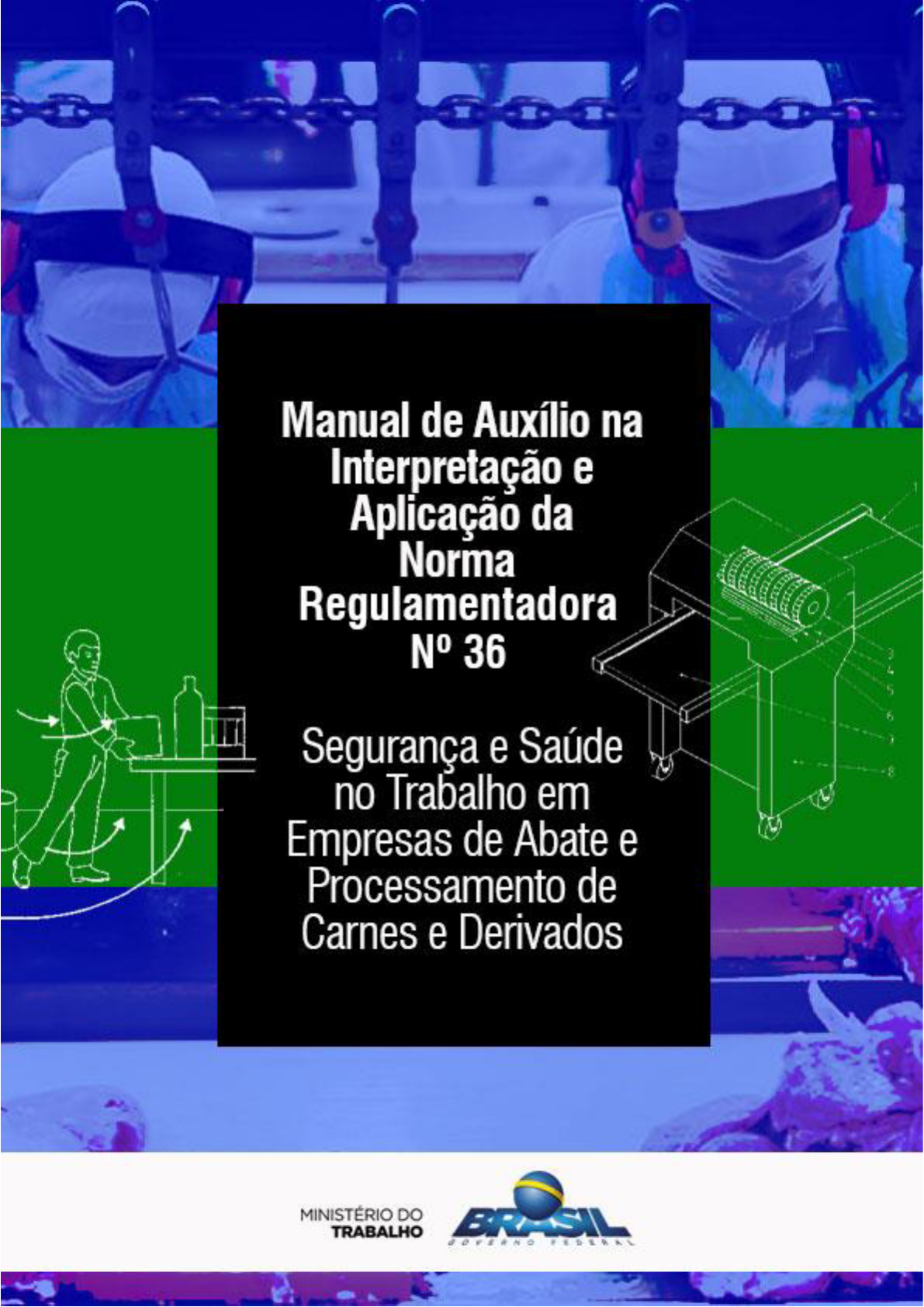 Ministério do Trabalho Secretaria de Inspeção do Trabalho Manual de Auxílio na Interpretação e Aplicação da Norma Regulamentadora nº 36: Segurança e Saúde no Trabalho em Empresas de Abate e Processamento de Carnes e Derivados PRESIDENTE DA REPÚBLICA Michel Temer MINISTRO DO TRABALHO Ronaldo Nogueira SECRETÁRIA DE INSPEÇÃO DO TRABALHO Maria Teresa Pacheco Jensen DIRETORA DO DEPARTAMENTO DE SEGURANÇA E SAÚDE NO TRABALHO Eva Patrícia Gonçalo Pires Os seguintes profissionais colaboraram para a realização da presente publicação: Rosemary Dutra Leão, Auditora-Fiscal do Trabalho aposentada; Paulo Antonio Barros Oliveira, Auditor-Fiscal do Trabalho aposentado, professor URGS; June Rezende, Auditora-Fiscal do Trabalho; Mauro Marques Müller, Auditor-Fiscal do Trabalho; Renata Matsmoto, Auditora-Fiscal do Trabalho; Maria Muccillo, pesquisadora da Fundacentro; Christianne Andrade Rocha, Auditora-Fiscal do Trabalho. © 2017 – Ministério do Trabalho É permitida a reprodução parcial ou total desta obra, desde que citada a fonte. As Normas da Associação Brasileira de Normas Técnicas - ABNT são protegidas pelos direitos autorais por força de legislação nacional e dos acordos, convenções e tratados em vigor, não podendo ser reproduzidas total ou parcialmente sem autorização prévia e por escrito da ABNT. As Normas ABNT foram utilizadas nesta obra mediante autorização expressa da ABNT. Brasília/DF, Setembro de 2017. Manual de Auxílio na Interpretação e Aplicação da Norma Regulamentadora nº 36: Segurança e Saúde no Trabalho em Empresas de Abate e Processamento de Carnes e Derivados Brasília - DF SETEMBRO DE 2017 In memoriam Lys Esther Rocha, pela sua inestimável contribuição à área de saúde e segurança no trabalho e, notadamente, nos primeiros passos para a construção de uma norma específica para o setor de frigoríficos. APRESENTAÇÃO A Norma Regulamentadora nº 36 – Segurança e Saúde no Trabalho em Empresas de Abate e Processamento de Carnes e Derivados (NR-36), publicada pela Portaria n.° 555, de 18 de abril de 2013, representa a realização de um esforço de, pelo menos, uma década, do Ministério do Trabalho, além da Fundacentro, do Ministério Público do Trabalho, de trabalhadores e de empregadores, com o intuito de fomentar condições seguras e saudáveis nesse ramo de atividade. O Brasil se orgulha de ser um país dinâmico e eficiente na agroindústria, e as empresas de processamento de carnes têm recebido grande destaque na produção de divisas para o país. Esta pujança econômica não pode se dar, entretanto, às custas da insegurança, desconforto e deterioração da saúde dos trabalhadores. Com a implementação da NR-36, este setor poderá se tornar não apenas exemplo de produtividade, mas também de valorização e de promoção da qualidade de vida de seus trabalhadores. O presente Manual de Aplicação atende de forma contundente aos princípios de publicidade e transparência estabelecidos na legislação brasileira, que determina que sejam elaborados mecanismos facilitadores da implementação da legislação, que aportem conhecimento, maior compreensão e clareza aos atos normativos, especialmente para aqueles que devem exigi-la. A NR-36 é comentada neste manual com o objetivo de esclarecer o significado dos requisitos exigidos, visando a promover sua correta e efetiva aplicação. Rosemary Dutra Leão Auditora-Fiscal do Trabalho aposentada AGRADECIMENTOS Agradecemos de forma especial aos colegas Rosemary Dutra Leão e Paulo Antonio Barros Oliveira, Auditores-Fiscais do Trabalho aposentados, pela dedicação no desenvolvimento de seus trabalhos e pelo compartilhamento de conhecimentos na elaboração deste manual. LISTA DE SIGLAS ACGIH – American Conference of Governmental Industrial Hygienists (Conferência Americana de Higienistas Industriais Governamentais) AET – Análise Ergonômica do Trabalho ANVISA – Agência Nacional de Vigilância Sanitária ART – Anotação de Responsabilidade Técnica BEI – Biological Exposure Indices (Índices Biológicos de Exposição) CAT – Comunicação de Acidente de Trabalho CF – Constituição Federal CFM – Conselho Federal de Medicina CID – Classificação Internacional de Doenças e Problemas Relacionados à Saúde CIPA – Comissão Interna de Prevenção de Acidentes CLT – Consolidação das Leis do Trabalho CNE – Comissão Nacional de Ergonomia CNTT – Comissão Nacional Tripartite Temática CO2 –Dióxido de Carbono CTPP – Comissão Tripartite Paritária Permanente DLE – Duração Limite de Exposição DORT – Distúrbios Osteomusculares Relacionados ao Trabalho DSST – Departamento de Segurança e Saúde no Trabalho EPI – Equipamento de Proteção Individual EPR – Equipamento de Proteção Respiratória ETUI – European Trade Union Institute (Instituto Sindical Europeu) FISPQ – Ficha de Informação e Segurança de Produto Químico FUNDACENTRO – Fundação Jorge Duprat Figueiredo, de Segurança e Medicina do Trabalho GET – Grupo de Estudos Tripartite GHS – Globally Harmonized System of Classification and Labelling of Chemicals (Sistema Globalmente Harmonizado de Classificação e Rotulagem de Produtos Químicos) GTT – Grupo de Trabalho Tripartite HE – Hora extraordinária HSE – Health and Safety Executive (UK) (Executiva de Saúde e Segurança do Reino Unido) IBGE – Instituto Brasileiro de Geografia e Estatística IBUTG – Índice de Bulbo Úmido – Termômetro de Globo IEA – International Epidemiology Association (Associação Internacional de Epidemiologia) ILO – International Labour Office. Ver OIT. INRST – Institut de Recherche em Santé et em Sécurité du Travail (Instituto de Pesquisa em Saúde e Segurança do Trabalho) INSS/DC – Diretoria Colegiada do Instituto Nacional do Seguro Social IPVS – Atmosfera imediatamente perigosa à vida e à saúde IREQ – Índice requerido para isolamento térmi