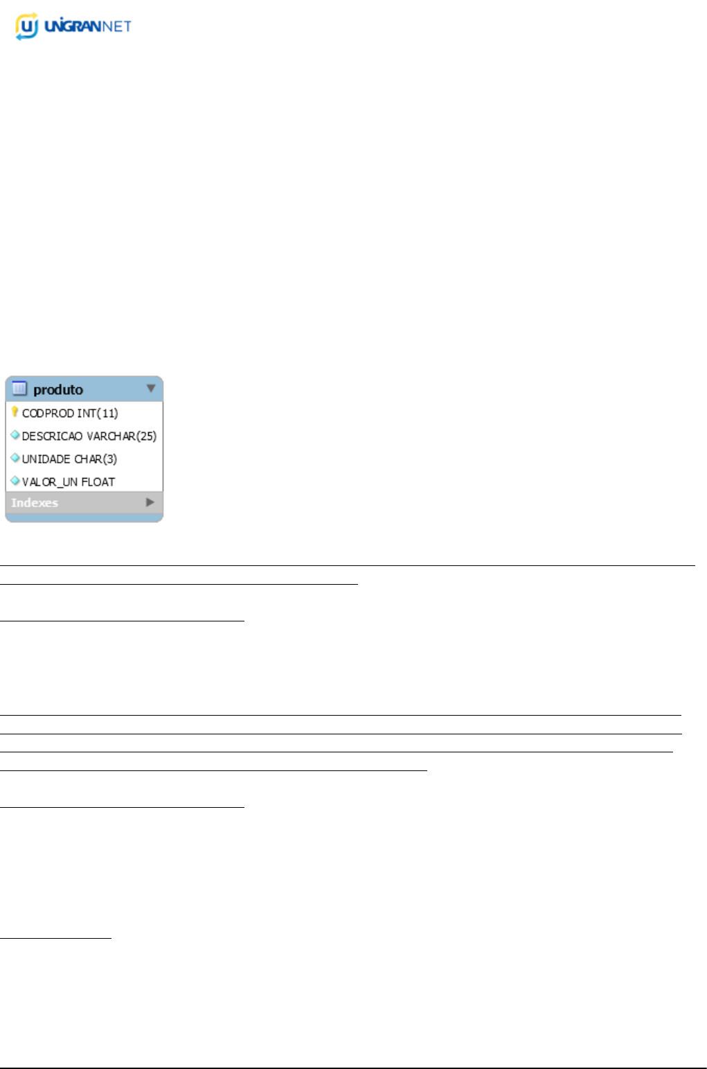 GABARITO Protocolo: 879342 Página 1 - 04/06/2024 às 16:05 Prova Data de aplicação: 22/05/2024 Curso: Engenharia de Software Disciplina: Banco de Dados II Ano: 20241 / Semestre: 4 RGM: 123.1478 / Aluno: GILVAN GABRIEL CORREIA DE ALENCAR PROVA 01 Questão 1 O gerente quer selecionar todos os produtos e diminuir os valores unitários em 20% quando o valor do produto é menor do que R$100 e elimina as casas decimais do resultado dessa redução dos valores. O comando SQL deve ser criado utilizando a estrutura da tabela produto apresentada na imagem. Resposta do aluno: select codprod, descricao, unidade case when valor_un < 100 then cast(floor(valor_un*0.8) as int) else valor_un end as novo_valor_un from produtos Parecer do professor: Questão Correta. Questão 2 Defina Cálculo Relacional e dê pelo menos uma diferença com a Álgebra Relacional. Resposta do aluno: calculo relacional se concentra em descrever as caracteristicas das tuplas que queremos encontrar, uma diferença é as consultas sao expressas, em calculo relacional as consultas são expressas em termos de como os resultados devem ser encontrados, já em algebra relacional as consultas são expressas como uma sequencia de operações algebricas aplicadas as relações Parecer do professor: Questão Correta. Questão 3 Além dos operadores básicos de seleção, na Álgebra Relacional são definidos operadores que servem para manipular conjuntos. Assinale a alternativa que contenha o operador que quando aplicado a duas relações retorne as tuplas das duas relações. a) Intersecção (∩) b) União (∪) (correta) c) Diferença (-) d) Junção (X) Questão 4 "O tipo de restrição que mantêm a consistência do banco de dados através do relacionamento. Como outros GABARITO Protocolo: 879342 Página 2 - 04/06/2024 às 16:05 tipos de restrição, ele previne alterações de inserção ou atualizações de dados que levem a inconsistência.” Assinale a alternativa que indique corretamente qual o recurso se refere a esta afirmação. a) Chaves Primárias b) Índices c) Chaves Estrangeiras (correta) d) Chaves compostas Questão 5 No cálculo relacional os átomos são conectados formando as fórmulas, por meio dos operadores lógicos. Assinale a alternativa que descreva corretamente o funcionamento dos átomos e suas fórmulas. a) Todo átomo é uma fórmula por si só. (correta) b) Uma fórmula F1 AND F2 será verdadeira quando ambos são falsas. c) Uma fórmula F1 OR F2 será falsa se ambas as fórmulas forem verdadeiras. d) Uma fórmula NOT(F1) será falsa quando F1 for falso. Questão 6 Quando uma chave estrangeira é alterada (ON UPDATE) ou deletada (ON DELETE) algumas ações podem ser tomadas. Assinale a alternativa que indique qual o nome da ação quando não é permitida a operação. a) SET DEFAULT b) SET NULL c) CASCADE d) RESTRICT (correta) Questão 7 Quando uma chave estrangeira é alterada (ON UPDATE) ou deletada (ON DELETE) algumas ações podem ser tomadas. Assinale a alternativa que indique qual o nome da ação quando é colocado o valor nulo para as linhas referenciadas. a) SET DEFAULT b) SET NULL (correta) c) CASCADE d) RESTRICT Questão 8 _________ estão presentes no banco de dados para garantir a integridade ou otimizar as consultas. Vão aparecer no banco de dados todas as vez que criarmos _________, ou _________. Assinale a alternativa que complete corretamente as lacunas. a) Chaves primárias, Chaves estrangeiras, Chaves compostas b) Chaves estrangeiras, Chaves primárias, Chaves compostas c) Índices, Chaves Primárias, Chaves estrangeiras (correta) d) Chaves primárias, Índices, Chaves estrangeiras Questão 9 O Cálculo Relacional uma forma de consulta formal ao banco de dados. Ela possui muitas _________ com a Álgebra Relacional. ELMASRI e NAVATHE (2011) afirma que a álgebra relacional é uma __________________, e o cálculo relacional é uma __________________. Assinale a alternativa que preencha corretamente as lacunas. a) semelhanças, linguagem não procedimental, linguagem procedimental b) semelhanças, linguagem procedimental, linguagem não procedimental (correta) GABARITO Protocolo: 879342 Página 3 - 04/06/2024 às 16:05 c) diferenças, linguagem procedimental, linguagem procedimental d) diferenças, linguagem não procedimental, linguagem procedimental Questão 10 Na Álgebra relacional existem operadores que são utilizados para gerar relações, que podem ser manipulados pelo mesmo conjunto de operadores, gerando novas relações. Assinale a alternativa que contenha o nome do operador que serve para escolher quais colunas serão mostradas no resultado, tal como a instrução SELECT do SQL, indicando quais colunas queremos recuperar, sem nenhuma condição. a) Projeção (π) (correta) b) Seleção (σ) c) Ordenação (τ) d) Renomeação (ρ) PROVA 02 Questão 1 Em uma chamada a Stored Procedure podemos passar um parâmetro precedido de @. Para que usamos esse parâmetro? Resposta do aluno: é usado para identificar e referenciar parametros em stored procedures ajudando a distinguir entre variaveis locais e parametros na linguagem sql Parecer do professor: Questão Correta. Questão 2 Escreva o comando SQL com Join que faça a junção representada na imagem. Resposta do aluno: SELECT * FROM tableA A right join tableB B on A.key = B.key Parecer do professor: Questão Correta. GABARITO Protocolo: 879342 Página 4 - 04/06/2024 às 16:05 Questão 3 Carvalho (2017) define alguns benefícios que podemos obter ao utilizar triggers. Assinale a alternativa que não contém uma vantagem ao utilizar triggers. a) Verificar a integridade dos dados, pois só é possível fazer a uma verificação após a inserção no registro. (correta) b) Contornar erros na regra de negócio do sistema no banco de dados. c) Utilizar como substituta para event_scheduler. Entretanto, ela não o substitui em processos que não são disparados a partir de uma tabela. d) Auditar as mudanças nas tabelas. Questão 