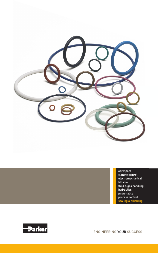 Parker O-Ring Material Offering Guide ORD 5712 Failure, improper selection or improper use of the products and/or systems described herein or related items can cause death, personal injury or property damage. This document and other information from Parker Hannifin Corporation, its subsidiaries and authorized distributors provides product and/or system options for further investigation by users having technical expertise. It is important concerning the product or system in the current product catalog. Due to the variety of operating conditions and applications for these products or systems, the user, through his or her own analysis and testing, is solely responsible for making the final selection of the products and systems and assuring that all performance, safety and warning requirements of the application are met. The products described herein, including without limitation, product features, specifications, designs, availability and pricing, are subject to change by Parker Hannifin Corporation and its subsidiaries at any time without notice. Offer of Sale The items described in this document are hereby offered for sale by Parker Hannifin Corporation, its subsidiaries and its authorized distributors. This offer and its acceptance are governed by the provisions stated on the separate page of this document entitled "Offer of Sale" Copyright © 2014, Parker Hannifin Corporation, Cleveland, OH. All rights reserved. ORD 5712 O-Ring Material Offering Guide 1 Parker Hannifin Corporation • O-Ring Division 2360 Palumbo Drive, Lexington, KY 40509 Phone: (859) 269-2351 • Fax: (859) 335-5128 www.parkerorings.com Table of Contents Introduction 2 Material Offering 5 Engineering Tools 29 Gland Designs 31 Sizing Charts 41 O-Ring Material Offering Guide ORD 5712 O-Ring Material Offering Guide ORD 5712 O-Ring Material Offering Guide 2 3 Parker Hannifin Corporation • O-Ring Division 2360 Palumbo Drive, Lexington, KY 40509 Phone: (859) 269-2351 • Fax: (859) 335-5128 www.parkerorings.com Parker Hannifin Corporation • O-Ring Division 2360 Palumbo Drive, Lexington, KY 40509 Phone: (859) 269-2351 • Fax: (859) 335-5128 www.parkerorings.com Operations Engineers in every industry - from automotive to fluid power to semiconductor processing - choose O-rings made by Parker Hannifin to keep their equipment running safely and reliably. That’s because Parker’s O-Ring Division, a developer, manufacturer and supplier of precision-engineered O-rings for over 50 years, offers a unique combination of experience, innovation and support. Quality Assurance In the O-Ring Division’s world-class facilities, skilled Parker technicians manufacture O-rings to exacting standards, closely monitoring each step of the process through a Controlled Batch Identification (CBI) program. From in-house mixing and tooling operations to the final non-contact inspection process, state-of-the art technology is employed to provide unparalleled material consistency and dimensional control. Quality registrations (AS 9100, ISO 9001, TS 16949 and VDA 6.1) are maintained to ensure superior product performance and process repeatability. Research and Development In its on-site research labs, Parker develops new O-ring material formulations and compounds to meet customers’ needs. These materials are subjected to a broad range of mechanical, physical and environmental conditions, and their performance is evaluated through a comprehensive testing process. Finite Element Analysis Through the use of powerful computers and Finite Element Analysis (FEA) software specifically designed for elastomeric evaluation, Parker engineers can predict a seal’s performance in a variety of media, temperatures and pressures before a single part is made. This eliminates the need for costly tooling, speeds the production process and ensures the selection of the right material and geometry for a customer’s application. Literature Since its initial release decades ago, the Parker O-Ring Handbook (ORD 5700) has been a fixture on the reference shelves of engineers and seal specifiers worldwide. This book contains extensive information about the properties of basic sealing elastomers, as well as examples of typical O-ring applications, fundamentals of static and dynamic seal design and O-ring failure modes. It also provides an overview of international sizes and standards, and contains compatibility data for fluids, gases and solids. Abridged versions of the handbook, available as ORD 5712 (US) and 5705 (Europe), provides engineers with fast access to information on standard sizes and materials. Seal Design Software Parker’s Mobile inPHormTM is a web-based mobile app, which consists of modules for material recommendations, fluid compatibility, and gland/seal calculations. It uses a simple interface to guide users through a complete design analysis. It automatically cross-references thousands of part numbers, recommending materials based on the requirements of SAE, MIL, NORSOK and other industry standards. Mobile inPHorm also provides a fluid compatibility guide, supporting up to 5 blends at a time. Online Tools The Parker O-Ring Division's website at www. parkerorings.com offers many time-saving tools, including temperature and dimension converters, gland design recommendation charts, and a pressure calculator. The site also hosts our interactive web based apps and installation videos. IN TR O D U C TIO Naerospace climate control electromechanical filtration fluid & gas handling hydraulics pneumatics process control sealing & shielding Parker O-Ring Handbook ORD 5700 ORD 5712 O-Ring Material Offering Guide ORD 5712 O-Ring Material Offering Guide 4 5 Parker Hannifin Corporation • O-Ring Division 2360 Palumbo Drive, Lexington, KY 40509 Phone: (859) 269-2351 • Fax: (859) 335-5128 www.parkerorings.com Parker Hannifin Corporation • O-Ring Division 2360 Palumbo Drive, Lexington, KY 40509 Phone: (859) 269-2351 • Fax: (859) 335-5128 www.parkerorings.com O-