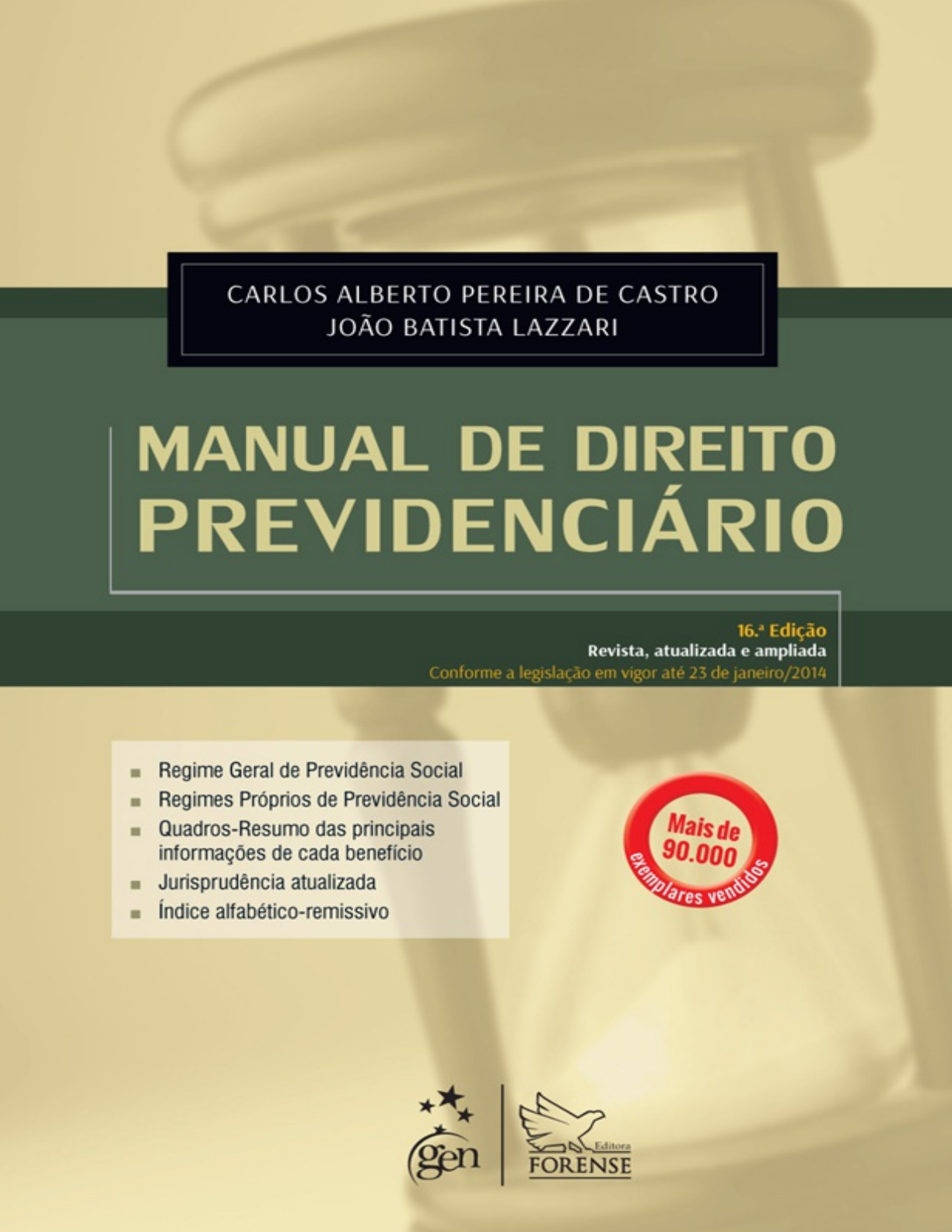 ■ A EDITORA FORENSE se responsabiliza pelos vícios do produto no que concerne à sua edição (impressão e apresentação a fim de possibilitar ao consumidor bem manuseá-lo e lê-lo). Nem a editora nem o autor assumem qualquer responsabilidade por eventuais danos ou perdas a pessoa ou bens, decorrentes do uso da presente obra. Todos os direitos reservados. Nos termos da Lei que resguarda os direitos autorais, é proibida a reprodução total ou parcial de qualquer forma ou por qualquer meio, eletrônico ou mecânico, inclusive através de processos xerográficos, fotocópia e gravação, sem permissão por escrito do autor e do editor. Impresso no Brasil – Printed in Brazil ■ Direitos exclusivos para o Brasil na língua portuguesa Copyright © 2014 by EDITORA FORENSE LTDA. Uma editora integrante do GEN | Grupo Editorial Nacional Travessa do Ouvidor, 11 – Térreo e 6º andar – 20040-040 – Rio de Janeiro – RJ Tel.: (21) 3543-0770 – Fax: (21) 3543-0896 forense@grupogen.com.br | www.grupogen.com.br ■ O titular cuja obra seja fraudulentamente reproduzida, divulgada ou de qualquer forma utilizada poderá requerer a apreensão dos exemplares reproduzidos ou a suspensão da divulgação, sem prejuízo da indenização cabível (art. 102 da Lei n. 9.610, de 19.02.1998). Quem vender, expuser à venda, ocultar, adquirir, distribuir, tiver em depósito ou utilizar obra ou fonograma reproduzidos com fraude, com a finalidade de vender, obter ganho, vantagem, proveito, lucro direto ou indireto, para si ou para outrem, será solidariamente responsável com o contrafator, nos termos dos artigos precedentes, respondendo como contrafatores o importador e o distribuidor em caso de reprodução no exterior (art. 104 da Lei n. 9.610/98). ■ Capa: Danilo Oliveira Produção Digital: Geethik ■ CIP – Brasil. Catalogação na fonte. Sindicato Nacional dos Editores de Livros, RJ. C35m Castro, Carlos Alberto Pereira de Manual de direito previdenciário / Carlos Alberto Pereira de Castro, João Batista Lazzari. – 16.ed. – Rio de Janeiro : Forense, 2014. ISBN: 978-85-309-5475-8 1. Previdência social – Legislação – Brasil. I. Lazzari, João Batista. II. Título. 12-7696. CDU: 349.3(81) mailto:forense@grupogen.com.br http://www.grupogen.com.br AGRADECIMENTOS Aos meus queridos pais, Fermino e Dozolina, agradeço os ensinamentos recebidos e os exemplos de vida, marcados pelo amor e dedicação aos filhos. À minha amada esposa Patrícia, pelo incentivo e pela compreensão nos muitos momentos de ausência em virtude da dedicação ao trabalho e aos estudos. Às minhas lindas filhas Nicole e Natália, motivo de imenso amor, alegria e felicidade. João Batista Lazzari Aos meus familiares, a quem agradeço na pessoa do meu eterno professor, Ernesto Castro, Mestre da disciplina Viver, que, tendo cumprido sua missão de ensinador neste mundo, não permaneceu entre nós a ponto de ver esta obra concluída. Ao meu filho Victor Hugo, em cuja geração deposito minhas esperanças de um mundo melhor. À Carolina, fonte de minha inspiração, razão de ser do meu futuro, pelo carinho e pelo companheirismo nos momentos de estudo e reflexão. Carlos Alberto Pereira de Castro Um agradecimento especial ao Professor Júlio Queiroz, que, com sua incomum sabedoria, foi muito mais do que um revisor, tornando nossos contatos verdadeiras lições de como utilizar, com correção e estilo, o vernáculo. Aos nossos amigos e a todos os nossos alunos, que por vezes, mais até do que nós mesmos, acreditaram na realização desta obra. Aos professores do Brasil, heróis solitários e abnegados de uma Pátria que luta para sair do subdesenvolvimento cultural. Os Autores NOTA DOS AUTORES À 16a EDIÇÃO Caros leitores, após mais um ano de constantes pesquisas, apresentamos a nova edição do Manual de Direito Previdenciário. Assim como nas anteriores edições, buscamos obter o máximo de informações relevantes para a comunidade jurídica e para os que pretendem iniciar ou ampliar seus estudos no campo do Direito Previdenciário, mantendo a estrutura da obra e, ao mesmo tempo, acolhendo as sugestões que nos são gentilmente encaminhadas. Desta vez, merecem menção em sede legislativa as alterações ocorridas desde o Texto Constitucional, com a promulgação da EC n. 72, ampliando os direitos sociais dos trabalhadores com vínculo de emprego doméstico (ainda que não regulamentada até o fechamento desta edição), a regulamentação da aposentadoria à pessoa portadora de deficiência pela Lei Complementar n. 142/2013 (importante conquista social) e as modificações nos critérios de concessão do salário- maternidade pela Lei n. 12.873/2013, com regras bastante interessantes quanto à sua extensão ao cônjuge sobrevivente, em caso de óbito da beneficiária inicial, bem como no que tange ao reconhecimento do direito em caso de adoção por pessoa do sexo masculino. A necessária revisão da jurisprudência pátria também foi realizada, com a reformulação parcial do Anexo referente às súmulas e orientações jurisprudenciais consolidadas pelos órgãos judiciais, assim como, no corpo do texto, pela atualização dos entendimentos dos tribunais e turmas de uniformização dos juizados especiais federais a respeito de temas relevantes, como é exemplo a questão da aplicação da decadência nas ações revisionais, apreciada pelo STF, decisão que passa a interferir sobremaneira nas postulações judiciais referentes a benefícios concedidos há mais tempo que o prazo decadencial. Na parte relativa aos Regimes Próprios de Previdência dos agentes públicos ocupantes de cargos efetivos, chamamos a atenção para a efetiva implantação, no âmbito federal, dos regulamentos de benefícios do Funpresp-Exe e do Funpresp-Jud, de modo que, a partir de então, os novos Magistrados, membros do Ministério Público e Tribunal de Contas da União e servidores dos respectivos órgãos e entidades federais pa