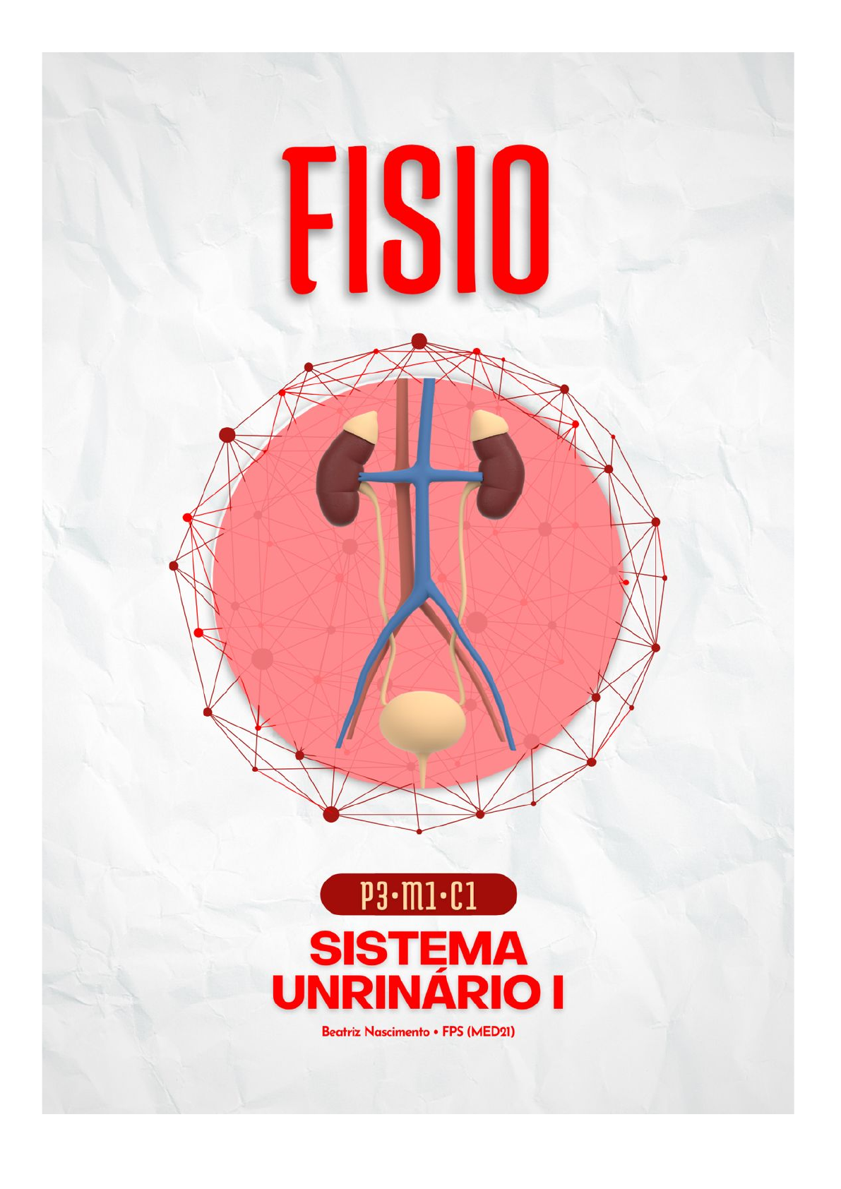 1. Fisiologia III - Sistema Urinário I 2 Sistema Urinário I 1. Introdução – O sistema urinário consiste em: ● 2 rins; ● 2 ureteres; ● 1 bexiga urinária; ● 1 uretra. – Após os rins filtrarem o plasma sanguíneo, eles devolvem a maior parte da água e dos solutos à corrente sanguínea. A água e solutos restantes constituem a urina. – A urina então passa pelos ureteres e é armazenada na bexiga urinária até ser eliminada do corpo pela uretra. – Assim, podemos dizer que as principais funções do sistema urinário são: a) Rins: i) Regulam o volume e a composição sanguínea; ii) Ajudam a regular a pressão arterial; iii) Ajudam a regular o pH e os níveis de glicose; iv) Produzem dois hormônios (calcitriol e eritropoetina); v) Excretam escórias metabólicas na urina. b) Ureteres: i) Transportam a urina dos rins para a bexiga urinária. c) Bexiga urinária: i) Armazena a urina e depois a expele pela uretra. d) Uretra: i) Elimina a urina do corpo. 2. Rins A) Funções dos Rins – Os rins desempenham a principal função do sistema urinário. As outras partes do sistema são basicamente vias de passagem e áreas de armazenamento. Assim, as funções dos rins incluem: a) Regulação da composição iônica do sangue: os rins ajudam a regular os níveis sanguíneos de vários íons. Os mais importantes são: i) Sódio → Na + ii) Potássio → K + iii) Cálcio → Ca +2 iv) Cloreto → Cl - v) Fosfato → HPO4 -2 b) Regulação do pH do sangue: os rins excretam uma quantidade variável de íon hidrogênio (H + ) para a urina e preservam os íons bicarbonato (HCO3 - ), que são um importante tampão do H + no sangue. Ambas as atividades ajudam a regular o pH sanguíneo. c) Regulação do volume de sangue: os rins ajustam o volume do sangue através da conservação ou eliminação de água na urina. i) O aumento do volume de sangue eleva a pressão arterial. ii) A diminuição do volume de sangue diminui a pressão arterial. d) Regulação da pressão arterial: os rins também auxiliam na regulação da pressão arterial através da secreção da enzima renina, que ativa o sistema renina-angiotensina-aldosterona. O aumento da renina resulta no aumento da pressão arterial. e) Manutenção da osmolaridade do sangue: ao regular separadamente a perda de água e a perda de solutos na urina, os rins mantêm uma osmolaridade do sangue relativamente constante, de aproximadamente 300 mOsm/L (miliosmóis por litro). f) Produção de hormônios: os rins produzem dois hormônios. i) Calcitriol: é a forma ativa da vitamina D. Ajuda a regular a homeostasia do cálcio. ii) Eritropoetina: estimula a produção de eritrócitos. g) Regulação do nível sanguíneo de glicose: da mesma forma que o fígado, os rins podem utilizar o aminoácido glutamina na gliconeogênese, a síntese de novas moléculas de glicose. Eles podem, assim, liberar glicose no sangue para ajudar a manter um nível normal de glicemia. 1. Fisiologia III - Sistema Urinário I 3 h) Excreção de escórias metabólicas e substâncias estranhas: por meio da formação de urina, os rins ajudam a excretar escórias metabólicas: substâncias que não têm função útil no corpo. i) Algumas escórias resultam de reações metabólicas no organismo. São exemplos: 1) Amônia e ureia → desaminação dos aminoácidos; 2) Bilirrubina → catabolismo da hemoglobina; 3) Creatinina → clivagem do fosfato de creatina nas fibras musculares; 4) Ácido úrico → catabolismo dos ácidos nucleicos. ii) Outras escórias são substâncias estranhas da dieta, como por exemplo fármacos e toxinas ambientais. B) Anatomia e Histologia dos Rins – Localizam-se logo acima da cintura, situados entre o peritônio e a parede posterior do abdome. Devido à sua posição posterior ao peritônio da cavidade abdominal, são considerados retroperitoneais. – Estão localizados entre os níveis das últimas vértebras torácicas e a terceira vértebra lombar (LIII), uma posição na qual estão parcialmente protegidos pelas costelas XI e XII. – O rim direito está ligeiramente mais baixo do que o esquerdo, pois o fígado ocupa um espaço considerável no lado direito superior ao rim. B.1) Anatomia Externa dos Rins – A margem medial côncava de cada rim está voltada para a coluna vertebral. Perto do centro da margem côncava está o hilo renal, através do qual o ureter emerge do rim, juntamente com os vasos sanguíneos, vasos linfáticos e nervos. – Três camadas de tecido circundam cada rim. a) Cápsula fibrosa: é a mais profunda. É uma lâmina lisa e transparente de tecido conjuntivo denso não modelado, que é contínuo com o revestimento externo do ureter. i) Serve como uma barreira contra traumatismos; ii) Também ajuda a manter a forma do rim. b) Cápsula adiposa: é a intermediária. É uma massa de tecido adiposo que reveste a cápsula fibrosa. i) Também serve para proteger o rim de traumas; ii) Além disso, ela prende o rim firmemente na sua posição na cavidade abdominal. 1. Fisiologia III - Sistema Urinário I 4 c) Fáscia renal: é a mais superficial. É outra camada fina de tecido conjuntivo denso não modelado. i) Ela ancora o rim às estruturas vizinhas e à parede abdominal. ii) Na face anterior dos rins, ela se localiza profundamente ao peritônio. B.2) Anatomia Interna dos Rins – É formada por duas regiões distintas. a) Medula renal: é a região mais interna. Tem uma coloração castanha-avermelhada mais escura. Consiste em várias pirâmides renais com formato de cone. i) A base de cada pirâmide está voltada para o córtex renal. ii) O ápice de cada pirâmide, chamado de papila renal, está voltado para o hilo renal. b) Córtex renal: é a região mais superficial. Tem uma cor vermelha clara. É a área de textura fina que vai da cápsula fibrosa até às bases das pirâmides renais, e nos espaços entre elas. Se divide em: i) Zona cortical externa ii) Zona justamedular interna iii) Colunas renais 