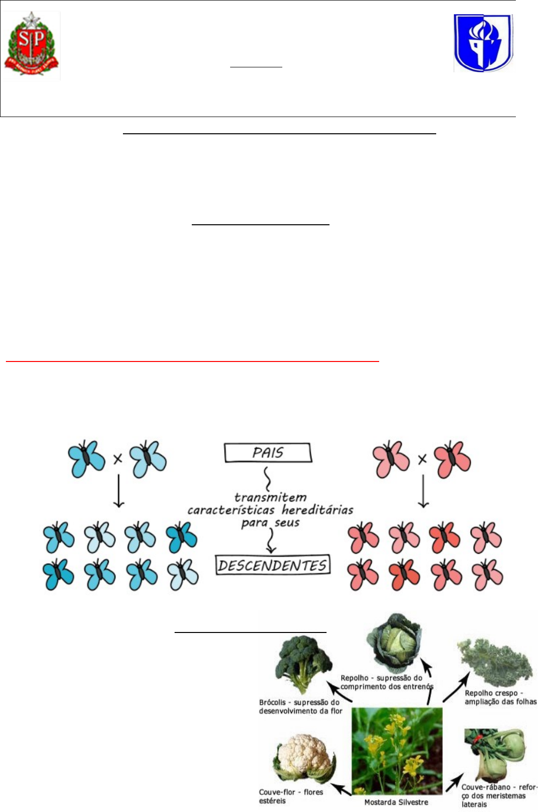 ESCOLA ESTADUAL “NEWTON PRADO” SECRETÁRIA DE EDUCAÇÃO DO ESTADO DIRETORIA DE ENSINO – REGIÃO DE PIRASSUNUNGA RUA JOSÉ MANOEL DE A. OLIVEIRA , 95 VILA BELA VISTA LEME – SP CEP: 13611-420 TELEFONE (19) 35541539 ROTEIRO DE ESTUDO: BIOCTENOLOGIA PROFESSOR (A) MARCOS PROFESSORA: ANDREA (PA) SELEÇÃO ARTIFICIAL X SELEÇÃO NATURAL OBJETIVOS: EXPLICAR COMO AS CARACTERÍSTICAS DOS SERES VIVOS SÃO TRANSMITIDAS DE UMA GERAÇÃO PARA OUTRA. SELEÇÃO NATURAL EM RAZÃO DOS RECURSOS LIMITADOS, ORGANISMOS COM CARACTERÍSTICAS HEREDITÁRIAS QUE FAVOREÇAM A SOBREVIVÊNCIA E A REPRODUÇÃO TENDEM A DEIXAR MAIS DESCENDENTES DO QUE OS DEMAIS, O QUE FAZ COM QUE ESSAS CARACTERÍSTICAS AUMENTEM EM FREQUÊNCIA AO LONGO DAS GERAÇÕES. CARACTERÍSTICAS SÃO GERALMENTE HERDÁVEIS. EM SERES VIVOS, MUITAS CARACTERÍSTICAS SÃO HERDADAS, OU PASSADAS DE PAIS PARA FILHOS. EXEMPLOS: SELEÇÃO ARTIFICIAL JÁ NA SELEÇÃO ARTIFICIAL, EXISTE INTERFERÊNCIA TOTALMENTE DIRETA DO HOMEM. CONSISTE NO CRUZAMENTO REALIZADO PELO HOMEM, PROCESSO PARA TESTAR E ESTUDAR A EVOLUÇÃO EXPERIMENTAL. EXEMPLOS: 1. ATIVIDADES: ANALISE NAS IMAGENS ABAIXO SE O TERMO GENÉTICA APARECE EM ALGUMAS DELAS. EI, VOÇÊS SÃO VERMELHAS? QUE LEGAL!! UAU!!! ADOREI ESSA COR DE ASA AZUL!! SIM NÃO AS CARACTERÍSTICAS DOS SERES VIVOS OS SERES VIVOS OU FATORES BIÓTICOS E A MATÉRIA BRUTA OU FATORES ABIÓTICOS POSSUEM CARACTERÍSTICAS DIFERENTES. COMPARADOS Á MATÉRIA BRUTA, OS SERES VIVOS APRESENTAM: · COMPOSIÇÃO QUIMÍCA MAIS COMPLETA; · ORGANIZAÇÃO CELULAR, OU SEJA SÃO FORMADO POR CÉLULAS; · CAPACIDADE DE NUTRIÇÃO, ABSORVENDO MATÉRIA E ENERGIA DO AMBIENTE; · REAÇÕES A ESTÍMULOS DO AMBEINTE; · CAPACIDADE DE MANTER SEU MEIO INTERNO EM CONDIÇÕES ADEQUADAS, INDEPENDENTES DOS FATORES EXTERNOS, COMO CALOR E FRIO; · CRESCIMENTO E REPRODUÇÃO, ORIGINANDO DESCENDENTES SEMELHANTES; · CICLO DE VIDA NASCEM – CRESCEM – REPRODUZEM – MORREM; · CAPACIDADE DE MODIFICAR SE AO LONGO DO TEMPO, ATRAVÉS DO PROCESSO DE EVOLUÇÃO, DESENVOLVENDO ADAPTAÇÕES ADEQUADAS Á SOBREVIVÊNCIA. ESSE CONJUNTO DE CARACTERÍSTICAS DEPENDE DA MOLÉCULA DE DNA. É ELA QUE DETERMINA OS PONTOS COMUNS E AS DIFERENÇAS ENTRE OS SERES VIVOS QUE HABITAM NOSSO PLANETA. 2. ENCONTRE AS PALAVRAS DESTACADAS NO TEXTO NO CAÇA PALAVRAS. image3.jpeg image4.png image5.png image6.png image7.png image1.png image2.png image8.png image9.jpeg