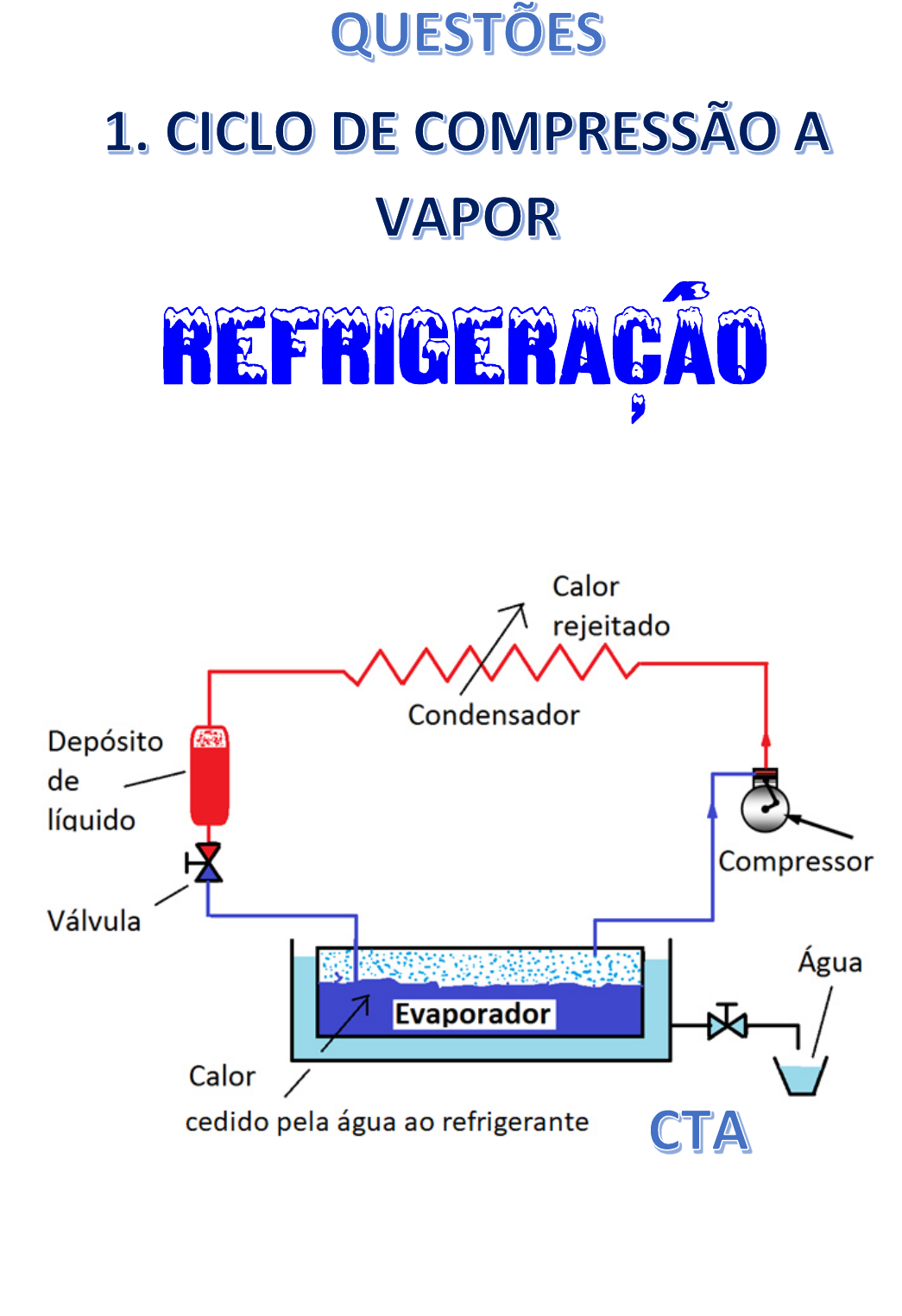 O CICLO DE COMPRESSÃO A VAPOR 2 CONTROLE TÉRMICO DE AMBIENTES 2 QUESTÕES PROPOSTAS 1.1) Um ciclo de refrigeração de Carnot retira calor de um reservatório térmico a -12°C e o rejeita para um reservatório a 40°C. a) Calcule o COP desse ciclo de refrigeração. b) Qual é a potência necessária se o ciclo retira 15 kW à temperatura de -12°C? c) Qual é o COP da bomba de calor operando entre as mesmas temperaturas do ciclo de refrigeração acima? d) Qual é o fluxo de calor rejeitado à temperatura de 40°C se a bomba de calor retira 15 kW à temperatura de -12°C? [Resp.: 18 kW]. 1.2) Faça um diagrama esquemático de um ciclo padrão de compressão a vapor operando com refrigerante R-410A, para uma temperatura de evaporação (TE) de -5°C e uma condensação de 30°C, e calcule a) O trabalho de compressão, b) O efeito de refrigeração, c) O calor rejeitado no condensador e d) O COP. 1.3) Um sistema frigorífico, operando com refrigerante R-22, deve apresentar uma capacidade de refrigeração de 80 kW. O ciclo é o padrão de compressão a vapor, com temperatura de evaporação (TE) de -8°C e de condensação de (TC) 42°C. a) Determine a vazão em volume de refrigerante em metros cúbicos por segundo referida à aspiração do compressor. b) Calcule a potência do compressor necessária. c) Qual é a fração de vapor na mistura na entrada do evaporador, expressa na razão em massa e em volume? [Resp.: 0,292; 0,971]. 1.4) Compare os coeficientes de eficácia de ciclos de refrigeração com compressão úmida e seca; admita que o fluido de trabalho seja R-717, que a TE seja de -20°C e a TC 30°C, que as compressões sejam isentrópicas e que o líquido deixe o condensador saturado. No ciclo de compressão úmida o refrigerante deixa o compressor no estado de vapor saturado. [Resp.: 4,42 contra 4,02]. 1.5) Um dispositivo de estrangulamento é universalmente usado no ciclo de compressão a vapor para reduzir a pressão do refrigerante líquido. a) Determine a porcentagem de economia de trabalho líquido do ciclo por kg de refrigerante se um motor de expansão fosse usado para expandir isentrópicamente R-22 do estado O CICLO DE COMPRESSÃO A VAPOR 3 CONTROLE TÉRMICO DE AMBIENTES 3 líquido saturado a 35°C até a TE de 0°C. Admita que a compressão seja isentrópica entre os estados de vapor saturado a 0°C até a pressão de condensação correspondente à temperatura de 35°C. [Resp.:12,9%]. b) Calcule o aumento no efeito de refrigeração em kJ/kg como resultado da utilização desse motor de expansão. 1.6) A eficiência de um sistema frigorífico aumenta com a diminuição da temperatura de condensação. Investigar a possibilidade de resfriar a água de condensação de um sistema frigorífico com outro sistema. A eficiência do sistema combinado será melhor, pior ou igual a do sistema simples? Por que? 1.7) Um sistema de compressão a vapor, usando R-134a, utiliza um trocador de calor entre o gás de aspiração e o líquido, o qual aquece o vapor saturado do evaporador de -10 a 5°C com líquido do condensador a 30°C. A compressão é isentrópica para os casos a seguir. a) Calcule o COP do sistema sem o trocador de calor, com temperaturas de condensação de 30°C e temperatura de evaporação de -10°C. b) Calcule o COP do sistema com trocador de calor. c) Qual a capacidade de refrigeração do sistema sem trocador de calor se o compressor bombeia 12,0 L/s, referidos ao estado do vapor na aspiração do compressor? d) Qual é a capacidade de refrigeração (Potência Frigorífica ou Potência por kW de refrigeração) do sistema com trocador de calor para um compressor com a mesma capacidade do caso. O CICLO DE COMPRESSÃO A VAPOR 4 CONTROLE TÉRMICO DE AMBIENTES 4 1.8) Um ciclo padrão de compressão a vapor em regime permanente usa R-134a como refrigerante. O vapor saturado entra no compressor a 1,5 bar e o líquido saturado deixa o condensador a 10 bar. A vazão em massa é 5 kg/min. Determine a) A potência do compressor, em hp. b) A capacidade de refrigeração, em TR. c) O COP. 1.9) Modifique o ciclo do problema anterior para que o compressor possua uma eficiência de compressão (eficiência isentrópica, rendimento adiabático) de 80%, e considere que a temperatura do líquido na saída do condensador é de 31°C. Para esse ciclo modificado, determine. a) A potência de acionamento do compressor, em kW. b) A capacidade de refrigeração, em TR. c) O COP. 1.10) Um ciclo de compressão a vapor, utilizando R-134a, o compressor tem uma Eficiência de Compressão de 80% e desenvolve 10 kW de refrigeração. O vapor saturado entra no compressor a 1,5 bar pressão absoluta e o líquido saturado deixa o condensador a 10 bar pressão absoluta. A temperatura do líquido na saída do condensador é de 31,33°C. Pede-se: a) Diagrama Ph, utilizar diagrama em anexo, b) o efeito de refrigeração, em kJ/kg, c) a vazão de refrigerante, em kg/s, d) a potência do compressor, em kW, e) o Coeficiente de Performance (COP), f) a vazão em volume medida na sucção do compressor, g) a potência por kW de refrigeração e h) a temperatura de descarga do compressor. 1.11) Um ciclo padrão de refrigeração de compressão a vapor, utilizando R-22, desenvolve 50 kW de refrigeração, operando a uma Tc = 35°C e uma Te = -10°C. Determine a) o efeito de refrigeração, kJ/kg b) a vazão de refrigerante, kg/s c) potência do compressor, em kW d) COP e) vazão em volume medida na sucção do compressor f) a potência por kW de refrigeração g) a temperatura de descarga na compressor. 1.12) Um ciclo padrão de compressão a vapor, utilizando R-410A, desenvolve 50 kW de refrigeração, operando a uma temperatura de condensação (Tc) de 40°C e uma temperatura de evaporação (Te) de -10°C. O CICLO DE COMPRESSÃO A VAPOR 5 CONTROLE TÉRMICO DE AMBIENTES 5 Determine: a) o efeito de refrigeração, em kJ/kg, b) a vazão de refrigerante, em kg/s, c) a potência do compressor, em kW