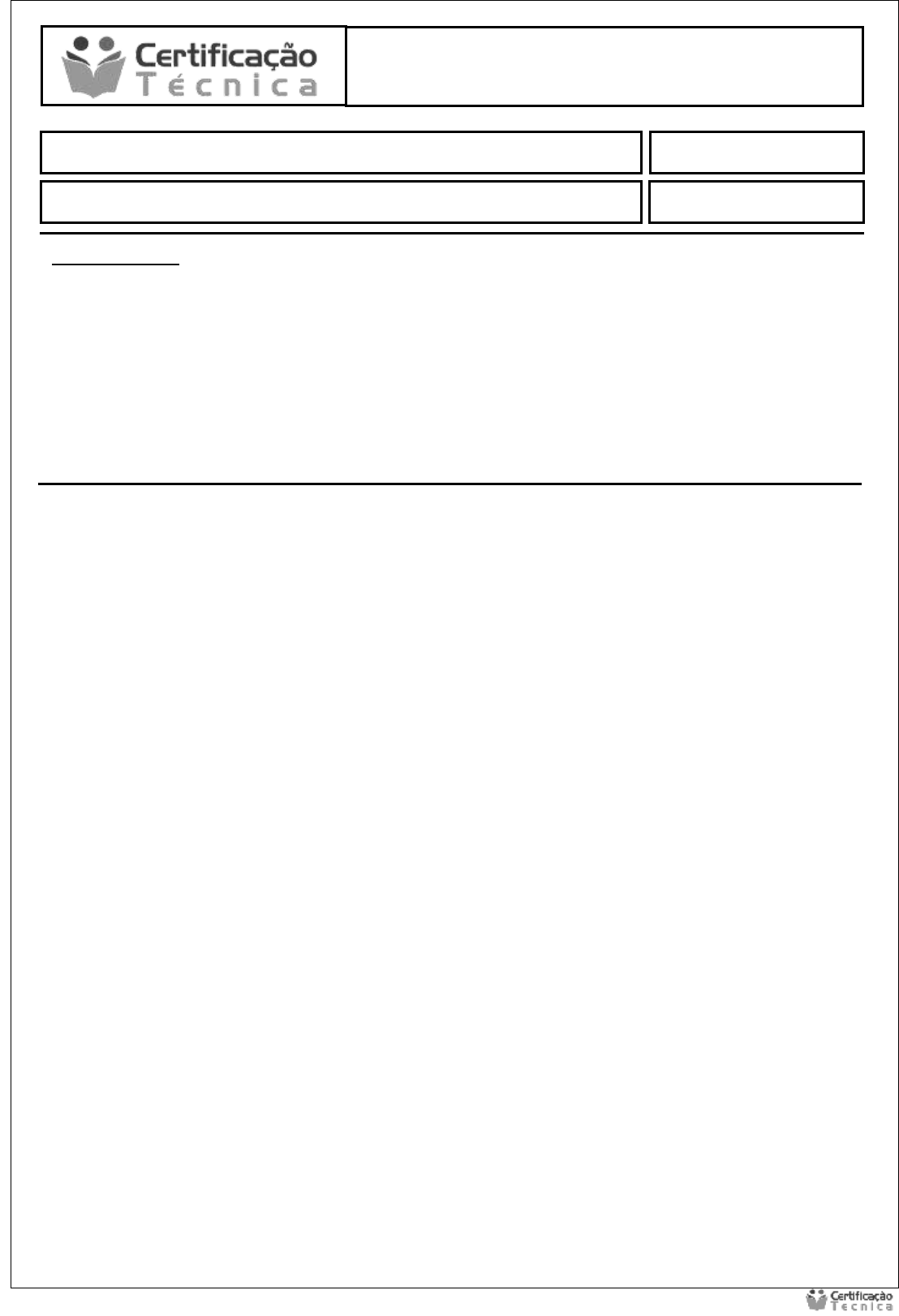 INSTRUÇÕES: Esta Avaliação vale 10 (dez) pontos; Baixe o arquivo disponível com a Atividade Pratica; Você deve preencher dos dados no Cabeçalho para sua identificação: o Nome / Data de entrega. As respostas devem ser digitadas abaixo de cada pergunta; Ao terminar grave o arquivo com o nome Atividade Prática; o Quando solicitado Envio o arquivo pelo sistema no local indicado; Em caso de dúvidas consulte o seu Tutor. Aluno (a): LEONARDO DE SOUZA DIRAN Data: .26/11/2022 Avaliação de Riscos e Impactos Ambientais-Inicial Avaliação Prática 1) Quais tipos de impactos ambientais são notados em Chaminés? Qual é o risco? 2) Um cardume de peixes de água doce, colocados em água salobra para salgadas, configura um impacto ambiental? Qual é o risco? 3) A Achatina fulica(caramujo africano) trazida como escargot, pode ser considerado além de bioinvasão impacto e riscos ambientais? 4) De um exemplo de mudança ambiental que não caracteriza impacto ou risco ambiental? 1) Quais tipos de impactos ambientais são notados em Chaminés? Qual é o risco? O impacto ambiental dos produtos provenientes da chaminé é a contamina- ção do ar com óxidos de enxofre, monóxido de carbono, os óxidos de nitro- gênio e materiais particulados (pó, cinzas, etc). Riscos: • O dióxido de enxofre (SO2) é um gás tóxico não inflamável, incolor e cau- sador de transtornos respiratórios e problemas cardiovasculares, além de estar diretamente ligada à chuva ácida, que afeta o meio ambiente de diver- sas formas: atrapalha a reprodução e crescimento das plantas; afeta o pH da água dos rios, prejudicando, assim, o crescimento populacional dos peixes; além de corroer materiais, afetando monumentos e edificações, nos centros urbanos." • O monóxido de carbono em baixas concentrações, em torno de 50 ppm, o monóxido pode causar dores de cabeça leves, náuseas e sintomas de envenenamentos moderados. Ao elevar essa concentração para 400 ppm, a inalação de monóxido de carbono pode causar fraqueza, tontura, fortes dores de cabeça e vômito. Acima dessa quantidade, a intoxicação pode levar a sintomas mais graves, como convulsões, alteração do ritmo cardía- co, dificuldades na respiração, intoxicação do sistema nervoso central e, em casos mais severos, pode ocasionar a morte. Sendo também um agravante do efeito estufa e provocando o aquecimento global. • Os gases óxidos de nitrogênio (NOx), reagem para formar poluição at- mosférica e chuva ácida, além de serem essenciais para a formação de par- tículas finas e ozônio no nível do solo, ambos associados a efeitos adversos à saúde (ardências nos olhos, nariz e mucosas). São conhecidos poluentes atmosféricos (poluente primário e um dos responsáveis pela acidez das chuvas, redução da camada de ozônio e formação de oxidantes fotoquími- cos. • Os materiais particulados provocam doenças como ataques cardíacos e arritmia cardíaca. Há também relatos de desenvolvimento de asma em crian- ças e outros problemas relacionados ao sistema respiratório, como irritação das vias aéreas, tosse e dificuldade de respiração. 2) Um cardume de peixes de água doce, colocados em água salobra para salgadas, configura um impacto ambiental? Qual é o risco? Sim, pois quando o peixe de água doce é colocado em água salgada, sua concentração de sais em seu organismo será bem menor que a do ambiente e ele perderá líquido até ficar desidratado. Mas existem espécies que supor- tam por mais tem. 3) A Achatina fulica(caramujo africano) trazida como escargot, pode ser considerado além de bioinvasão impacto e riscos ambientais? Sim, o maior prejuízo ambiental causado pela introdução do caramujo afri- cano é a perda de biodiversidade. O caramujo africano age no ambiente co- mo uma espécie exótica invasora que compete com as espécies nativas por espaço e por alimento. Neste processo de competição A. fulica supera as espécies nativas por ter tamanho maior e por se alimentar de quase qual- quer coisa, possuir uma taxa de crescimento e reprodução mais rápida e elevada, além de não possuir predador. O caramujo africano também pode servir como hospedeiro de vários parasitas e depois de mortos as conchas vazias podem acumular água e servir como reservatório para larvas do mos- quito Aedes aegypti. 4) De um exemplo de mudança ambiental que não caracteriza impacto ou risco ambiental? Fenômenos naturais como tempestades, enchentes, terremotos e incên- dios florestais por causa natural.