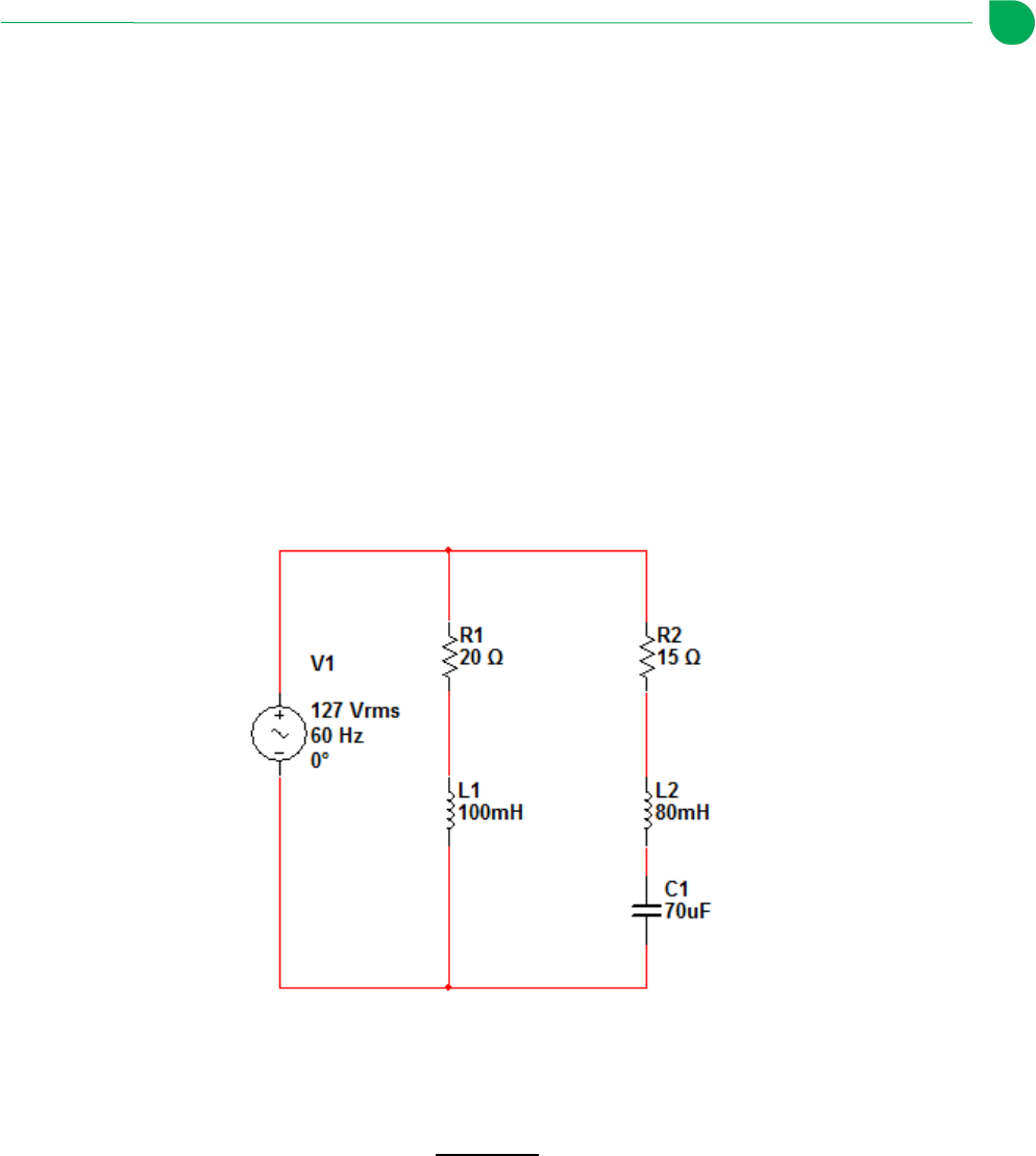 1 1 TÉCNICO EM ELETROTÉCNICA ELETRICIDADE Situação de aprendizagem 2: A corrente alternada na empresa FSA. Atividade 01: Calcular a corrente do circuito de corrente alternada respondendo questionário ATIVIDADE INDIVIDUAL ALUNO: Jader Rodrigues Silva Questionário 1- Calcule a corrente alternada do circuito abaixo Resposta: I=7,987+ j0,886= 8,036<6,33° R2+L2+C1 ---> Z1= 15+XL2+XC1 XL2=2πfL ---> XL2= j30 XC1= = -j38 Então Z1 = 15 – J8 Z2=R1+XL1 XL1 =j37,68 , Z1/Z2 , Zeq= (z1.z2)/(z1+z2) Zeq= 15,70 –j1,742 U=Zeq.I ---> I=U/Zeq ---> I= 7,987 +j0,886 = 8,036 <6,33° Atividade 02: Parecer Parecer Para realização do Parecer, é necessário a realização dos cálculos abaixo: a) Calcule a potência reativa e aparente além do ângulo do fator de potência, sabendo que o motor possui potência ativa de 7,5 CV e fator de potência 0,72. CV para Watts--->1CV=735,5W--->P=7,5X735,5= 5516,25W--> P=5516,25W POTÊNCIA APARENTE FP=P/S ---> S=P/FP ---> S=5516,25/0,72--->S=7661,4VA POTÊNCIA REATIVA S²=Q²+p² --->Q²=S²-p² ---> Q= S²-p² ---> Q= ---> Q= ---> Q= -->Q =5316,76 VAR COS=0,72 --->COS-¹ = 43,94° b) Considerando que o motor da questão anterior teve o fator de potência corrigido de 0,72 para 0,95 através da instalação de capacitores, calcule a potência reativa e aparente para o novo fator de potência. FP é igual ao cosseno do angulo : Fp=Cos= P/S=0,95 ---> P= S x Cos --->S²=P²+Q² ---> S²= (SxCos)+ Q² ---> S²= S² x Cos²+Q² --> Q²= S² - S² x Cos²--> Q²= S² x (1- Cos²) ---> Q²/S²=1-(0,95)² Q²/S²= 0,0975 ---> ---> Q/S= 0,312 Q/S é o seno do ângulo de : Q/S = Sen= 0,312 Elabore um parecer apontando os pontos negativos da empresa possuir equipamentos com baixo fator de potência e os ganhos com a correção do fator de potência. Resposta: Possuir equipamentos com baixo fator de potência mostra que a energia está sendo mal aproveitada pela unidade consumidora e pode acarretar problemas. O baixo fator de potência em instalações elétricas geralmente provoca: taxa adicional na conta de energia elétrica, por estar operando com fator de potência baixo; variações de tensão, que podem provocar queima de e equipamentos elétricos; condutores aquecidos; redução do aproveitamento da capa cidade de transformadores; aumento das perdas elétricas nas linhas de distribuição. Corrigir o fator de potência gera diversas vantagens que são: redução significativa do custo de energia elétrica; aumento da eficiência energética da empresa; da capacidade dos equipamentos de manobra; da vida útil das instalações e equipamentos; redução da corrente reativa na rede elétrica image1.png image2.png