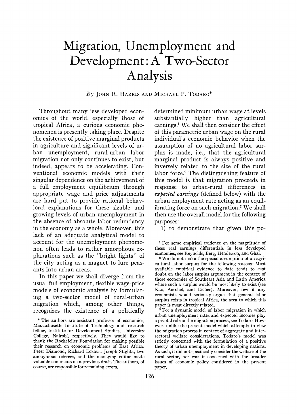 I-IARRIS AND TODARO: MIGRATION AND DEVELOPMENT 127