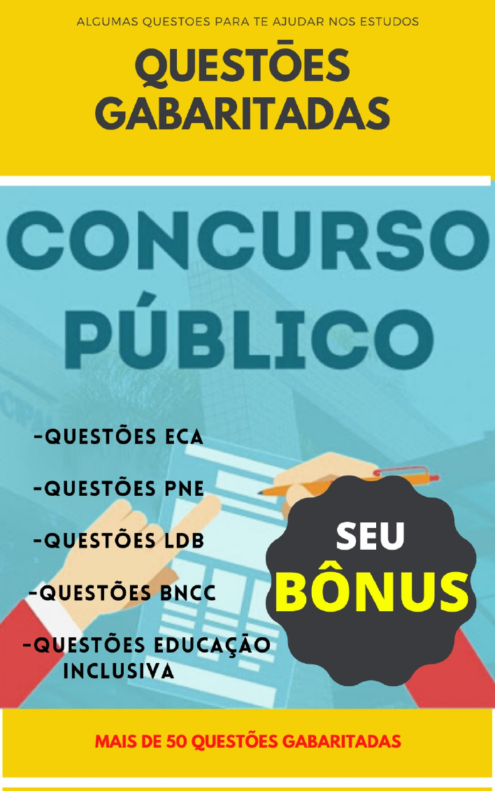Licensed to Tainá Silva Mota - tainacatarina7@gmail.com - 03268617506 BÔNUS QUESTŌES GABARITADAS PARA CONCURSOS QUESTÕES ECA QUESTÕES PNE QUESTÕES LDB QUESTÕES BNCC QUESTÕES EDUCAÇĀO INCLUSIVA ECA Dessa forma estude o ECA, ao final das questões veja o Gabarito. Questão 01 Art. 16 do ECA, mostra que “O direito à liberdade compreende os seguintes aspectos”: A) trabalhar em período integral ou meio período. B) ir, vir e estar nos logradouros públicos e espaços comunitários, ressalvadas as restrições legais. C) participar da vida familiar e comunitária, sem discriminação. D) brincar, praticar esportes e divertir-se. Ano: 2020 Banca: Instituto UniFil Órgão: Prefeitura de Cunha Porã – SC Prova: Instituto UniFil Questão 02 De acordo com o Art. 18 do Estatuto da Criança e do Adolescente (ECA) a criança e o adolescente têm direito de ser educados e cuidados sem o uso de castigo físico ou de tratamento cruel ou degradante. Nos termos da lei, analise as assertivas e assinale a alternativa que não apresenta castigos físicos. 1. Ação de natureza disciplinar ou punitiva com uso da força física que cause sofrimento físico ou lesão. 2. Ação de natureza disciplinar ou punitiva sem uso da força física que não cause sofrimento físico ou lesão. 3. Conduta ou forma cruel de tratamento, que resulte em humilhação. 4. Forma de ameaça grave ou ridicularização. Ano: 2020 Banca: Instituto UniFil Órgão: Prefeitura de Ângulo – PR Prova: Instituto UniFil – 2020 – Prefeitura de Ângulo – PR – Professor Questão 03 O Art. 17 da Lei n.° 8.069/1990, Estatuto da Criança e do Adolescente (ECA), trata do direito ao respeito e consiste na inviolabilidade da integridade física, psíquica e moral da criança e do adolescente. Ele compreende a preservação da A) imagem, identidade, autonomia, valores, ideias, crenças e recursos materiais. B)imagem, identidade, autonomia, valores, ideias e crenças, espaços e objetos pessoais. C)identidade, recursos materiais, autonomia, valores, espaços e objetos pessoais. Questão 01 Art. 16 do ECA, mostra que "O direito à liberdade compreende os seguintes aspectos": Marque a alternativa que não corresponde com esse direito: Licensed to Tainá Silva Mota - tainacatarina7@gmail.com - 03268617506 D) identidade, autonomia, valores, ideias e crenças, espaços, objetos pessoais e moradia. E) imagem, identidade, autonomia, valores, ideias e crenças, lazer e objetos pessoais. GABARITO: 1. A 2. 2 3. B Plano Nacional de Educação - PNE Dessa forma estude o Plano Nacional de Educação, ao final das questões veja o Gabarito. 01 A meta 7 deste Plano Nacional de Educação primeiramente coloca em discussão a base nacional comum dos currículos, o que simultaneamente poderá provocar muitas mudanças no currículo escolar. Ainda assim a questão esta? Certo ou Errado 02 O planejamento voltado implica intencionalidade educativa. Acerca disso A educação todavia abrange os níveis educacional, curricular e de ensino. O Plano Nacional de Educação insere-se no nível educacional, por abranger o sistema de ensino, assim também prevendo os rumos da educação na perspectiva do desenvolvimento tanto da sociedade quanto do indivíduo. Ainda assim a questão esta? Certo ou Errado 03 Em síntese no que concerne ao Plano Nacional de Educação 2001-2010 Entre os objetivos e as prioridades do PNE, todavia incluem-se a melhoria da qualidade do ensino fundamental, a erradicação do analfabetismo e a formação inicial e continuada dos professores? Certo ou Errado 04 Antes de mais nada o Plano Nacional de Educação, que possui força de lei, estabelece as diretrizes, metas e estratégias, por um período de dez anos, que orientam a elaboração dos respectivos planos decenais dos estados, dos municípios e do Distrito Federal? Certo ou Errado 05 De acordo com os instrumentos normativos orientadores das políticas de avaliação educacional Constituição Federal de 1988 (CF), LDB, PNE, e Plano de Desenvolvimento, criado em 2007 (PDE/2007) , Licensed to Tainá Silva Mota - tainacatarina7@gmail.com - 03268617506 Acima de tudo o PNE reforça a importância da avaliação educacional como mecanismo orientador das políticas voltadas à elevação da qualidade do ensino? Certo ou Errado 06 Inclui-se o impedimento da criação de sistemas próprios de avaliação no âmbito dos estados e municípios entre as diretrizes estabelecidas no Plano Nacional de Educação 2001-2010? Certo ou Errado 07 Desde já inclui-se entre as ações previstas no PDE/2007 o índice de desenvolvimento da educação básica (IDEB), assim aferido com base no rendimento dos alunos nos exames nacionais e nos indicadores do fluxo escolar? Certo ou Errado 08 Ao passo que o cenário brasileiro recente, a avaliação educacional revela-se, na CF, como instrumento balizador de um dos princípios fundamentais da oferta do ensino: a garantia do padrão de qualidade? Certo ou Errado 09 A avaliação da educação contudo reafirma-se como tarefa pública direcionada conforme disposto na LDB, à melhoria da qualidade do ensino e orientadora das políticas públicas educacionais? Certo ou Errado 10 Assim como o (PNE),desde já é o principal instrumento de planejamento educacional no Brasil, Nesse ínterim considerando seu contexto histórico . Para a atuação dos profissionais para a educação infantil não será admitida a formação apenas de nível médio na modalidade normal, será exigida contudo obrigatoriamente a formação específica de nível superior? 5. Certo ou Errado GABARITO 1. C 2. C 3.C 4.C 5. C 6. E 7. C 8. C 9. C 10. E Licensed to Tainá Silva Mota - tainacatarina7@gmail.com - 03268617506 Lei de Diretrizes e Bases da Educação n° 9394/96 Leis de Diretrizes e Bases da Educação é sempre presente na pedagogia para concursos bom estudarmos a Lei Seca no pé da letra. Segue o Link da lei LDB : Lei Nº 9.394, de 20 de dezembro de 1996. atualizada com a n