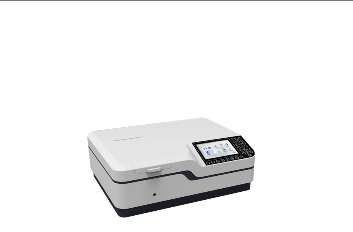 Operating Manual IL-0082-Y-BI UV-VIS Spectrophotometer Contents 1. General Information 1.1 Safety notes 2. Product Overview 2.1 Basic operating principle 2.2 Performance Indicators Definitions 2.3 Applications 2.4 Using conditions 3. Product Features and Installation 3.1 Features 3.2 Technical data 3.3 Main Functions 3.4 Structure Introduction 3.4.1 Top view of structure 3.4.2. Bottom view of structure 3.4.3. Light path diagram 3.4.4. Important part of the instrument 3.5 Instrument installation 4. Key Definitions 5. Programs 5.1 System Self-test 5.2 Photometry 5.3 Quantitation 5.4 Time Scan 5.5 Wavelength Scan 5.6 Multi-wavelength Test 5.7 Protein/DNA Test 5.8 System Setup 6. Maintenance 6.1 Cleaning Requirements 6.1.1. Spectrophotometer 6.1.2. Display 6.1.3. Cuvettes/cells 6.2 Routine precautions 6.3 Tungsten lamp replacement 6.4 Deuterium lamp replacement 7. Troubleshooting 7.1 Power failure 7.2 Self-test failure 7.3 Other failures 1 1. General Information 1.1. Safety notes • Read the entire user manual carefully before you unpack, set up or operate the device. Wrong operations could lead to serious injury of the operator or to damage to the device. • To make sure that the protection provided by this instrument is not impaired, do not use or install this instrument in any manner other than that specified in these operating instructions. • The source lamps are operated at high temperatures. To avoid the risk of electrocution, make sure the instrument is disconnected from the power source before changing the lamps. CAUTION Health hazard caused by ozone. Hazardous levels of ozone can be generated when the UV lamp is not cooled. WARNING Health hazard caused by UV light. UV-Light can cause eye and skin damage. Protect eyes and skin from direct exposure to UV light. Do not look directly at an energized lamp without UV safety glasses. CAUTION Burn hazard, allow the lamp(s) to cool down for at least 30 minutes before they are serviced/replaced. DANGEROUS Potential danger with contact with chemical/biological substances. Working with chemical samples, standards and reagents can be dangerous. Make yourself familiar with the necessary safety procedures and the correct handling of the chemicals before use and read and follow all relevant safety data sheets. Normal operation of this device may require the use of chemicals or samples that are biologically unsafe. • Observe all cautionary information printed on the original solution containers and safety data sheets prior to their use. • Dispose of all consumed solutions in accordance with the local and national regulations and laws. • Select the type of protective equipment suitable to the concentration and quantity of the dangerous material being used . 2 2. Product Overview 2.1. Basic operating principle 2.1.1 The nature of absorption: spectrophotometric analysis method is the use of substances to choose a different wavelength of light absorption characteristics established. Typically using a prism or grating to obtain monochromatic light that passes through the continuous monochromatic solution, the solution was measured and the absorption of each wavelength, the absorption spectrum curve obtained. Absorption spectrum selective absorption of light from the material, which is the material of macroscopic phenomena, and the nature of the molecular absorption is the result of internal movement and light interaction. When molecules absorb certain wavelengths of spectral energy or by some wavelengths of the spectrum is absorbed to form the absorption spectra. The smaller the energy absorption, the wavelength of light corresponding to the absorption peak at a longer wavelength. When the infrared absorbent is formed in the infrared absorption spectrum, if the energy absorption is larger, the shorter the wavelength corresponding to the absorption peak at a shorter wavelength, when generating the ultraviolet absorption spectra of absorption in the ultraviolet region. 2.1.2 Absorption Law - Lambert Beer law: when a parallel beam through the homogeneous solution, the absorbance of monochromatic light is proportional to the product of the solution concentration and thickness. Its expression: A = εbc = log Io/I = -log T Premise absorption laws established numeric expression: ① The incident light is monochromatic. ② The absorption process without interaction of each substance, the absorbance of each substance has additively. ③ The role of light and matter is limited to the absorption process, no fluorescent and photochemical scattering phenomena. ④ Absorbent system is a continuous uniform distribution. 2.1.3. Impact spectrophotometry reasons: 2.1.3.1. Non-absorption errors caused by radiation and matter 2.1.3.2. Fluorescence and photochemical reactions, in general, errors fluorescence spectrophotometry produced negligible fluorescence efficiency is very small in most cases the color system, and the fluorescence emission is isotropic, only a small portion along the transmitted light direction into the detector, the measurement of absorbance is low, resulting in a negative deviation. Depends on the instrument to measure the impact on the absorption of fluorescence great extent on the optical absorption cell and detector design. 2.1.3.3. Reflection and scattering, absorption law applies only to homogeneous medium absorption 3 system, turbid solution so that the measured increase in absorbance due to scattering, resulting in deviation from Beer's law. 2.1.3.4. Non-ideal instrument error caused 2.1.3.5. Beer's law deviation polychromatic contrast, the majority of the photometer can only get close to monochromatic light with a narrow lumen, in fact, there is still a polychromatic nature, can lead to deviations from Beer's law. Deviation depends on the two monochromatic molar absorptivity difference△ ε, |△ ε | is very small, can be approximated that monochromatic, at low concentrations, curve remains linear, but larger concentrations, with c