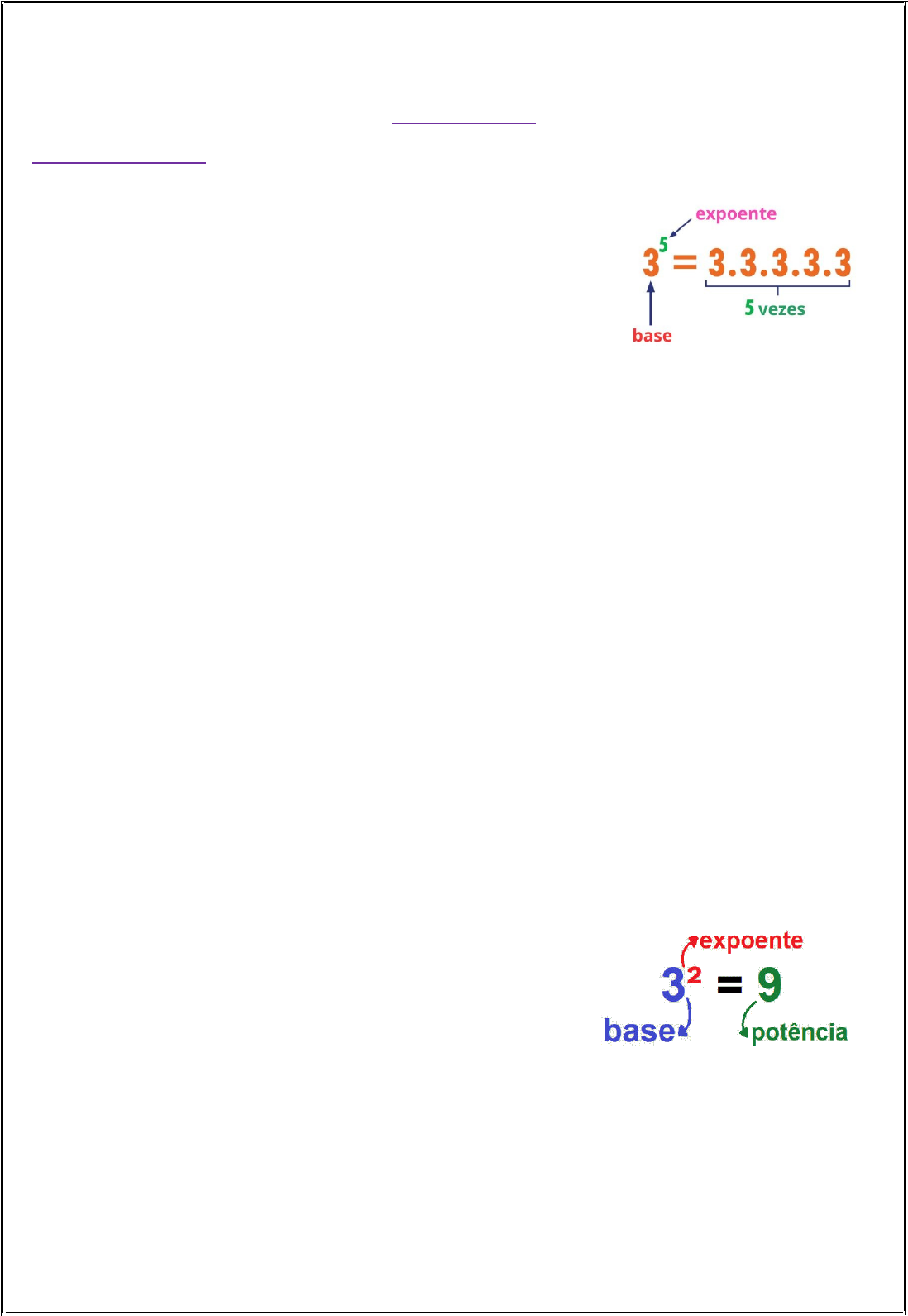 MATERIAL DE APOIO: DISCIPLINA DE MATEMÁTICA POTÊNCIA O que é Potência? A potência é uma forma rápida de multiplicar um número várias vezes. Em vez de escrever muitas multiplicações, usamos a potência para simplificar. EXEMPLO Vamos usar um exemplo para entender: 2³ Esse "³" é chamado de expoente. O número "2" é a base. A potência nos diz que devemos multiplicar o número 2 por ele mesmo três vezes. 2³ = 2 × 2 × 2 Vamos fazer a multiplicação passo a passo: 1. Primeiro, multiplicamos 2 por 2: · 2 × 2 = 4 2. Agora, pegamos o resultado (4) e multiplicamos por 2 novamente: · 4 × 2 = 8 Então, 2³ = 8. MAIS UM EXEMPLO Vamos ver outro exemplo com a potência 4²: 4² Isso significa multiplicar o número 4 por ele mesmo duas vezes: 4² = 4 × 4 Agora, fazemos a multiplicação: 1. Multiplicamos 4 por 4: · 4 × 4 = 16 Então, 4² = 16. RESUMINDO · A base é o número que vamos multiplicar. · O expoente é o número de vezes que vamos multiplicar a base por ela mesma. · EXERCITANDO: A. 3²= 3 · 3 = 9 B. 5³= _____________________________________________________________ C. 106 = ___________________________________________________________ RADICIAÇÃO A radiciação é a operação matemática inversa da potenciação. Ela serve para encontrar um número que, quando elevado a uma certa potência, resulta em outro número. A forma mais comum de radiciação é a raiz quadrada, mas também existem outras, como a raiz cúbica. A radiciação é representada pelo símbolo de raiz (√). O número dentro do símbolo é o radicando, e o índice da raiz indica a potência inversa que estamos considerando. Se o índice não for escrito, entende-se que é 2 (raiz quadrada). EXEMPLO BÁSICO: RAIZ QUADRADA DE 9 A pergunta aqui é: "Qual número, multiplicado por ele mesmo, resulta em 9? A resposta é 3, porque 3 × 3 = 9. Portanto: A RADICIAÇÃO É O PROCESSO INVERSO DA POTENCIAÇÃO. VEJA NO EXEMPLO: Encontrar a raiz de um número é quase como uma charada. Onde você já tem o final da conta, mas precisa descobrir o começo dela. Para descobrir, por exemplo, a raiz quadrada de 4 você pode fazer a seguinte pergunta: Fazendo as contas, perceberá o seguinte: O que é Radiciação? Radiciação é o processo de encontrar um número que, quando multiplicado por ele mesmo um certo número de vezes, dá um resultado específico. É o contrário da potência. Exemplo de Raiz Quadrada Vamos usar a raiz quadrada como exemplo. A raiz quadrada de um número é um valor que, quando multiplicado por ele mesmo, resulta no número original. √9 Esse símbolo (√) é o símbolo da raiz quadrada. Queremos encontrar um número que, quando multiplicado por ele mesmo, seja igual a 9. Vamos tentar: · 3 × 3 = 9 Então, a raiz quadrada de 9 é 3. √9 = 3 Exemplo de Raiz Cúbica A raiz cúbica é um número que, quando multiplicado por ele mesmo três vezes, dá o número original. ³√8 Esse símbolo (³√) é o símbolo da raiz cúbica. Queremos encontrar um número que, quando multiplicado por ele mesmo três vezes, seja igual a 8. Vamos tentar: · 2 × 2 × 2 = 8 Então, a raiz cúbica de 8 é 2. ³√8 = 2 Resumindo · A raiz quadrada de um número é um valor que, quando multiplicado por ele mesmo, dá o número original (por exemplo, √9 = 3, porque 3 × 3 = 9). · A raiz cúbica de um número é um valor que, quando multiplicado por ele mesmo três vezes, dá o número original (por exemplo, ³√8 = 2, porque 2 × 2 × 2 = 8). Espero que isso ajude a entender o que é radiciação! Se precisar de mais exemplos ou tiver alguma dúvida, é só falar! 4o ChatGPT Parece que você não teve mais nada a acrescentar! Vou adicionar mais alguns exemplos para garantir que tudo esteja claro. Mais Exemplos de Radiciação Exemplo de Raiz Quadrada √16 Vamos encontrar um número que, quando multiplicado por ele mesmo, resulte em 16. · 4 × 4 = 16 Então, a raiz quadrada de 16 é 4. √16 = 4 Exemplo de Raiz Cúbica ³√27 Vamos encontrar um número que, quando multiplicado por ele mesmo três vezes, resulte em 27. · 3 × 3 × 3 = 27 Então, a raiz cúbica de 27 é 3. ³√27 = 3 Resumindo Novamente · Raiz Quadrada: √16 = 4, porque 4 × 4 = 16. · Raiz Cúbica: ³√27 = 3, porque 3 × 3 × 3 = 27. Uma Forma de Praticar Para entender melhor, você pode praticar com outros números. Tente encontrar a raiz quadrada de 25 (√25) e a raiz cúbica de 64 (³√64). Lembre-se: · A raiz quadrada de um número é o valor que, multiplicado por ele mesmo, dá o número original. · A raiz cúbica de um número é o valor que, multiplicado por ele mesmo três vezes, dá o número original. image5.png image6.png image7.jpeg image8.jpeg image9.png image1.jpeg image2.png image3.png image4.png