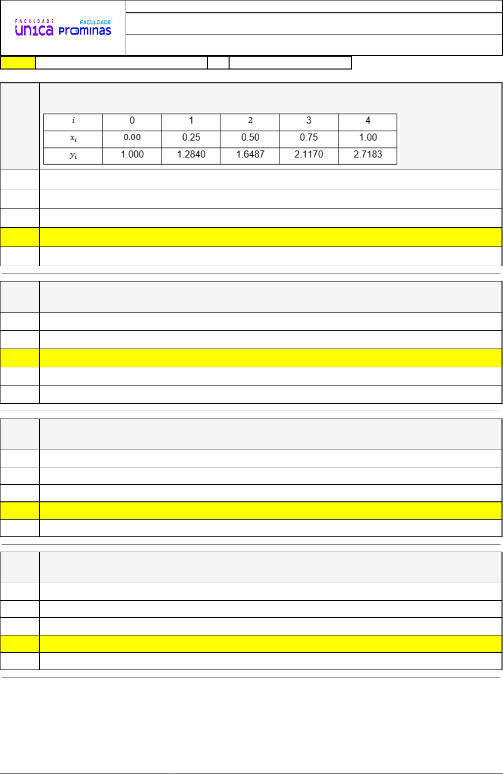 001 Considere a seguinte tabela da função y=f(x). Encontre a aproximação linear através
