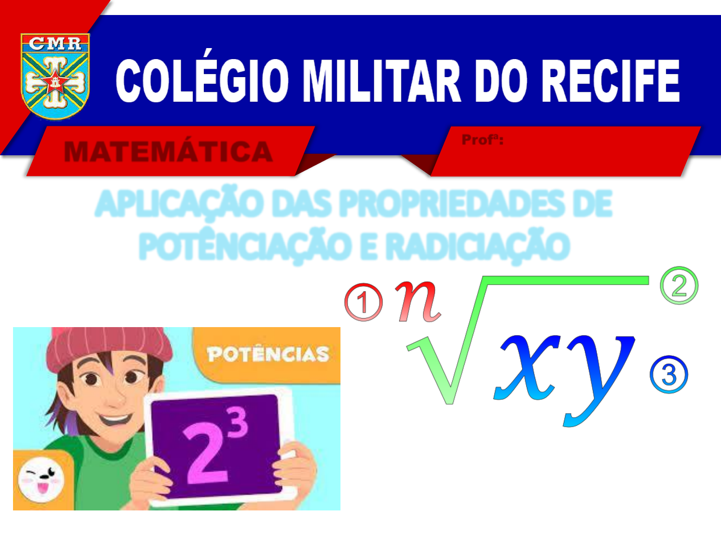 Profª: Ten Débora Santos MATEMÁTICA 2024 APLICAÇÃO DAS PROPRIEDADES DE POTÊNCIAÇÃO E RADICIAÇÃO Potenciação e Radiciação – Prof. Márcio Barros Profª: Ten Débora Santos MATEMÁTICA 2024 Potenciação e Radiciação – Prof. Márcio Barros Profª: Ten Débora Santos MATEMÁTICA 2024 Observe o padrão desta sequência: Com base neste padrão lógico o valor de 1 + 3 + 5 + 7 + 9 + 11 + 13 + 15 = corresponde a: (A) 62. (B) 72. (C) 82. (D) 92. (E) 102. Potenciação e Radiciação – Prof. Márcio Barros Profª: Ten Débora Santos MATEMÁTICA 2024 Considerando-se os números 4,4 × 10-3 e 5,8 × 108 , escritos em notação científica, assinalar a alternativa que apresenta, em notação científica, o resultado do produto desses números: (A) 2,552 × 104 (B) 25,52 × 104 (C) 25,52 × 105 (D) 2,552 × 106 Potenciação e Radiciação – Prof. Márcio Barros Profª: Ten Débora Santos MATEMÁTICA 2024 O valor de quatro dividido pela raiz quadrada de dois é equivalente a: (A) Dois (B) Raiz quadrada de dois. (C) Quatro vezes a raiz quadrada de dois. (D) Duas vezes a raiz quadrada de dois. Potenciação e Radiciação – Prof. Márcio Barros Profª: Ten Débora Santos MATEMÁTICA 2024 Um aluno entediado digitou o número 0,99 na calculadora e apertou na função “elevar ao quadrado” 5 vezes, resultando no número 0,72498033. A expressão que equivale à conta feita pela calculadora é dada por: (A) 0,992 (B) 0,995 (C) 0,995/2 (D) 0,9910 (E) 0,9932 Potenciação e Radiciação – Prof. Márcio Barros Profª: Ten Débora Santos MATEMÁTICA 2024 Assinale a propriedade operatória das potências que está INCORRETA: (A) a 1 = a (B) an . a m = an + m (C) (an) m = an.m (D) (a.b)n = an . bn (E) (a + b)n = an + bn Potenciação e Radiciação – Prof. Márcio Barros Profª: Ten Débora Santos MATEMÁTICA 2024 Capitais Nº de habitantes Belo Horizonte 2.400.000 Brasília 2.600.000 Rio de Janeiro 6.000.000 São Paulo 11.000.000 (CFTMG, 2010) Segundo estimativas do IBGE, em 2009, o Brasil tinha, aproximadamente, 190 milhões de habitantes espalhados pelas suas 27 unidades da Federação e 5.565 municípios. A tabela seguinte mostra o número aproximado de habitantes em algumas capitais brasileiras. Com base nesses dados, é correto afirmar que, aproximadamente ………………., habitantes estão distribuídos em ………………. . Potenciação e Radiciação – Prof. Márcio Barros Profª: Ten Débora Santos MATEMÁTICA 2024 A opção que completa corretamente as lacunas acima é: (A) 1,68 x 108, 5.561 municípios. (B) 2,45 x 107, 5.561 municípios. (C) 7,52 x 106, Belo Horizonte e Brasília. (D) 7,10 x 106, Belo Horizonte e São Paulo. Potenciação e Radiciação – Prof. Márcio Barros Profª: Ten Débora Santos MATEMÁTICA 2024 Potenciação e Radiciação – Prof. Márcio Barros Profª: Ten Débora Santos MATEMÁTICA 2024 Potenciação e Radiciação – Prof. Márcio Barros Profª: Ten Débora Santos MATEMÁTICA 2024 O valor da expressão abaixo é: Potenciação e Radiciação – Prof. Márcio Barros Profª: Ten Débora Santos MATEMÁTICA 2022 Potenciação e Radiciação – Prof. Márcio Barros Profª: Ten Débora Santos MATEMÁTICA 2024 O valor da expressão abaixo é: Potenciação e Radiciação – Prof. Márcio Barros Profª: Ten Débora Santos MATEMÁTICA 2024 Potenciação e Radiciação – Prof. Márcio Barros Profª: Ten Débora Santos MATEMÁTICA 2022 Potenciação e Radiciação – Prof. Márcio Barros Profª: Ten Débora Santos MATEMÁTICA 2022