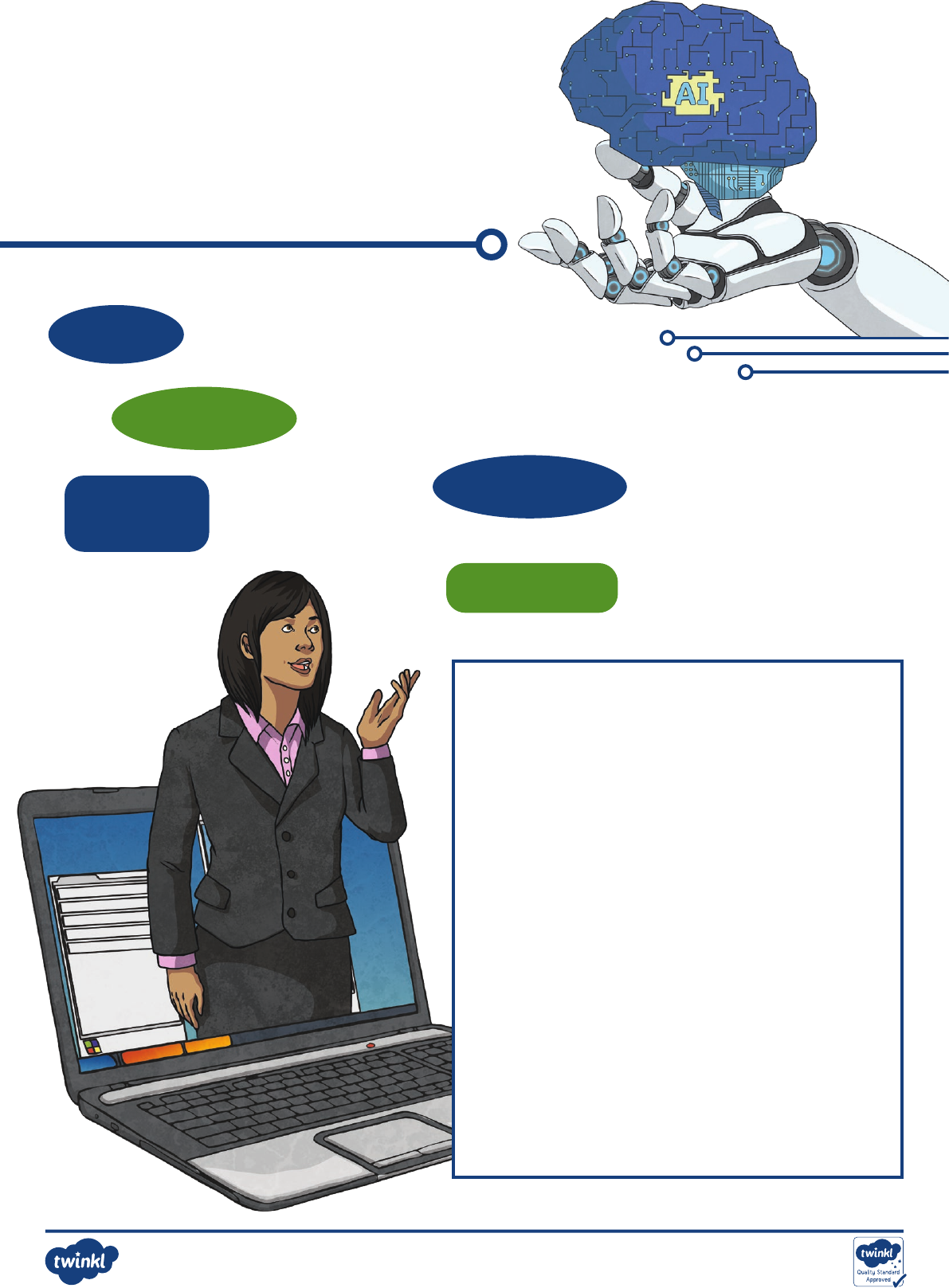 AI in the Workplace In recent months, ChatGPT has created a buzz. For those who aren’t in the loop, ChatGPT is an AI language learning model – or in simpler words, a computer program that can chat over text. It’s more sophisticated than your average AI; it can answer complex questions, write a high school English paper, compose song lyrics, and even create code. The arrival of ChatGPT has left many workers worried for their job security. AIs like ChatGPT are likely to take over jobs in accounting, healthcare, factories and transport: the AI can complete many repetitive tasks, and learn to do new ones. This has left many human workers worried that their current jobs will become unnecessary. There are many tasks that machines can do better than humans: they have better memories, can do maths accurately, as well as work with larger datasets. But there are some tasks that are much harder for machines to do, such as problem-solving, complex decision-making, or leading a human team. [literal] the sound a bee makes [figurative] excitement, interest, activity aware about a topic, informed repeated many times, usually tiresomeaccept change, adapt to new things write or create a work of art (usually music or poetry) buzz compose repetitive in the loop embrace chance visit twinkl.com Page 1 of 2 https://www.twinkl.co.uk/resources/browse-by-skill-esl-efl-resources/reading-esl-resources/esl-reading-comprehensions-reading-browse-by-skill-esl-resources Not only that, but AIs similar to ChatGPT still have a long way to go. ChatGPT only has access to information from 2021 and before, meaning that it cannot answer simple questions about who won last night’s sports game, or summarise a recent event. It also still gets questions wrong frequently, failing at basic maths or producing illogical answers. Some are nervous about AI’s increasing role in the workplace, while others are encouraging workers to embrace change and learn to use AI as a work tool, just like how we currently use spreadsheets and calendar scheduling. Regardless of what happens, it seems we can’t outsmart AI – so we might as well try and get its help. Disclaimers: This resource has been made for the purpose of teaching English language learners. We know that students can be learning English in many different places, in many different ways and at age, so we try to keep these resources as general as possible. There are many acronyms associated with English language teaching. These include (but are not limited to) ELT, TEFL, EFL, ELL, EAL and ESOL. While the term ESL may not fully represent the linguistic backgrounds of all students, it is the most widely recognised term for English language teaching globally. Therefore, we use the term ‘ESL’ in the names of our resources to make them easy to find but they are suitable for any student learning to speak English. AI in the workplace visit twinkl.com Page 2 of 2 https://www.twinkl.co.uk/resources/browse-by-skill-esl-efl-resources/reading-esl-resources/esl-reading-comprehensions-reading-browse-by-skill-esl-resources Questions 1. What is the opposite of in the loop? 2. Give an example of a repetitive task. 3. Choose the sentence with the incorrect meaning of compose: a. He composed a lovely poem for his partner. b. The dog composed a wagging tail. c. He’s quite good at composing songs even without writing anything down. Vocabulary Builder Questions 1. What tasks can ChatGPT do? 2. What are some of the flaws of ChatGPT? 3. What are some advantages of using AI over humans? Reading Comprehension AI in the workplace visit twinkl.comPage 1 of 2 https://www.twinkl.co.uk/resources/browse-by-skill-esl-efl-resources/reading-esl-resources/esl-reading-comprehensions-reading-browse-by-skill-esl-resources 1. Have you used AI in the workplace? 2. What do you think AI will be like in 10 years time? 3. Do you think AI will replace most jobs in the future? 4. What are some things humans are better at than AIs? Discussion Questions: Discuss these questions with a partner or your teacher. Feel free to record your answers in the spaces provided. AI in the workplace visit twinkl.comPage 2 of 2 https://www.twinkl.co.uk/resources/browse-by-skill-esl-efl-resources/reading-esl-resources/esl-reading-comprehensions-reading-browse-by-skill-esl-resources Answers Vocabulary Builder Answers: 1. Out of the loop 2. Capturing data, scanning pages of a book, filling in forms [accept any answer that demonstrates student understanding of vocabulary] 3. b 1. ChatGPT can write school papers, answer complicated questions, write lyrics and code 2. It sometimes gives illogical answers, its database is outdated 3. Ai has better memory, is better at maths, and it doesn’t get tired or need compensation for its work Reading Comprehension: AI in the workplace visit twinkl.com https://www.twinkl.co.uk/resources/browse-by-skill-esl-efl-resources/reading-esl-resources/esl-reading-comprehensions-reading-browse-by-skill-esl-resources