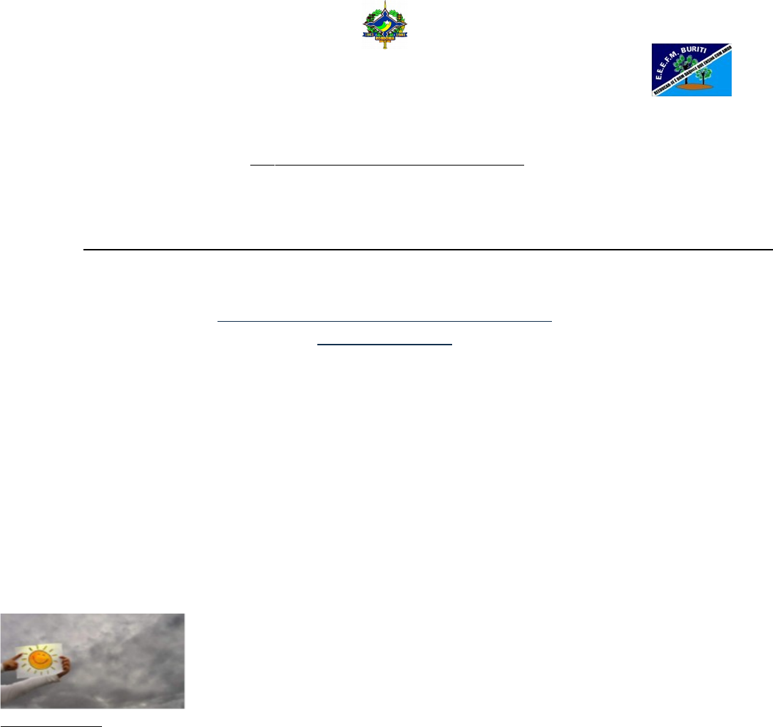 GOVERNO DO ESTADO DE RONDÔNIA SECRETARIA DE ESTADO DA EDUCAÇÃO – CRE/Buritis Escola Estadual de Ensino Fundamental e Médio Buriti A tividades PROJETO DE VIDA Professor(a): Claudemir Ano Escolar: 2020 Turma:2° ano Aluno(a): TODOS NÓS TEMOS DIAS BONS E DIAS RUINS... A sinceridade, por ser um valor individual, depende da consciência de cada pessoa. Ou seja, ser sincero depende das próprias experiências vividas, percepção de mundo e características de personalidade que determinam as intenções de cada um. Ser sincero requer coragem e integridade, ter uma visão crítica a respeito de si mesmo. Requer um olhar profundo de cada um nas profundezas do próprio ser, saber administrar sentimentos e certezas que muitas vezes nos machucam. Além dos conflitos internos gerados pela prática da sinceridade, ela também pode levar a desapontar algumas pessoas do convívio social e com isso, trazer conflitos e perdas difíceis de reparar. Assim sendo, essa aula tem como objetivo levar os estudantes a refletirem sobre a prática da sinceridade a partir da reflexão de suas próprias posturas. Sinceridade Sinceridade Palavra bela que me conduz e norteia Contrapõe a falsidade Sobrepõe a mentira feia (...) Sinceridade Já me deixou muitas vezes em apuro Por falar sempre a verdade Sem vacilo sobre o muro Sinceridade Ainda escolho o sistema mais antigo Enxergar dentro do olho A lisura de um amigo Tradição que eu persigo Na ilusão de um sonhador E é verdade o que digo: Quem tem honra tem valor (...) ATIVIDADES 1. Depois de refletir sobre a letra da música, responda a algumas perguntas: a) Você já tentou encontrar alguma vez a melhor maneira de contar a verdade? Como Você acha que se saiu nessa situação? b) O que você valoriza numa amizade ou na relação que estabelece com as pessoas? c) Qual é a sua opinião acerca das pessoas que, para agradar a todos, não conseguem ser Verdadeiras em várias situações da vida? 2. A sinceridade depende da consciência crítica que temos sobre nós mesmo. Quanto mais verdadeiros Conseguimos ser com nós mesmos, melhor será o nosso convívio social. Não há como sermos pessoas sinceras se não conseguimos primeiro gerir as nossas próprias verdades. Sobre isso responda: a) A sinceridade constrói confiança e amizades verdadeiras. b) É possível ser sincero sem ser arrogante ou hipócrita. c) Expor sempre o que sentimos pode gerar sérias dificuldades de relacionamento. image1.png image2.jpeg image3.png