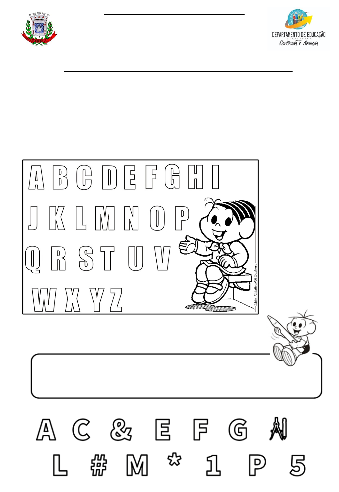 AVALIAÇÃO DIAGNÓSTICA DE LÍNGUA PORTUGUESA 1º ANO ______ DATA: _____/_____/2021 COMO É BOM TER VOCÊ AQUI PARA NOS MOSTRAR O QUE VOCÊ JÁ SABE!!! MOSTRE QUE VOCÊ E FERA NA APRENDIZAGEM!!!!! 1. PARA COMEÇAR NOSSO TRABALHO, A MÔNICA QUER SABER SEU NOME. PINTE COM A SUA COR PREFERIDA AS LETRAS QUE FORMAM SEU NOME. 2. AGORA O CEBOLINHA QUER SABER O SEU NOME. ESCREVA-O NO ESPAÇO ABAIXO. 3. CIRCULE SOMENTE AS LETRAS: Prefeitura do Município de Mandaguaçu ESTADO DO PARANÁ DEPARTAMENTO DE EDUCAÇÃO E CULTURA Rua Bernardino Bogo, 175 FONE/FAX (44) 3245-5588 CNPJ 76.285.329/0001-08 E-mail: educamandagua@gmail.com 4. ESCREVA A LETRA INICIAL DO NOME DE CADA FIGURA: 5. LEVE CADA LETRA DO ALFABETO AO SEU LUGAR. COMPLETE COM AS LETRAS QUE ESTÃO FALTANDO. 6. VOCÊ SE LEMBRA DAS BOQUINHAS? ESCREVA A LETRA QUE CADA UMA REPRESENTA: __________ __________ __________ __________ __________ 7. FALE EM VOZ ALTA O NOME DOS DESENHOS E LIGUE SOMENTE A SEQUÊNCIA DE VOGAIS ÀS SUAS FIGURAS. AVALIAÇÃO DIAGNÓSTICA DE MATEMÁTICA 1. PINTE O GATINHO QUE ESTÁ MAIS LONGE DA MAMÃE GATA: 2. CIRCULE O PINTINHO QUE ESTÁ MAIS PERTO DA MAMÃE GALINHA: 3. CHICO BENTO ESTÁ PRECISANDO DE AJUDA PARA REGISTRAR OS NÚMEROS. QUAL A QUANTIDADE QUE CADA MÃOZINHA ESTÁ MOSTRANDO? REGISTRE. 4. MAGALI QUER BRINCAR DE AMARELINHA, MAS ESTÃO FALTANDO ALGUNS NÚMEROS, VAMOS COMPLETAR PARA A MAGALI BRINCAR E FICAR FELIZ? 5. BIDU ESTÁ FOTOGRAFANDO UMA PARTE DA TURMA DA MÔNICA. QUEREMOS LHE VER, DESENHE COMO VOCÊ É! 6. A TURMA DA MÔNICA GOSTA MUITO DE COMEMORAR ANIVERSÁRIO. VOCÊ TAMBÉM GOSTA? REGISTRE QUANTOS ANOS VOCÊ TEM NO BOLO DE ANIVERSÁRIO.