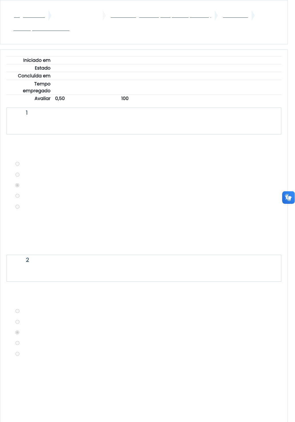 Página inicial Minhas disciplinas 2024/3 - Ergonomia (Terapia Ocupacional) UNIDADE IV AVALIAÇÃO - UNIDADE IV Iniciado em sábado, 27 jul 2024, 16:26 Estado Finalizada Concluída em sábado, 27 jul 2024, 16:33 Tempo empregado 6 minutos 58 segundos Avaliar 0,50 de um máximo de 0,50(100%) Questão 1 Correto Atingiu 0,05 de 0,05 Questão 2 Correto Atingiu 0,05 de 0,05 Como se define a etapa e análise da atividade na AET? a. Essa etapa analisa aquilo que é descrito com o que realmente é executado. b. Nenhuma das alternativas é correta. c. Refere-se a maneira que o trabalhador procede para alcançar os objetivos que lhe foram atribuídos. d. Procura descobrir as causas que provocam os problemas descritos na demanda. e. Essa análise procura entender a origem e entender a dimensão dos problemas encontrados. A resposta correta é: Refere-se a maneira que o trabalhador procede para alcançar os objetivos que lhe foram atribuídos. Guérin et al. (2001, apud Iida, 2005) desdobra a AET em quais etapas? a. Análise, diagnóstico e recomendações b. Análise da demanda, análise da tarefa e análise da atividade c. Análise da demanda, análise da tarefa, análise da atividade, diagnóstico e recomendações. d. Análise, diagnóstico e implantação e. Nenhuma das alternativas está correta. A resposta correta é: Análise da demanda, análise da tarefa, análise da atividade, diagnóstico e recomendações. 27/07/24, 16:33 AVALIAÇÃO - UNIDADE IV: Revisão da tentativa https://ambienteonline.uninga.br/mod/quiz/review.php?attempt=3033735&cmid=802374 1/6 https://ambienteonline.uninga.br/ https://ambienteonline.uninga.br/course/view.php?id=27893 https://ambienteonline.uninga.br/course/view.php?id=27893§ion=7 https://ambienteonline.uninga.br/mod/quiz/view.php?id=802374 Questão 3 Correto Atingiu 0,05 de 0,05 Questão 4 Correto Atingiu 0,05 de 0,05 Na análise ergonômica do trabalho devem ser observados: a. Riscos ergonômicos que equipamentos, posturas e ambiente podem ocasionar à saúde do trabalhador. b. Riscos ergonômicos que equipamentos e mobiliários, posturas e ritmos de trabalho podem ocasionar à saúde do trabalhador. c. Riscos ergonômicos que equipamentos, ritmos de trabalho e ambiente podem ocasionar à saúde do trabalhador. d. Riscos ergonômicos que posturas e ambiente podem ocasionar à saúde do trabalhador. e. Riscos ergonômicos que posturas, ritmos de trabalho e ambiente podem ocasionar à saúde do trabalhador. A resposta correta é: Riscos ergonômicos que equipamentos e mobiliários, posturas e ritmos de trabalho podem ocasionar à saúde do trabalhador. "Para compreendermos a AET, precisamos inicialmente diferenciar tarefa e atividade." Leia as afirmativas abaixo e marque V ou F ( ) Como tarefa, entendemos a descrição do que o trabalhador deve fazer e a forma como realizar. ( ) A atividade é a forma como o trabalhador efetivamente executa seu trabalho, com suas características, preferências e estratégias para atingir o objetivo do trabalho. ( ) Tarefa é o trabalho prescrito. ( ) Atividade é o que o trabalhador executa de fato. a. V, V, V, V. b. V, V, V, F. c. F, F, F, F. d. V, V, F, F. e. F. F, V. V. A resposta correta é: V, V, V, V. 27/07/24, 16:33 AVALIAÇÃO - UNIDADE IV: Revisão da tentativa https://ambienteonline.uninga.br/mod/quiz/review.php?attempt=3033735&cmid=802374 2/6 Questão 5 Correto Atingiu 0,05 de 0,05 Questão 6 Correto Atingiu 0,05 de 0,05 Veronesi (2008) complementa que a utilização do método de análise ergonômica do trabalho deve levar em consideração fatores ocultos relacionados à organização do trabalho no mundo globalizado, como: a. O quadro de produção ao longo do mês (quanto produziu e quanto estava programado para produzir). b. As características econômicas da região. c. O número de afastamentos e de acidentados. d. Todas as alternativas são corretas. e. O número de horas extras realizadas por trabalhador a cada mês. A resposta correta é: Todas as alternativas são corretas. Sobre EWA – “Ergonomic Workplace Analysis”, é incorreto afirmar: a. É o protocolo de AET mais usual e difundido no Brasil. b. Corresponde a aplicação de um protocolo que avalia o local de trabalho. c. Teve sua tradução autorizada para o português sob a coordenação do Professor Sênior Dr. João Alberto Camarotto, da Universidade Federal de São Carlos. d. Se destaca pela importância histórica, no contexto de análise ergonômica do local de trabalho, caracterizada por abordagens objetivas. e. Todas as afirmações são corretas. A resposta correta é: Se destaca pela importância histórica, no contexto de análise ergonômica do local de trabalho, caracterizada por abordagens objetivas. 27/07/24, 16:33 AVALIAÇÃO - UNIDADE IV: Revisão da tentativa https://ambienteonline.uninga.br/mod/quiz/review.php?attempt=3033735&cmid=802374 3/6 Questão 7 Correto Atingiu 0,05 de 0,05 Questão 8 Correto Atingiu 0,05 de 0,05 Na análise do trabalho, a ergonomia precisa leva em consideração quais elementos? I. A caracterização de determinada equipe de trabalho. II. O conhecimento das normas internas e externas do posto de trabalho. III. Análise do espaço de trabalho e sua localização geográfica, clima, acesso dos trabalhadores. IV. O conhecimento da atividade/trabalho, seus processos, objetivos, ferramentas, além do planejamento de produção da empresa. a. Apenas I e II são corretas. b. Todas as afirmações são corretas. c. Apenas I, II e III são corretas. d. Apenas III e IV são corretas. e. Apenas II e III são corretas. A resposta correta é: Todas as afirmações são corretas. Como se define a etapa de análise da tarefa na AET? a. Procura descobrir as causas que provocam os problemas descritos na demanda. b. Essa análise procura entender a origem e entender a dimensão dos problemas encontrados c. Nenhuma das alternativas é correta d. Essa etapa analisa aquilo que é descrito com o que realmente é executado. e