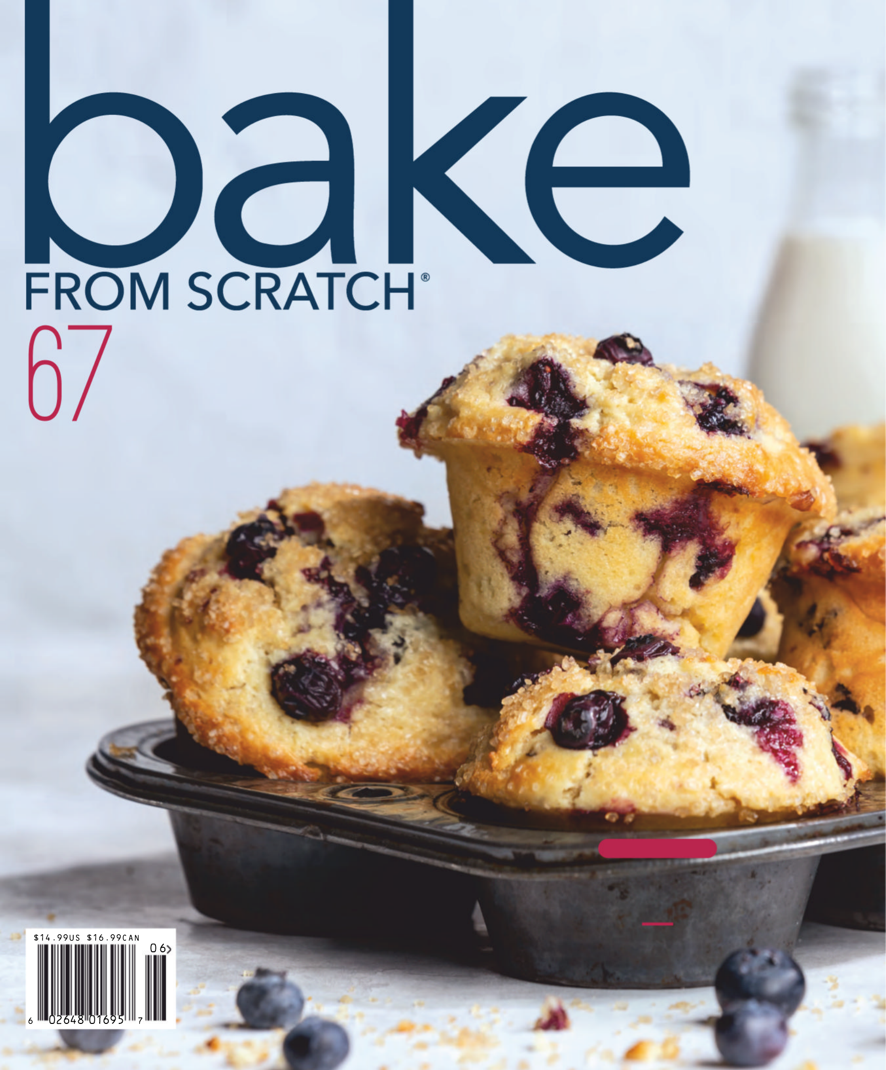 bakery-style blueberry mu ns page 108 Yeasted Doughnuts: Step-by-Step for Success Juneteenth Desserts with Britney Brown-Chamberlain + FEATURING Celebrate Pride with Festive Rainbow Bakes Childhood Calling! Animal Crackers, Fig Bars + More Summer Recipes + Ideas bl ue be rry bounty! The Season’s Best Cak e, Pie, Pastry + Bread Five Epic Sandwich Breads Origins of Key Lime Pie DISPLAY UNTIL JULY 1, 2024 #thebakefeed MAY/JUNE 2024 VOLUME 10, ISSUE 3 6 02648 01695 7 0 6 $14.99US $16.99CAN bake from scratch3 15 Baker Spotlight: Cataloging Family Culinary History Judy Kahn shares how documenting her mother’s cooking became her family’s generational food blog, My Back Kitchen 17 From the Test Kitchen: All About Accuracy Choose the right kitchen thermometer to ensure your bakes always come out right 19 Passed Down: Almond Excellence How one baker turned California almonds into a legendary Pennsylvania cake 23 From the Pantry: Blueberries Native to North America, these sapphire- hued beauties deserve to be celebrated during their peak-season glory 27 Baker Profi le: Rebekah Peppler Dive deep into author Rebekah Peppler’s latest cookbook, Le Sud, that refl ects the Provençal table with elegant, casual fl air 33 Bread Box: Fresh and Sweet Summer Fruit Breads Bread meets cake in these berry- and stone fruit- fi lled recipes 37 Baking with Britney: Juneteenth Desserts Britney Brown-Chamberlain shares cake and pie recipes that commemorate this national holiday 41 BAKING SCHOOL IN-DEPTH: YEASTED DOUGHNUTS Bring the doughnut shop to your kitchen with our step-by-step guide to mixing, proofi ng, frying, fi lling, and topping by the dozen table of contents may | june 2024 4 53 SUMMERTIME BLUES Blueberry season is here! Indulge in these delectable, berry-fi lled layer and loaf cakes, soft breads, and lattice-topped pie. 63 5 FABULOUS SANDWICH BREADS Fill your bread basket with these bountiful buns, rolls, and loaves perfect for making sandwiches 73 CHARLOTTE PAN CHARMERS Visually similar to the dessert by the same name, the charlotte pan creates cookies, cakes, and breads with gently curved sides and tops for piling high with fruits, frostings, and so much more 83 THROWBACK COOKIES Take your taste buds on a trip down memory lane with these modern versions of old-school cookies that the Bake from Scratch team grew up with 93 FILLED WITH PRIDE In recognition of Pride Month, get to know some of our favorite LGBTQIA+ bakers and bloggers and a few of their rainbow-colored creations 103 Origin of a Classic: Key Lime Pie Although it’s the offi cial pie of Florida, Key lime pie’s refreshing fl avor and creamy texture have ensured its popularity has traveled far and wide 107 Gold Standard: Berry Good Muffi ns Bakery-style blueberry muffi ns without leaving home 109 Fast-Fix Baking: Chocolate Decadence Meet the bouchon—part cake, part brownie, all French 113 Bake It Like Brian: Layers to Love Brian shows you how to turn his beloved tastes- like-wedding-cake cookie sandwiches into an epic cookie layer cake worthy of any celebration ADVERTISING The sturdy and sleek Ankarsrum Assistent Original Mixer is the ultimate professional-quality kitchen tool. Featuring a powerful motor located in the base of the mixer and an adjustable steel arm that holds the roller with a separate scraper, this mixer can simultaneously roll and knead, making bread dough all the more approachable and easy to work with. Try it for yourself with these margherita pizza-inspired tarts fi lled with fresh, sweet tomatoes, creamy burrata cheese, and fragrant basil. Makes 12 servings Dough: ¾ cup (180 grams) whole milk ½ cup (120 grams) water ⅓ cup (75 grams) unsalted butter, cubed 1 large egg (50 grams), beaten 4¼ cups (531 grams) all-purpose fl our, plus more for dusting 2 tablespoons (24 grams) granulated sugar 1 tablespoon (9 grams) kosher salt 2¼ teaspoons (7 grams) active dry yeast Topping: 8 to 10 fresh Campari or plum tomatoes (about 226 grams), sliced ¼ inch thick Kosher salt, for sprinkling 4 tablespoons (56 grams) olive oil, divided 2 (8-ounce) containers (452 grams) mini burrata cheese balls, drained 2 cloves garlic (8 grams), minced ½ teaspoon (1 gram) crushed red pepper Garnish: fresh basil, fl aked sea salt 1. For dough: In a medium saucepan, heat milk, ½ cup (120 grams) water, and butter over medium-low heat, stirring occasionally, until butter is melted and an instant-read thermometer registers 120°F (49°C) to 130°F (54°C). 2. Place warm milk mixture and egg in mixer bowl with roller and dough knife attached. With roller resting on rim of bowl, mix on medium speed (3 o’clock) until combined. 3. In a medium bowl, whisk together fl our, sugar, kosher salt, and yeast. Reduce mixer speed to lowest setting (12 o’ clock), and gradually add fl our mixture. Increase mixer speed to medium-low (2 to 3 o’clock), and mix just until a dough forms. Adjust arm to about 1 inch from side of bowl; set speed to medium-low (2 to 3 o’clock), and set timer for 10 to 12 minutes. Dough will be soft, smooth, and elastic when ready. 4. Turn out dough onto a clean surface; knead 3 to 4 times, and shape into a smooth round. 5. Oil a large bowl. Place dough in bowl, turning to grease top. Cover and let rise in a warm, draft-free place (75°F/24°C) until doubled in size, about 1 hour. 6. Lightly punch down dough. Cover and let stand for 10 minutes. Line 2 large baking sheets with parchment paper. 7. Turn out dough onto a very lightly fl oured surface, and roll into a 16x12-inch rectangle. Cut dough into 12 (4-inch) squares; place squares about 2 inches apart on prepared pans. Cover and let rise in a warm, draft-free place (75°F/24°C) until puff ed, 30 to 45 minutes. 8. Meanwhile, for topping: Place tomato slices on several layers of paper towels; lightly sprinkle kosher salt on both sides of tomatoes. Let stand for 45 minutes. Gently brush off excess salt and blot dry with paper towels. 9. Preheat oven to 375°F (190°C). 10