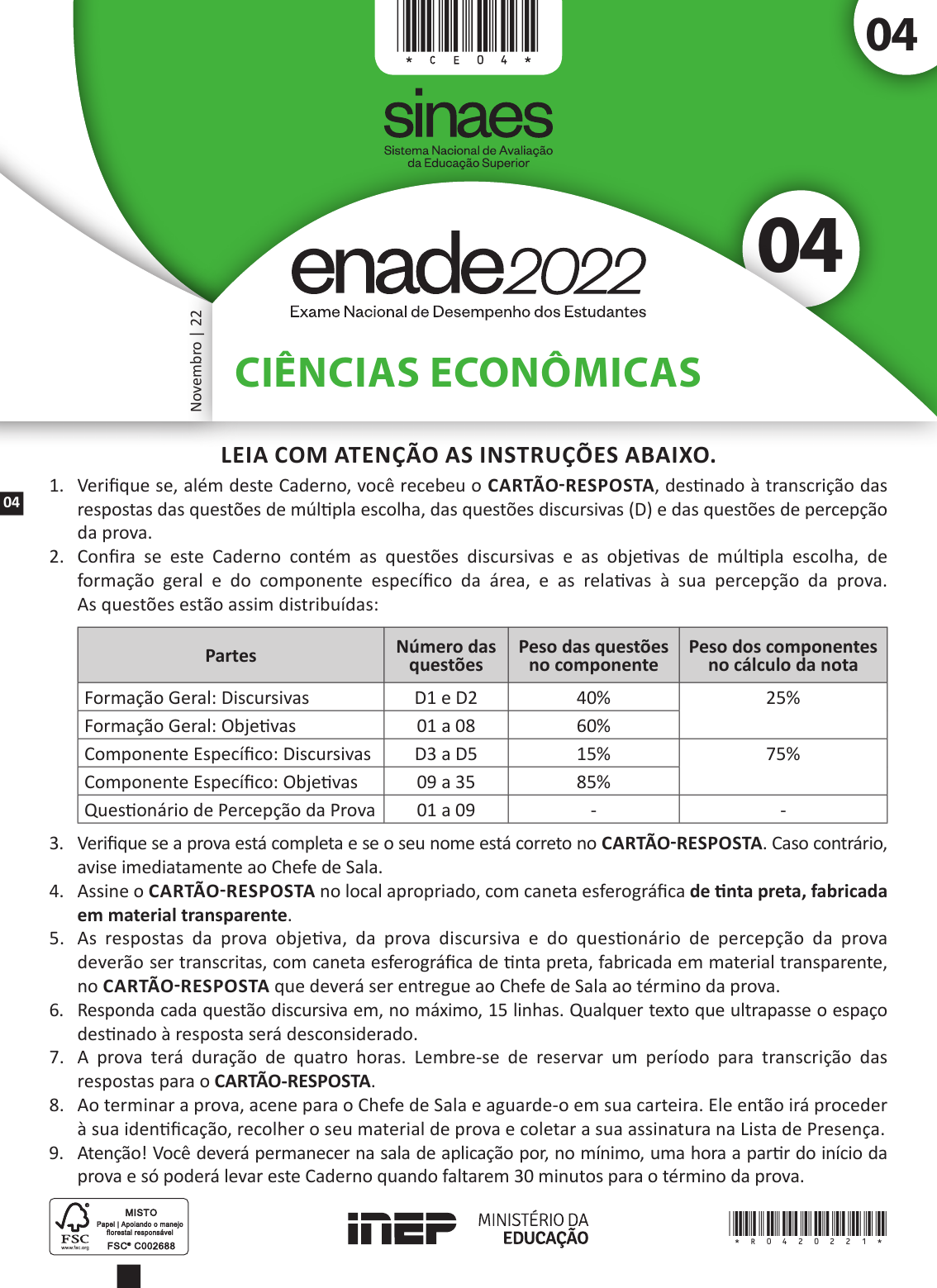 formação	 geral	 e	 do	 componente	 específico	 da	 área,	 e	 as	 relativas	 à	 sua	 percepção	 da	 prova.