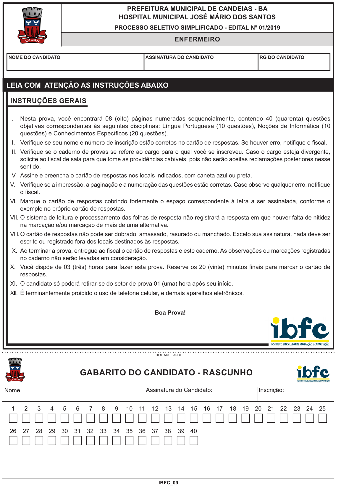 IBFC_09 DESTAQUE AQUI GABARITO DO CANDIDATO - RASCUNHO Nome: Assinatura do Candidato: Inscrição: PREFEITURA MUNICIPAL DE CANDEIAS - BA HOSPITAL MUNICIPAL JOSÉ MÁRIO DOS SANTOS ENFERMEIRO NOME DO CANDIDATO ASSINATURA DO CANDIDATO RG DO CANDIDATO INSTRUÇÕES GERAIS I. Nesta prova, você encontrará 08 (oito) páginas numeradas sequencialmente, contendo 40 (quarenta) questões objetivas correspondentes às seguintes disciplinas: Língua Portuguesa (10 questões), Noções de Informática (10 questões) e Conhecimentos Específicos (20 questões). II. Verifique se seu nome e número de inscrição estão corretos no cartão de respostas. Se houver erro, notifique o fiscal. III. Verifique se o caderno de provas se refere ao cargo para o qual você se inscreveu. Caso o cargo esteja divergente, solicite ao fiscal de sala para que tome as providências cabíveis, pois não serão aceitas reclamações posteriores nesse sentido. IV. Assine e preencha o cartão de respostas nos locais indicados, com caneta azul ou preta. V. Verifique se a impressão, a paginação e a numeração das questões estão corretas. Caso observe qualquer erro, notifique o fiscal. VI. Marque o cartão de respostas cobrindo fortemente o espaço correspondente à letra a ser assinalada, conforme o exemplo no próprio cartão de respostas. VII. O sistema de leitura e processamento das folhas de resposta não registrará a resposta em que houver falta de nitidez na marcação e/ou marcação de mais de uma alternativa. VIII. O cartão de respostas não pode ser dobrado, amassado, rasurado ou manchado. Exceto sua assinatura, nada deve ser escrito ou registrado fora dos locais destinados às respostas. IX. Ao terminar a prova, entregue ao fiscal o cartão de respostas e este caderno. As observações ou marcações registradas no caderno não serão levadas em consideração. X. Você dispõe de 03 (três) horas para fazer esta prova. Reserve os 20 (vinte) minutos finais para marcar o cartão de respostas. XI. O candidato só poderá retirar-se do setor de prova 01 (uma) hora após seu início. XII. É terminantemente proibido o uso de telefone celular, e demais aparelhos eletrônicos. Boa Prova! LEIA COM ATENÇÃO AS INSTRUÇÕES ABAIXO 1 2 3 4 5 6 7 8 9 10 11 12 13 14 15 16 2117 2218 2319 2420 25 26 27 28 29 30 31 32 33 34 35 36 37 38 39 40 PROCESSO SELETIVO SIMPLIFICADO - EDITAL Nº 01/2019 RASCUNHO 1IBFC_09 LÍNGUA PORTUGUESA Leia com atenção a tira de “Garfield”, criada pelo cartunista Jim Davis, para responder às questões 1 e 2 a seguir. 1) Considere o sentido da tira acima e a Gramática Normativa da Língua Portuguesa, para assinalar a alternativa incorreta. a) A Prosopopeia, presente na tira, é um recurso que torna verossímil a linguagem verbal utilizada por Garfield nos dois últimos quadrinhos. b) Embora não utilize nenhuma conjunção explicativa, a fala de Garfield no segundo quadrinho é uma explicação, pois responde à pergunta feita anteriormente. c) A utilização do acento grave, no primeiro quadrinho, é de uso facultativo, já que o substantivo “noite” pode, ou não, ser precedido do artigo definido “a”. d) O humor da tira é construído pela forma indireta como, no último quadrinho, a personagem indica que a cantoria dos gatos não é apreciada pelos humanos. 2) De acordo com a leitura atenta da tira e com a Gramática Normativa da Língua Portuguesa, analise as afirmativas abaixo e assinale a alternativa correta. I. No primeiro quadrinho, a palavra “Garfield” é classificada sintaticamente como um Vocativo, pois refere-se diretamente ao interlocutor, chamando-o para o diálogo. II. No primeiro quadrinho, a grafia da palavra “porque” está em desacordo com a Gramática Normativa da Língua Portuguesa, já que no contexto em que está inserida ela tem o mesmo valor semântico da expressão “por qual razão”. III. O verbo “seríamos”, no último quadrinho, indica uma possibilidade, uma incerteza, o que explica sua conjugação no Modo Subjuntivo. IV. A expressão “alvos fáceis” é um Objeto Direto, já que complementa o sentido do verbo “ser” sem o auxílio de nenhuma preposição. a) Apenas as afirmativas I e II estão corretas. b) Apenas as afirmativas I e IV estão corretas. c) Apenas as afirmativas II e III estão corretas. d) Apenas as afirmativas III e IV estão corretas. Leia atentamente a notícia a seguir para responder às questões 3, 4, 5 e 6. Depressão deve ser prevenida a partir da infância, dizem especialistas (ALISSON, Elton - Revista Exame). (texto adaptado) Considerada o mal do século pela Organização Mundial de Saúde (OMS), a depressão já desponta como a terceira maior doença entre adolescentes e é a segunda principal causa de morte de jovens entre 15 e 25 anos no mundo. A fim de prevenir o desenvolvimento desse transtorno mental nessa fase da vida é preciso dotar as crianças de habilidades socioemocionais para que sejam capazes, desde cedo, de lidar melhor com emoções e situações de estresse que possam desencadear a doença no futuro. (...) “Se desde crianças as pessoas forem capazes de processar, entender e compreender melhor emoções, como tristeza, raiva e medo, elas terão muito mais clareza e condições para lidar com elas e, provavelmente, serão menos afetadas pelo estresse e outros sentimentos”, disse Adriana Fóz, pesquisadora da Universidade Federal de São Paulo. (...) Em adolescentes, os sintomas de depressão mais comuns são alteração de humor, caracterizada por predomínio de tristeza, melancolia e irritabilidade, juntamente com a perda de entusiasmo por atividades que despertavam interesse e prazer, além de mudanças nos padrões de sono e de apetite, maior sensação de cansaço e a persistência de pensamentos negativos sobre si e em relação ao futuro. (...) O desconhecimento sobre saúde mental, a fantasia de que adolescência e juventude são períodos excelentes da vida e, portanto, não 