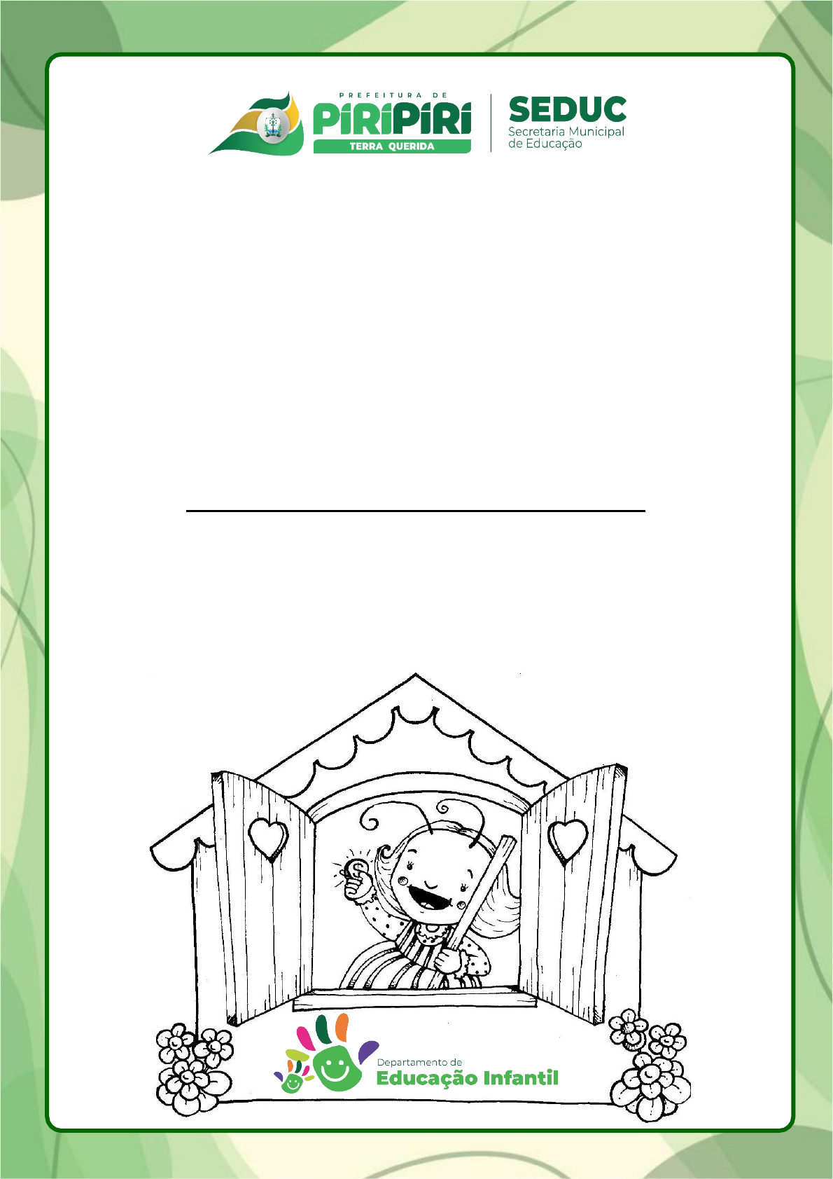 Pré 2 CADERNO 05/2023 – 24/04 a 05/05 Esse caderninho pertence a: Caderno Pedagógico ( Secretaria Municipal de Educação – Dep. de Educação Infantil Escola: Professor: Data: _ / /2023 Eu sou: ) PRÉ II - ESCUTA, FALA, PENSAMENTO E IMAGINAÇÃO – LINGUAGEM Quem quer casar Com dona Baratinha Que tem fita no cabelo E dinheiro na caixinha? 1. Fale novamente o versinho acima. 2. Encontre e circule no versinho a palavra Baratinha. 3. O que rima com a palavra que você circulou no texto? Pinte. ( Milho )Caixinha ( 01 ) 4. Observe o alfabeto em letra bastão, em seguida faça o que se pede. · Pinte de verde somente as vogais. · Escreva nos espaços abaixo as vogais em letra bastão. ( 02 ) ( Secretaria Municipal de Educação – Dep. de Educação Infantil Escola: Professor: Data: _ / /2023 Eu sou: ) PRÉ II - ESCUTA, FALA, PENSAMENTO E IMAGINAÇÃO – LINGUAGEM 1. Meu nome é: 2. Separe as letras dos números, pintando de verde as letras e de laranja os números. ( 03 ) 3. Observe o quadro abaixo com o alfabeto cursivo e pinte a letra inicial do seu nome. 4. Escreva dentro dos triângulos a letra inicial do seu nome que você pintou acima. ( 04 ) ( Secretaria Municipal de Educação – Dep. de Educação Infantil Escola: Professor: Data: _ / /2023 Eu sou: ) PRÉ II - ESCUTA, FALA, PENSAMENTO E IMAGINAÇÃO – LINGUAGEM 1. Meu nome é: 2. A letra do dia é... ( A a A a ) · Contorne a letrinha A/a com cola colorida ou cole bolinhas de papel. ( 05 ) 3. Com ajuda do seu facilitador, leia o texto abaixo. Em seguida pinte de roxo todas as letrinhas A/a que você encontrar. Ela está no astronauta e nas asas do avião na andorinha e no anel, na arara e no amigão. 4. Agora vamos treinar! A A A A ( 06 ) ( Secretaria Municipal de Educação – Dep. de Educação Infantil Escola: Professor: Data: _ / /2023 Eu sou: ) PRÉ II - ESCUTA, FALA, PENSAMENTO E IMAGINAÇÃO – LINGUAGEM 1. Meu nome é: 2. Escute a leitura do texto abaixo. A abelha A abelha trabalha Todo dia faz mel. Voa livre e ligeiro Pelo azul do céu. · Fale novamente o texto acima. · O que rima com mel? · Pinte de verde as letrinhas A/a que você encontrar. ( 07 ) 3. ( a ) ( e ) ( O ) ( A )Pinte as bolinhas que estão com as letrinhas a em suas diversas formas. ( u i a A u I a ) 4. Vamos completar as palavrinhas com a letrinha a. ( 08 ) ( r )vião r 5. Agora é sua vez! nel belh b c te b c xi ( Secretaria Municipal de Educação – Dep. de Educação Infantil Escola: Professor: Data: _ / /2023 Eu sou: ) PRÉ II – ESPAÇO, TEMPO, QUANTIDADES, RELAÇÕES E TRANSFORMAÇÕES – MATEMÁTICA 1. Recorte as imagens e cole-as nos espaços indicados. ( 09 ) 2. Observe as figuras abaixo, em seguida faça o que se pede. · Circule os desenhos que representam os objetos leves. · Faça um X no desenho que representa o animal mais pesado. ( 16 ) ( Secretaria Municipal de Educação – Dep. de Educação Infantil Escola: Professor: Data: _ / /2023 Eu sou: ) PRÉ II – ESPAÇO, TEMPO, QUANTIDADES, RELAÇÕES E TRANSFORMAÇÕES – MATEMÁTICA 1. Dona Baratinha tinha dinheiro na caixinha. Circule as figuras que representam dinheiro. 2. Observe as cédulas abaixo, e responda: · Circule a cédula que representa 10 reais. · Faça um x na cédula que representa 20 reais. 3. Represente através de desenho a cédula de 5 reais. ( Secretaria Municipal de Educação – Dep. de Educação Infantil Escola: Professor: Data: _ / /2023 Eu sou: ) PRÉ II – ESPAÇO, TEMPO, QUANTIDADES, RELAÇÕES E TRANSFORMAÇÕES – MATEMÁTICA 1. Vamos cantar! ( Fui ao mercado comprar café E a formiguinha subiu no meu pé Eu sacudi, sacudi, sacudi Mas a formiguinha não parava de subir ) O que mais podemos encontrar no mercado para comprar? Cole abaixo. 2. Quanto vale? (Obs: levando em consideração que as crianças não estão familiarizadas com valores, considere o valor fictício que ela achar que vale cada item.) R$ R$ R$ R$ R$ R$ 3. Circule o objeto que vale mais e faça um x no objeto que vale menos, de acordo com o valor que você colocou. ( Secretaria Municipal de Educação – Dep. de Educação Infantil Escola: Professor: Data: _ / /2023 Eu sou: ) PRÉ II – ESPAÇO, TEMPO, QUANTIDADES, RELAÇÕES E TRANSFORMAÇÕES – MATEMÁTICA 1. Conte as bolinhas em cada dado, escreva o numeral correspondente no tracinho e faça a soma. 2. Resolva as operações e responda pintando. ( Secretaria Municipal de Educação – Dep. de Educação Infantil Escola: Professor: Data: _ / /2023 Eu sou: ) PRÉ II – O EU, O OUTRO E O NÓS – NATUREZA E SOCIEDADE 1. Vamos conhecer os meios de comunicação. Meios de comunicação Escutamos e falamos Sempre a nos comunicar Palavras e frases voam Bem ligeiros, pelo ar! Na revista, no jornal, Na internet e no orelhão. No rádio ou na conversa E na nossa querida televisão! Os meios que utilizamos Com carinho e educação São sempre muito importantes Para a nossa comunicação! Waldirene Dias Melodia: ciranda cirandinha PRÉ II – O EU, O OUTRO E O NÓS – NATUREZA E SOCIEDADE 1. Ligue cada cena ao meio de comunicação que cada um está utilizando. · Qual desses meios de comunicação você já usou? Circule. ( Secretaria Municipal de Educação – Dep. de Educação Infantil Escola: Professor: Data: _ / /2023 Eu sou: ) ( 19 ) PRÉ II – TRAÇOS, SONS, CORES E FORMAS – ARTE CONHECENDO AS CORES SECUDÁRIAS 1. Usando tinta e pincel, pinte as figuras com as cores indicadas e veja o que acontece quando se misturam. + = amarelo vermelho laranja + = azul amarelo verde + = vermelho azul roxo PRÉ II – TRAÇOS, SONS, CORES E FORMAS – ARTE 1. Faça um lindo colorido usando as cores secundárias (verde, laranja e roxo). 1. Cubra o caminho e leve o cachorro até o osso. ( Secretaria Municipal de Educação – Dep. de Educação Infantil Escola: Professor: Data: _ / /2023 Eu sou: PRÉ II – CORPO, GESTO E MOVIMENTOS – MOVIMENTO ) ( 21 ) 1. Leve cada animal ao seu alimento, cobrindo o caminho. SEDUC Departame