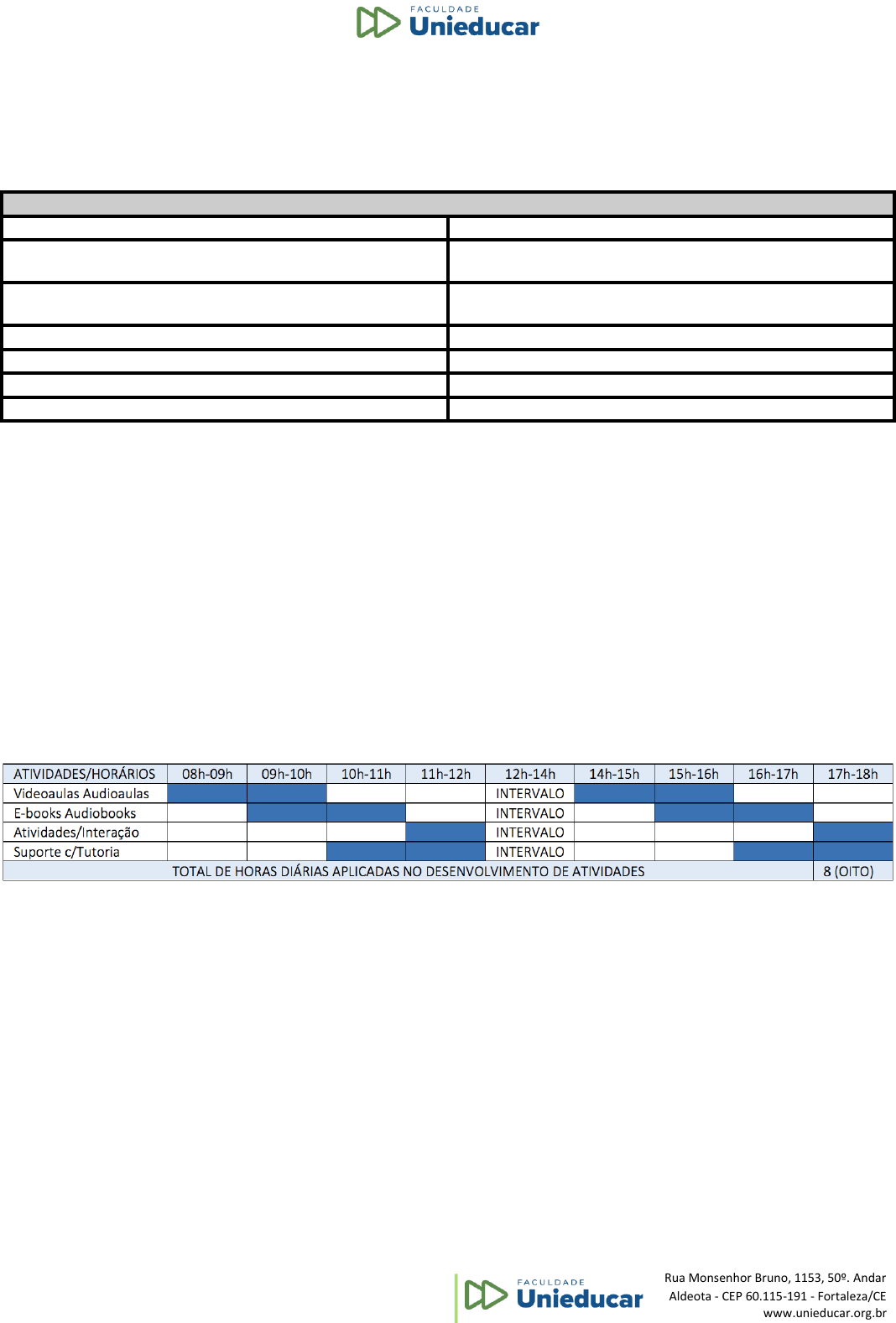 Rua Monsenhor Bruno, 1153, 50º. Andar Aldeota - CEP 60.115-191 - Fortaleza/CE www.unieducar.org.br PROJETO PEDAGÓGICO – PROGRAMA DE QUALIFICAÇÃO PROFISSIONAL INSTITUIÇÃO DE ENSINO FACULDADE Faculdade Unieducar REGISTRO MEC IES Código e-MEC No. 24490 – Portaria Credenciamento MEC No. 958/2022 MANTENEDORA Unieducar Inteligência Educacional Ltda – CNPJ 05.569.970/0001-26 REGISTRO MEC SISTEC 43970 – SISTEC - Parecer CEE-CE No. 305/2021 REGISTRO SICAF – PJ 170038 REGISTRO ABED 5.139 – Categoria Institucional REGISTRO CFA/CRA PJ – 3457 – CE Declaramos, a pedido do(a) interessado(a), e para fins de prova junto ao respectivo órgão empregador, que o curso abaixo citado encontra-se disponível para matrícula, como programa de Extensão Universitária / Capacitação, junto à Faculdade Unieducar, com data para início e término a definir, conforme carga horária assinalada. METODOLOGIA: O conteúdo dos cursos de Extensão Universitária pode ser disponibilizado conforme a evolução do programa, e em função de sua correspondente carga horária. Os objetos instrucionais são apresentados em uma interface diagramada de fácil navegação no Ambiente Virtual de Aprendizagem – AVA. O acesso às videoaulas e demais objetos instrucionais, além de materiais extras disponíveis na biblioteca (e-books), exercícios, audioaulas e videoteca é bastante intuitivo e proporciona uma experiência de interatividade no processo de aprendizagem a distância. Os programas preveem a participação do aluno em atividades de interação no AVA. Tais atividades - passíveis de serem comprovadas, podem ocorrer por meio de conversação em tempo real, fóruns, videoconferências, jogos, aulas participativas, trabalhos em equipe, discussões, dinâmicas de grupo, estudos de caso ou simulações. CRONOGRAMA DE ATIVIDADES DA AÇÃO DE DESENVOLVIMENTO: O programa de Extensão Universitária / Capacitação prevê a participação ativa do inscrito nas diversas atividades propostas. O aluno matriculado em um programa de capacitação deve cumprir rigorosamente com o cronograma de atividades a seguir detalhado, aplicando 8 (oito) horas diárias no desenvolvimento das seguintes ações durante todo o período de acesso ao conteúdo: SINCRONICIDADE: Os programas de Extensão Universitária / Capacitação são caracterizados como síncronos, a partir do momento da inscrição, com a indicação por parte do aluno, da data que iniciará, tendo em vista que passa a ter as datas de início e término definidas. TUTORIA E FORMAS DE INTERAÇÃO: Os programas de Extensão Universitária / Capacitação recebem suporte de uma tutoria especificamente designada para acompanhamento do rendimento dos alunos. A interação é realizada online por meio da plataforma AVA. A tutoria é desenvolvida de modo proativo e consiste na assistência didática, compartilhamento de informações, troca de experiências, estímulo ao cumprimento dos exercícios propostos e cooperação visando o melhor aproveitamento dos conteúdos estudados. A tutoria é desempenhada pelo corpo de tutores da Faculdade Unieducar e a interação entre tutores, estudantes e a coordenação do curso é exclusivamente online, onde são agendadas ações síncronas em outras modalidades (fóruns, videoconferências, chats etc.). A tutoria efetiva encaminhará módulos de conteúdos com atividades avaliativas semanalmente, para que o estudante possa complementar os estudos quanto ao tema desenvolvido no curso. AVALIAÇÃO/CERTIFICAÇÃO: Nos programas de Extensão Universitária / Capacitação a avaliação é qualitativa e múltipla. A nota da avaliação final pode contemplar fatores e formas de avaliação diversas, tais como a elaboração de redações durante e ao término do programa, bem como a frequência e participação em eventos de conversação em tempo real, nas quais são observadas as contribuições de ordem teórica e prática, além de outras modalidades de avaliação individual, bem, como: a realização de atividade Rua Monsenhor Bruno, 1153, 50º. Andar Aldeota - CEP 60.115-191 - Fortaleza/CE www.unieducar.org.br avaliativa ao término de cada aula ou módulo de conteúdo e a realização de atividade avaliativa final, com pontuação, ao término da capacitação. A geração do certificado eletrônico é condicionada à verificação de aproveitamento mínimo de 70% nas atividades de avaliação. Todos os cursos contam com ferramenta de avaliação de conteúdo (aprendizagem) e institucional, que somente é disponibilizada após transcorrido o prazo mínimo correspondente à carga horária certificada. ORGANIZAÇÃO CURRICULAR: Os programas de Extensão Universitária / Capacitação apresentam organização curricular elaborada a partir de projetos pedagógicos específicos, elaborados por uma equipe pedagógica multidisciplinar, que acompanha o projeto, desenvolvimento e atualização de conteúdo. TECNOLOGIA DE EAD/E-LEARNING: Após a elaboração dos conteúdos é realizada a migração para o Ambiente Virtual de Aprendizagem - AVA, o que demanda a aplicação de tecnologias de Design Instrucional adequadas aos assuntos abordados. MATERIAIS DIDÁTICOS: Os conteúdos programáticos dos cursos de Extensão Universitária / Capacitação são lastreados em materiais didáticos constantemente atualizados. Dentre os objetos de aprendizagem podem ser disponibilizados videoaulas; livros eletrônicos (e-books); audioaulas; desafios; exercícios e testes; além de conteúdos de fontes externas, a partir de material relacionado. INTERAÇÃO E SUPORTE ADMINISTRATIVO: Os programas de Extensão Universitária / Capacitação contam – além do suporte de tutoria especializada - com uma infraestrutura de apoio que prevê a interação entre alunos e alunos; alunos e professores/tutores; e alunos e pessoal de apoio Administrativo. Essa interação é garantida por meios eletrônicos com registros de chamados e/ou por meio telef