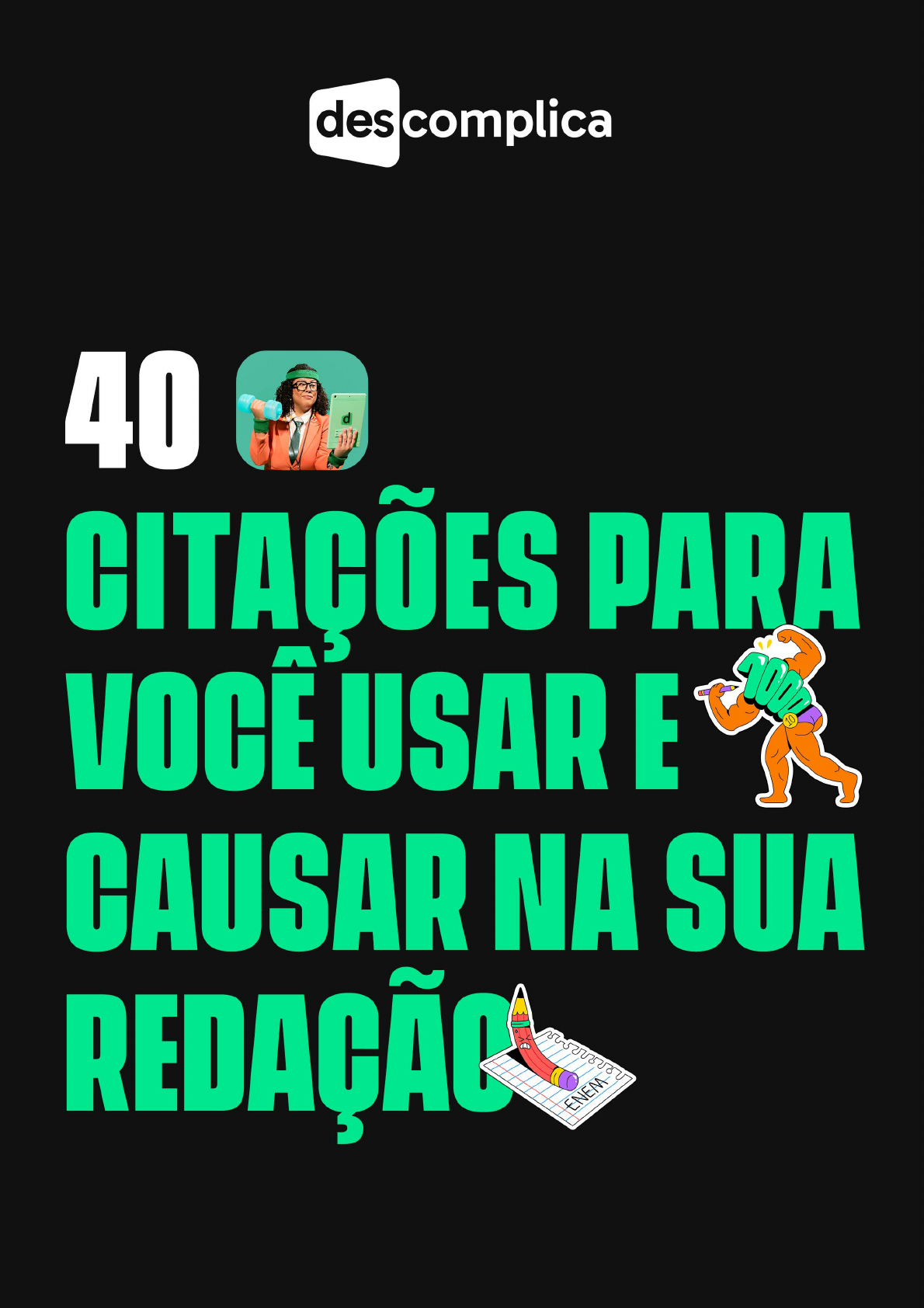 Ao pensar em redação de vestibular, é muito importante garantir os conhecimentos externos pertinentes de cada tema para desenvolver melhor a argumentação dissertativa. Pensando nisso, selecionamos algumas citações famosas e importantes para você usar na sua redação e garantir nota máxima! Lembrando que elas podem aparecer em qualquer parte do texto, seja na introdução, desenvolvimento ou conclusão. Entretanto, é preciso tomar cuidado com os excessos. Os trechos destacados não podem estar em grande quantidade, além de precisarem de um toque de autoria e pontos de vista próprios. Em outras palavras, é esperado pela banca de correção a diversidade de conhecimentos externos (citações, fatos históricos, dados estatísticos, filmes, etc), a fim de que suas aparições no texto ocorram de maneira produtiva. Também é muito importante prestar atenção se a citação realmente está ligada com sua abordagem, para que seu texto não fique incoerente. Por fim, não se esqueça: quando apresentar a frase de modo direto, ou seja, da mesma forma que a original, é importante que esteja entre aspas; caso haja o intuito de apresentar apenas sua ideia nuclear (também conhecida como forma indireta), ela pode ser escrita sem as aspas e de modo parafraseado, com a interpretação de quem escreve. Dividimos as citações, desse modo, por eixos, que podem servir para diferentes temas na hora da prova – tudo depende da sua interpretação sobre cada conceito. Um compilado de ideias que, seguido a uma exemplificação de como encaixá-las em diferentes propostas, auxiliarão o processo da produção de escrita. Bons estudos e boa prática! Introdução 1 “Eduquem as crianças e não será necessário castigar os homens.” — Pitágoras, filósofo e matemático grego (570 a. C. – 490 a.C) “A boa educação é moeda de ouro. Em toda a parte, tem valor.” — Padre Antônio Vieira, religioso e filósofo português (1608 – 1697) “O ser humano é aquilo que a educação faz dele.” — Immanuel Kant, filósofo prussiano (1724 – 1804) “A verdadeira educação é aquela que vai ao encontro da criança para realizar a sua libertação.” — Maria Montessori, educadora italiana (1870 – 1952) “A educação é a arma mais poderosa que você pode usar para mudar o mundo.” — Nelson Mandela, advogado e ex-presidente da África do Sul (1918 – 2013) “Se a educação sozinha não transforma a sociedade, sem ela tampouco a sociedade muda.” — Paulo Freire, educador brasileiro (1921 – 1997) Educação As citações podem ser abordadas em temas que discutam os sistemas educacionais, bem como suas falhas e necessidades de modificações. Como, por exemplo, na prova do ENEM de 2017: Desafios para a formação educacional de surdos no Brasil. 2 Sociedade e comportamento “A humildade é a única base sólida de todas as virtudes. ” — Confúcio, pensador e filósofo chinês (551 a.C – 479 a.C) “A natureza fez o homem feliz e bom, mas a sociedade deprava-o e torna-o miserável. ” — Jean Jacques Rousseau, filósofo genebrino (1712 – 1778) “De tudo que existe, nada é tão estranho como as relações humanas, com suas mudanças, na sua extraordinária irracionalidade. ” — Virginia Woolf, escritora britânica (1882 – 1941) “O homem está condenado a ser livre, pois, uma vez lançado ao mundo, ele é responsável por tudo o que faz. ” — Jean Paul Sartre, filósofo e crítico francês (1905 – 1980) É possível utilizar esses excertos em temáticas que abordem a relação do indivíduo com a sociedade atual, como a proposta da UERJ 2011: A ocorrência, ou não, de um empobrecimento das formas atuais de comunicação entre as pessoas. “Nem todo mundo tem a mesma cor, a mesma língua ou os mesmos costumes, mas todos têm o mesmo coração, o mesmo sangue e a mesma necessidade de amor” — Josephine Baker, cantora e dançarina norte-americana (1906 – 1975) “O Brasil, último país a acabar com a escravidão, tem uma perversidade intrínseca na sua herança, que torna a nossa classe dominante enferma de desigualdade, de descaso. ” — Darcy Ribeiro, antropólogo e político brasileiro (1922 – 1997) Você pode utilizar essas citações em temas que abordem a violência, sobretudo com etnias, além de desigualdades raciais. Como, por exemplo, na prova da Unesp de 2015: O legado da escravidão e o preconceito contra negros no Brasil. 3 Juventude “O conhecimento imposto à força não pode permanecer na alma por muito tempo.” — Platão, filósofo e matemático grego (428 a.C – 348 a. C) “Não corrigir nossas falhas é o mesmo que cometer novos erros. ” — Confúcio, pensador e filósofo chinês (551 a.C – 479 a.C) “O que deve caracterizar a juventude é a modéstia, o pudor, o amor, a moderação, a dedicação, a diligência, a justiça, a educação. São estas as virtudes que devem formar o seu caráter. ” — Sócrates, filósofo ateniense. (470 a.C. – 399 a.C) “Temos de nos tornar a mudança que queremos ver.” — Mahatma Gandhi, advogado, nacionalista e anticolonialista indiano (1869 – 1948) “Você tem que agir como se fosse possível transformar radicalmente o mundo. E você tem que fazer isso o tempo todo. “ — Angela Davis, filósofa socialista estadunidense (1944) “Quando o mundo todo está silencioso, até uma voz se torna poderosa” — Malala Yousafzai, ativista paquistanesa. (1997) As seis citações presentes no eixo podem retratar a percepção do jovem como o agente transformador da sociedade. Sendo assim, podem ser utilizadas em propostas que visam essa mudança, como a UERJ 2012: É possível, para a juventude de hoje, alterar o futuro? 4 Meio ambiente e Tecnologia “Tornamo-nos deuses na tecnologia, mas permanecemos macacos na vida.” — Arnold Toynbee, historiador britânico (1889 – 1975) “A economia da educação torna-se refém da tecnologia da informação. De intensiva de tra