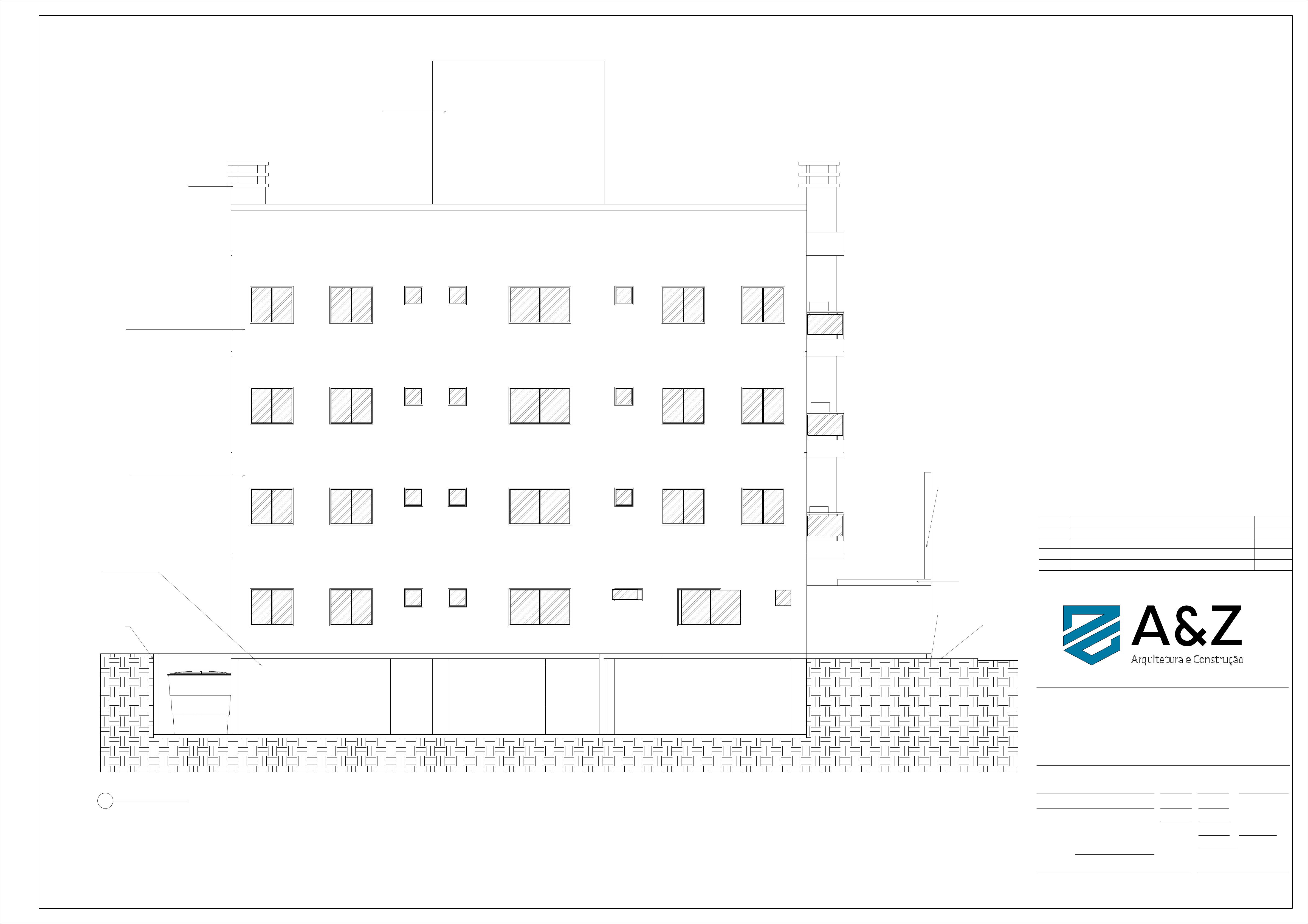 Passeio público será executado em conformidade com a NBR9050 e L.C. 541/14 Divisa do terreno Divisa do terreno Esquadrias em alumínio e vidro Parede em alvenaria com pintura Garagem Paredes reservatório em alvenaria com pintura Saída da churrasqueira com detalhes na alvenaria Poste padrão de energia Abrigo do gás Rua Rua Princesa Izabel | 2070E - Jardim America| CEP 89803-442 - Chapecó - SC | Fone/Fax: (049) 3328-6279 e-mail: aezconstrutora@gmail.com ID. DESCRIÇÃO DATA APRESENTAÇÕES/REVISÕES/ALTERAÇÕES Reservado para para carimbo aprovação Projeto Obra Local Unidade Territorial Área Responsável técnica Lote A. Terreno Quadra Índice Aproveitamento Taxa de Permeabilidade Cliente Conteúdo Data Projeto ARQ CPF/CNPJ Alessandra Zuanazzi Arquiteta e Urbanista CAU: A172616-1 Desenho Taxa de Ocupação Tamanho A1 A&Z Arquitetura e Construção - Todos os direitos reservados - Proibida a cópia e reprodução Fachada Leste Projeto Edificação Multifamiliar Odair José Cossa Bruna Lopes Faenello 21/06/2024 12 ESCALA 1 : 50 Fachada Leste _1 Projeto Edificação Multifamiliar Rua Surucuá S/N Bairro: Efapi Chapecó - SC CEP: 89809-619 939.164.009-59 UM 01 2706 390,00m² 1.063,38m² 54,01 1,69 39,31% Folhas (Sheet) 01 - Planta de Locação e Situação 02 - Planta de cobertura e Reservatório Superior 03 - Planta Baixa Subsolo 04 - Planta Baixa Térreo 05 - Planta Baixa Tipo - 3 Vezes 06 - Corte AA 07 - Corte BB 08 - Corte CC 09 - Corte DD 10 - Fachada Norte 11 - Fachada Oeste 12 - Fachada Leste 13 - Fachada Sul