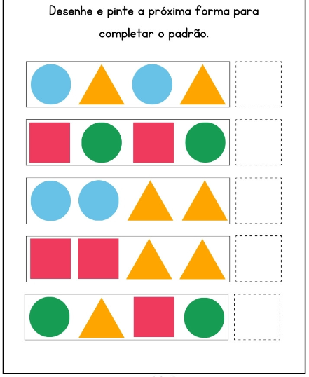 Desenhe e pinte a próxima forma para completar padrão.