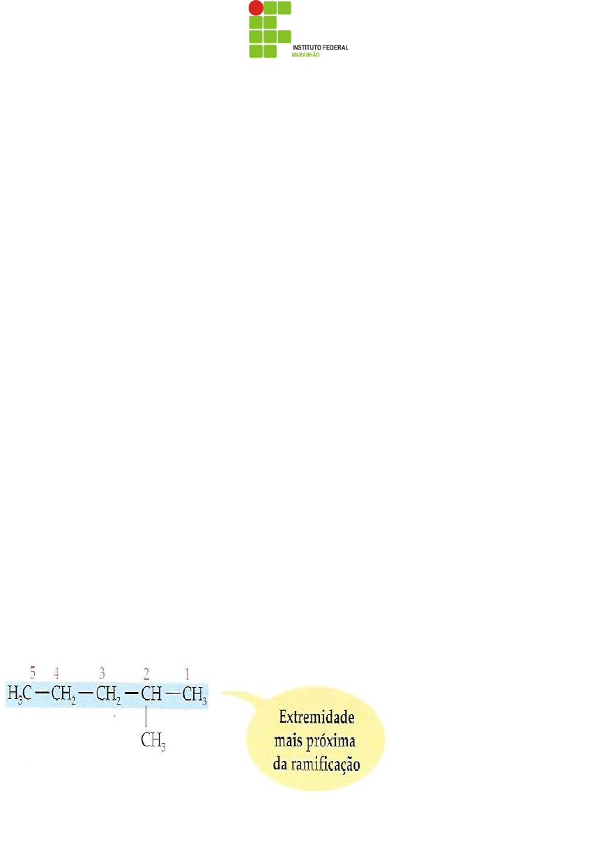 INSTITUTO FEDERAL DE EDUCAÇÃO, CIÊNCIA E TECNOLOGIA DO MARANHÃO CENTRO DE REFERÊNCIA TECNOLÓGICA CURSO: CIÊNCIAS BIOLÓGICAS COMPONENTE CURRICULAR: QUÍMICA ORGÂNICA PROFESSORA: PASTORA PEREIRA LIMA NETA ATIVIDADE UNIDADE I 01. Dado o nome oficial dos hidrocarbonetos a seguir, desenhe a sua fórmula estrutural. a) etano b) propano c) eteno d) etino e) butano f) pentano g) propino h) but-1- eno i) but-2-eno j) but-1-ino k) but-2-ino l) buta-1,2-dieno m) hexa-1,3,5-trieno n) ciclopropano o) ciclobutano p) ciclopentano q) ciclobuteno r) ciclopenteno s) cicloexa-1,3,5-trieno t) cicloocta-1,4-dieno 02. Escreva o nome oficial para cada um dos hidrocarbonetos a seguir, nos quais a cadeia principal já está identificada (em azul) e numerada. a) b) c) d) e) 02. Escreva o nome oficial para cada um dos hidrocarbonetos a seguir. I. II.