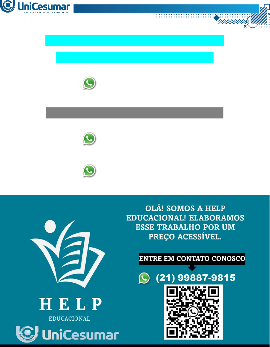 MAPA – SSOC – QUESTÃO SOCIAL NA CONTEMPORANEIDADE - 53_2024 (21) 99887-9815 ASSESSORIA NOS SEUS TRABALHOS (21) 99887-9815 (21) 99887-9815 Saudações, estudante! Esta é a nossa atividade M.A.P.A. da disciplina de Questão Social na Contemporaneidade, vamos aproveitar os conhecimentos adquiridos e perfazer uma experiência imersiva? O objetivo da atividade será o de desenvolver uma compreensão profunda e crítica sobre a violência doméstica, visando capacitá-lo, como futura(o) assistente social, para identificar, analisar e propor intervenções eficazes. Esta atividade visa conectar teoria e prática, utilizando a pesquisa de notícias, reportagens e imagens para fundamentar a criação de um relatório e uma campanha de conscientização. Para iniciarmos, imagine que que você é um(a) assistente social recém formado(a) e é chamado para atender uma demanda trazida por Mariana. Meio apreensivo(a) com seu primeiro atendimento, respira fundo e vai ao atendimento e é quando se depara com a seguinte situação: "O Silêncio de Mariana" Mariana era uma mulher de 34 anos, mãe de dois filhos, Lucas de 10 anos e Sofia de 7. Ela vivia em uma cidade pequena e trabalhava como professora em uma escola pública local. Para a comunidade, Mariana era uma mulher forte e dedicada, sempre preocupada com o bem-estar de seus alunos e ativa em atividades comunitárias. No entanto, o que poucos sabiam era que, por trás de sua aparência serena e de seu sorriso caloroso, Mariana vivia um pesadelo diário. Em casa, Mariana era vítima de violência doméstica. Seu marido, Roberto, que no início do relacionamento era carinhoso e atencioso, havia se tornado agressivo e controlador com o passar dos anos. O abuso começou de forma sutil, com críticas constantes e tentativas de controlar suas ações e amizades. Com o tempo, as agressões verbais evoluíram para agressões físicas. Mariana sentia-se presa e com medo. Tentou falar com sua família, mas foi desencorajada a "não criar problemas" e a "manter a família unida". As amigas também não percebiam os sinais, pois Mariana escondia bem as marcas físicas e emocionais. Ela também tinha medo de que, se denunciasse Roberto, ele se vingasse de alguma forma, tanto nela quanto nos filhos. Certo dia, depois de uma noite particularmente violenta, Mariana decidiu que não poderia mais viver daquele jeito. Ela lembrou de uma reportagem que havia lido sobre mulheres que conseguiram sair de relacionamentos abusivos com a ajuda de assistentes sociais e programas de apoio. Essa lembrança foi o impulso que ela precisava. No dia seguinte, com muito medo, mas determinada, Mariana procurou a delegacia da mulher em sua cidade e contou sua história. Foi acolhida por uma assistente social chamada Ana, que a ouviu com empatia e ofereceu suporte imediato. Ana ajudou Mariana a encontrar um abrigo temporário para ela e seus filhos e explicou sobre as medidas protetivas que poderiam ser tomadas contra Roberto. Mariana também foi encaminhada para um grupo de apoio, onde conheceu outras mulheres que haviam passado por experiências semelhantes. Com o apoio contínuo de Ana e das novas amigas, Mariana começou a reconstruir sua vida, descobrindo sua força interior e a importância de não se calar diante da violência. Reflexão A história de Mariana é uma representação fictícia, mas realista, das dificuldades enfrentadas por muitas mulheres em situação de violência doméstica, uma das expressões da questão social. A história destaca a importância do papel dos assistentes sociais e de programas de apoio que ajudam a romper o ciclo de violência. Questões para a construção do MAPA: Etapa 01 - Analisando a história 1- Identificação dos Sinais: Quais foram os primeiros sinais de violência que Mariana enfrentou? Por que é importante identificar esses sinais precocemente? 2- Rede de Apoio: Como a assistente social Ana ajudou Mariana? Qual a importância de uma rede de apoio para vítimas de violência doméstica? 3- Desafios e Medos: Quais foram os principais desafios e medos de Mariana ao decidir procurar ajuda? Como esses desafios podem ser superados? 4- Papel do Assistente Social: Como os assistentes sociais podem intervir eficazmente em casos de violência doméstica? Quais habilidades e conhecimentos são essenciais para esse trabalho? ETAPA 2: Pesquisa e Coleta de Material 1- Pesquise 01 reportagem sobre um caso recente de violência doméstica (pelo menos dos últimos 2 anos). Utilize fontes confiáveis como jornais renomados, portais de notícias, revistas acadêmicas, OSC s e órgãos governamentais. 2- Análise Crítica: Para a reportagem escolhida você deve deve responder - Quais foram as principais informações apresentadas - Teve dados estatísticos mencionados? Quais? - Quais foram as principais causas e consequências destacadas? - Houve menção a políticas públicas ou ações de intervenção? Se sim, quais? - Coloque o título completo da reportagem, fonte, a data e o link da reportagem no campo destinado para esta etapa da atividade. Em seguida, escreva sua análise crítica. DICAS DE OURO: - Leia com atenção a proposta - Assista o Vídeo explicativo da atividade - Baixe o formulário padrão da atividade MAPA e siga as orientações - Planeje com antecêdencia a elaboração, assim, se você tiver dúvidas a mediadora da disciplina poderá ajudá-lo(a). Boa atividade! OLÁ! SOMOS A HELP EDUCACIONAL! ELABORAMOS ESSE TRABALHO POR UM PREÇO ACESSÍVEL. ENTRE EM CONTATO CONOSCO (21) 99887-9815 image1.png image2.png image3.png