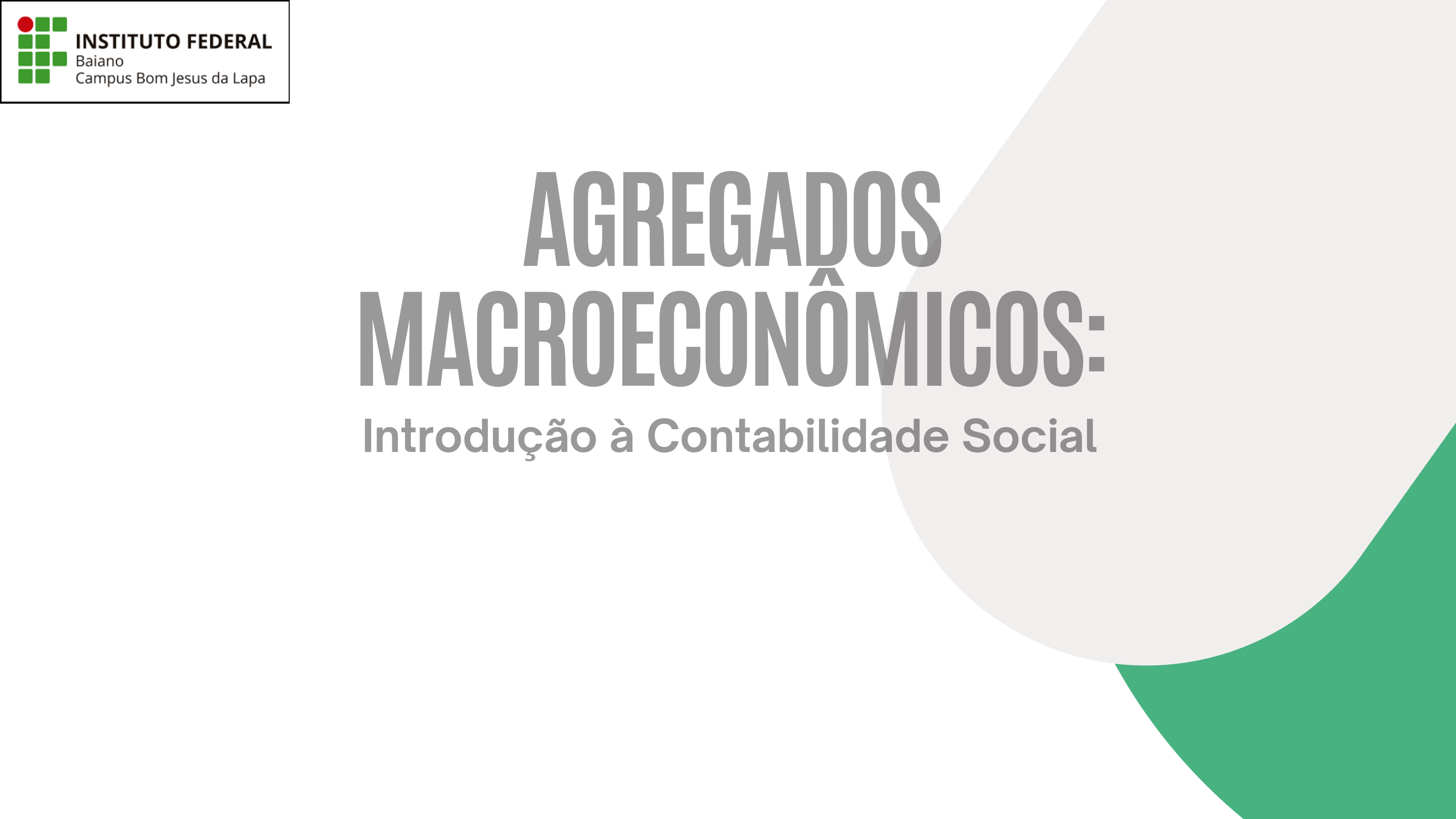 AGREGADOSAGREGADOS MACROECONÔMICOS:MACROECONÔMICOS: Introdução à Contabilidade SocialIntrodução à Contabilidade Social Docente: Discentes:Arnóbio Junior e Thiago Souza Ivna Herbenia Curso: Engenharia Agronômica Período: 2023.2 Instituto Federal de Educação, Ciência e Tecnologia Baiano Campus Bom Jesus da Lapa Introdução: Objetivo: Fornecer uma visão geral dos principais agregados macroeconômicos e introduzir os conceitos de contabilidade social. Definição de Agregados Macroeconômicos: Agregados Macroeconômicos: Medidas que representam o desempenho econômico de um país. Exemplos incluem o Produto Interno Bruto (PIB), Produto Nacional Bruto (PNB), renda nacional, entre outros. Importância: Esses agregados são fundamentais para analisar e comparar o desempenho econômico ao longo do tempo e entre diferentes economias. Sistemas de Contabilidade Social Definição: Um sistema contábil que trata o país como uma grande empresa que produz um único produto, o produto nacional bruto. Principais Sistemas: Sistema de Contas Nacionais Matriz de Relações Intersetoriais Método: Utiliza o método das partidas dobradas, discriminando as transações dos principais agentes macroeconômicos: famílias, empresas, governo e setor externo Nas partidas dobradas cada transação é registrada em duas partes: Débito: A entrada de valor em uma conta. Crédito: A saída de valor de outra conta. Sistema de Contas Nacionais Sistema de Contas Nacionais Exemplos de Transações: Os sócios investem R$ 20.000 na Empresa A: Débito: Caixa (+R$ 20.000) Crédito: Capital Social (+R$ 20.000) Sistema de Contas Nacionais Exemplos de Transações: Empresa ASócios R$ 20.000 R$ 20.000 CRÉDITO DÉBITO ORIGEM APLICAÇÃO Sistema de Contas Nacionais Transações Consideradas: Somente transações com bens e serviços finais, excluindo transações com insumos ou matérias-primas que foram utilizados na produção de bens e serviços finais. Isso evita o erro de contagem dupla Matriz de Relações Intersetoriais Também conhecida como: Matriz insumo-produto ou matriz de Leontief. Diferenciação: Inclui transações intermediárias, permitindo analisar as relações econômicas entre os vários setores de atividade. Exigências: Requer dados mais detalhados, geralmente obtidos em censos econômicos realizados a cada cinco anos. Assim, por questões operacionais, o sistema de contas nacionais é o mais adotado no mundo todo, permitindo obter mais rapidamente estimativas anuais dos agregados macroeconômicos. E por isso ao longo da apresentação vamos usar o sistema de contas nacionais. Princípios Básicos das Contas Nacionais Transações com Bens e Serviços Finais: Apenas transações com bens e serviços finais são consideradas. Produção Corrente: Somente a produção do próprio período é medida, ou seja produções anteriores não são consideradas. Fluxo de Transações: Definidas ao longo de um período específico de tempo (normalmente um ano), indica se a produção aumenta ou diminui. Princípios Básicos dos Contas Nacionais Neutralidade da Moeda: Utilizada apenas como unidade de medida e instrumento de troca. Exclusão de Transações Financeiras: Transações puramente financeiras não são incluídas, pois não representam diretamente acréscimos ao produto real da economia. Análise da Economia de Dois Setores Setores Considerados: Inicialmente, apenas empresas e famílias. Fluxo Circular de Renda: Análise do fluxo contínuo entre os agentes macroeconômicos. Análise da Economia de Dois Setores Óticas de Análise: Ótica do Produto: Medida pela produção e venda de bens e serviços finais. Ótica da Despesa: Medida pelos gastos dos agentes econômicos com o produto nacional. Ótica da Renda: Medida pela remuneração dos fatores de produção (salários, juros, aluguéis e lucros). Análise da Economia de Dois Setores Produto nacional (PN) é o valor de todos os bens e serviços finais, medidos a preços de mercado, produzidos num dado período de tempo (ótica do Produto): PRODUTO NACIONAL em que: PN = produto nacional; pi = preço unitário dos bens e serviços finais qi = quantidades produzidas dos bens e serviços finais ∑ = somatório ou soma Análise da Economia de Dois Setores DESPESA NACIONAL Despesa nacional (DN) é o gasto dos agentes econômicos com o produto nacional. Revela quais são os setores compradores do produto nacional (ótica da despesa). A fórmula mais completa, que inclui os demais agentes de despesa (empresa, governo e setor externo), que discutiremos adiante, é a seguinte: em que: C = despesas das familias com bens de consumo I = despesas das empresas com investimentos G = despesas do governo X - M = despesas líquidas do setor externo (sendo X = exportações ie M = importações). Análise da Economia de Dois Setores RENDA NACIONAL Renda nacional (RN) é a soma dos rendimentos pagos aos fatores de produção no período: Análise da Economia de Dois Setores Embora o produto nacional, a despesa nacional e a renda nacional sejam conceitos diferentes, em uma economia, o total gasto (despesa) em bens e serviços deve ser igual ao valor dos bens e serviços produzidos (produto), que por sua vez é igual ao total de rendimentos gerados pela produção desses bens e serviços (renda). DESPESA = PRODUTO = RENDA DESPESA ($ 390) CONSUMIDOR PRODUTOS ($ 390) MERCADO RENDA ($ 390) EMPRESA Análise da Economia de Dois Setores EXEMPLO Funcionários e outras despesas Lucros + Custos Análise da Economia de Dois Setores EXEMPLO DESPESA ($$$) = PRODUTO ($$$) = RENDA ($$$) GASTOS BENS E SERVIÇOS Lucro Juros Aluguéis Salários Análise da Economia de Dois Setores Valor adicionado É o valor que cada etapa do processo de produção adiciona a um produto. Em outras palavras, é a renda que cada setor produtivo contribui ao produto final. É mais fácil e seguro obter esse valor usando notas fiscais das transações entre empresas, em vez de depender das declara