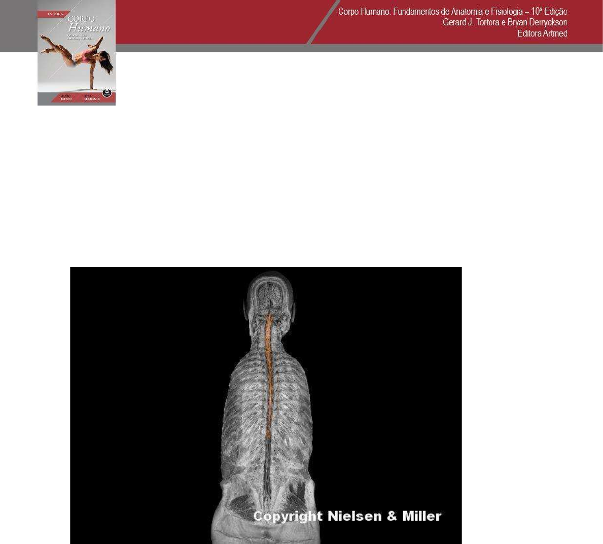 ANATOMIA REAL Anatomia do Sistema Nervoso 1) Identifique o órgão em destaque e cite suas principais funções. Medula espinhal. Condução de estímulos aferentes e eferentes do sistema nervoso central, controle dos movimentos e processamento de informações sensoriais. _____________________________________________________________ 2) Identifique a estrutura em destaque e indique sua função. Raiz ventral do nervo espinhal. Responsáveis pela inervação motora, somática e visceral _____________________________________________________________ 3) Identifique a estrutura em destaque e indique sua função. Raiz dorsal do nervo espinhal, responsável pela inervação sensitiva somática e visceral _____________________________________________________________ 4) Identifique a estrutura em destaque. Medula, na sua porção final, incluindo cone medular, filamento terminal e o começo da cauda equina. _____________________________________________________________ 5) Identifique a substância em destaque e a sua composição. Substancia cinzenta da medula. Corpos dos neurônios, axônios amielínicos e células da glia. _____________________________________________________________ 6) Identifique a substância em destaque e a sua composição. Substancia branca da medula, axônios e células da glia _____________________________________________________________ 7) Identifique a meninge em destaque. Dura-máter _____________________________________________________________