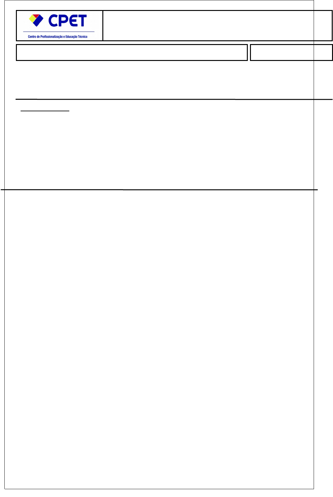 Osciloscópio (2024) Aluno(a):Willian Wiquates Chiquito CPF: 094.008.479-12 Data: 05/08/2024 Atividade Prática Final INSTRUÇÕES: · Esta Atividade contém questões totalizando 10 (dez) pontos; · Você deve preencher dos dados no Cabeçalho para sua identificação: · Nome /CPF/Data · As respostas devem ser digitadas abaixo de cada pergunta; · Ao terminar salve o arquivo no formato .PDF ou .DOCX; · Envio o arquivo pelo sistema no local indicado; · Em caso de dúvidas consulte o seu Tutor. · ATENÇÃO O NÃO PREENCHIMENTO DOS DADOS ACARRETARÁ NA ANULAÇÃO DA ATIVIDADE. Questão 1: Relacione a segunda coluna com a primeira: Chave seletora de ganho vertical (a) Chave de seleção CA/CC (b) Entrada de sinal vertical (c) Posição vertical (d) Chave seletora de ganho horizontal (e) 1- Seleciona o tipo da forma de onda 2 - Conecta a ponta de prova 3- Varia o tempo de deslocamento 4 - Movimenta a projeção 5- Aumenta ou diminui a amplitude do Sinal. A-5: A chave seletora de ganho vertical aumenta o diminui a amplitude do sinal; B-1: A chave de seleção CA/CC seleciona o tipo de forma de onda, na realidade seleciona se a componente de corrente continua passa ou não; C-2: A entrada de sinal vertical é um conector no qual ligamos uma ponta de prova para o sinal de varrido vertical no modo XY; D-4: O controle de posição vertical movimenta verticalmente a projeção; E-3: A chave de seleção de ganho horizontal varia o tempo de deslocamento. Questão 2: informe o tempo total decorrido e amplitude da onda no primeiro ms ? R: O tempo total decorrido em 1 ms é simplesmente 1 ms (ou 0,001 segundos) Questão 3) Para responder essa questão COPIE O LINK ABAIXO E COLE NO SEU NAVEGADOR OU SEGURE CTRL E CLIQUE NO LINK : https://pzdsp.com/elab/ LEIA E SIGA O PASSO A PASSO PARA RESPONDER. Coloque a frequência no gerador de funções em 500hz, coloque o offset 1v e a amplitude em 5v e utilize o osciloscópio para fazer esta medição, ajuste a onda para melhor visualização do período e tire um “prtSc” e envie abaixo. Atenção, a questão será somente valida se retirar o prtsc da tela com data e a forma de onda igual a que está abaixo. Atividade Prática Serviços de Turismo e Viagens - GUI image1.png image2.png image3.jpeg image4.png