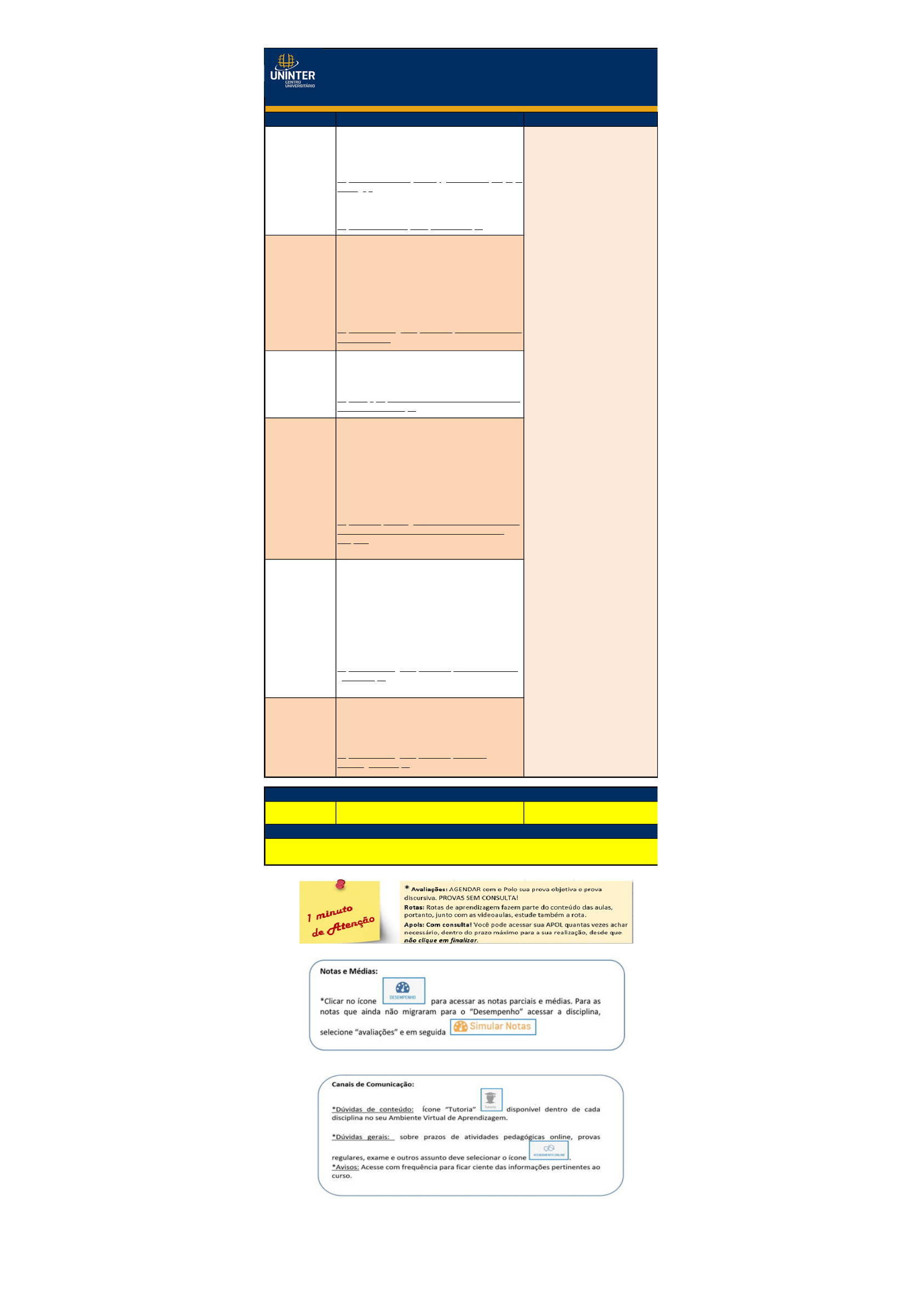 SEMANA O QUE ESTUDAR APOL AVALIAÇÕES REGULARES 7ª, 8ª e 9ªTodos os materiais indicados acima* Provas Objetivas, Provas Discursivas AVALIAÇÕES DE RECUPERAÇÃO Segunda Chamada, Substitutiva, Exames e Recuperação de Conceito Pago(RCP) - Consulte o Atendimento Online 1ª semana 2ª semana 3ª semana 4ª semana 5ª semana 6ª semana BONS ESTUDOS! A TUTORIA AULA 4 - Ler o texto da aula 4 + assistir a video aula 4 + Leitura do capítulo BIOÉTICA E O DIREITO HUMANO À ALIMENTAÇÃO ADEQUADA do livro: ROSANELI, C. F. Contexto, conflitos e escolhas em alimentação e bioética. Curitiba: PUCPRess, 2016. https://cip.pucpr.br/eventos/livraria/bioetica/contextos_ conflitos_e_escolhas.pdf e BRASIL. Conselho Nacional de Segurança Alimentar e Nutricional. Direito Humano à Alimentação Adequada. 2017. Disponível em: http://www4.planalto.gov.br/consea/acessoainformacao/ institucional/conceitos/direitohumano-aalimentacao- adequada AULA 5 - Ler o texto da aula 5 + assistir a video aula 5 + Ler a Lei: BRASIL. Lei nº 6.583, de 20 de outubro de 1978. Cria os Conselhos Federal e Regionais de Nutricionistas, regula o seu funcionamento e dá outras providências. Disponível em: http://www.planalto.gov.br/ccivil 03/Leis/1970 - 1979/L6583.htm e CONSELHO FEDERAL DE NUTRICIONISTAS. Resolução CFN nº 599 de 25 de fevereiro de 2018. Aprova o Código de Ética e de Conduta do Nutricionista e dá outras providências. Brasília, 2018. Disponível em: http://www.cfn.org.br/wpcontent/uploads/2018/04/codi go-de-etica.pdf AULA 1 - Assistir a video aula 1 + Ler os artigos: ANDRADE, M. C. Josué de Castro: o homem, o cientista e seu tempo. Estudos Avançados. vol. 11, n. 29, p. 169-194, 1997. Disponível em: https://www.scielo.br/j/ea/a/vjtgZCTNnGF7TZqLC7yVQW H/?lang=pt A. G. Josué de Castro e a Geografia da Fome no Brasil. Cadernos de Saúde Pública. Rio de Janeiro, v. 24, n. 11, p. 2710-2717, 2008. Disponível em: http://www.scielo.br/pdf/csp/v24n11/27.pdf AULA 2 - Assistir a video aula 2 + Leitura da resolução: CONSELHO FEDERAL DE NUTRICIONISTAS. Resolução CFN nº600, de 25 de fevereiro de 2018. Dispõe sobre a definição das áreas de atuação do nutricionista e suas atribuições, indica parâmetros numéricos mínimos de referência, por área de atuação, para a efetividade dos serviços prestados à sociedade e dá outras providências. Brasília, 2018. Disponível em: http://www.cfn.org.br/wpcontent/uploads/resolucoes/Re s_600_2018.htm AULA 3 - Assistir a video aula 3 + Ler as páginas de 81 a 100 do livro: ROSANELI, C. F. Contexto, conflitos e escolhas em alimentação e bioética. Curitiba: PUCPRess, 2016. Disponível em: https://cip.pucpr.br/eventos/livraria/bioetica/contextos_ conflitos_e_escolhas.pdf AULA 6 - Ler o texto da aula 6 + assistir a video aula 6 + Ler a lei: CONSELHO FEDERAL DE NUTRICIONISTAS. Resolução CFN nº 599 de 25 de fevereiro de 2018. Aprova o Código de Ética e de Conduta do Nutricionista e dá outras providências. Brasília, 2018. Disponível em: http://www.cfn.org.br/wpcontent/uploads/201 /04/codigo-deetica.pdf Consulte seu cronograma de aulas Nutrição Profissão e Ética AGENDA DE ESTUDO SEMANAL http://www4.planalto.gov.br/consea/acessoainformacao/%20institucional/conceitos/direitohumano-aalimentacao-%20adequada https://www.cfn.org.br/wp-content/uploads/2018/04/codigo-de-etica.pdf https://www.scielo.br/j/ea/a/vjtgZCTNnGF7TZqLC7yVQWH/?lang=pt http://www.scielo.br/pdf/csp/v24n11/27.pdf http://sisnormas.cfn.org.br:8081/viewPage.html?id=600#:~:text=RESOLU%C3%87%C3%83O%20CFN%20N%C2%BA%20600%2F2018&text=Disp%C3%B5e%20sobre%20a%20defini%C3%A7%C3%A3o%20das,sociedade%20e%20d%C3%A1%20outras%20provid%C3%AAncias. http://sisnormas.cfn.org.br:8081/viewPage.html?id=600#:~:text=RESOLU%C3%87%C3%83O%20CFN%20N%C2%BA%20600%2F2018&text=Disp%C3%B5e%20sobre%20a%20defini%C3%A7%C3%A3o%20das,sociedade%20e%20d%C3%A1%20outras%20provid%C3%AAncias. https://www.cfn.org.br/wp-content/uploads/2017/03/contextos_conflitos_e_escolhas.pdf https://www.cfn.org.br/wp-content/uploads/2017/03/contextos_conflitos_e_escolhas.pdf https://www.cfn.org.br/wp-content/uploads/2018/04/codigo-de-etica.pdf