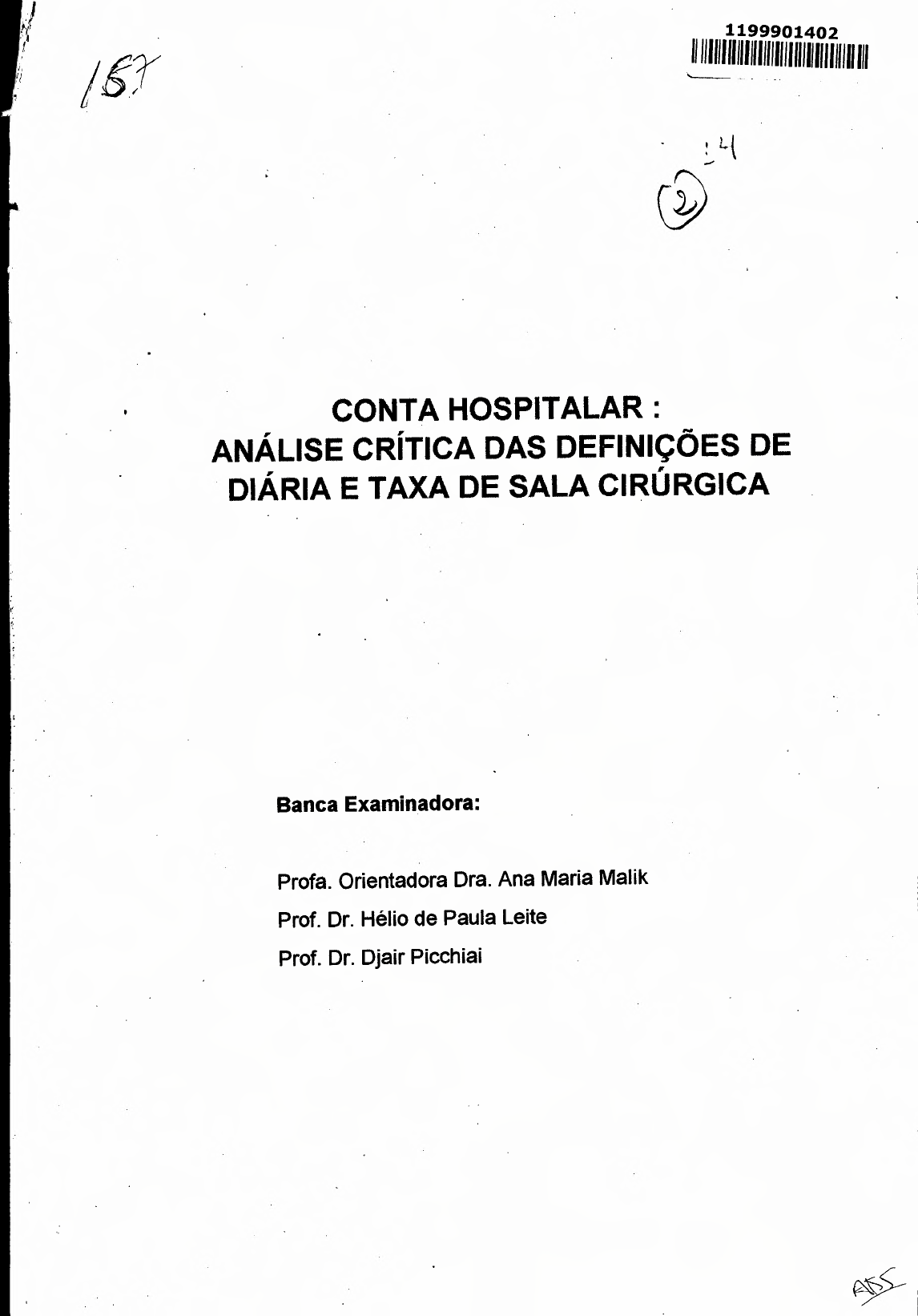 diária e taxa de sala cirúrgica. São Paulo: EAESP/FGV, 1999. 149p.