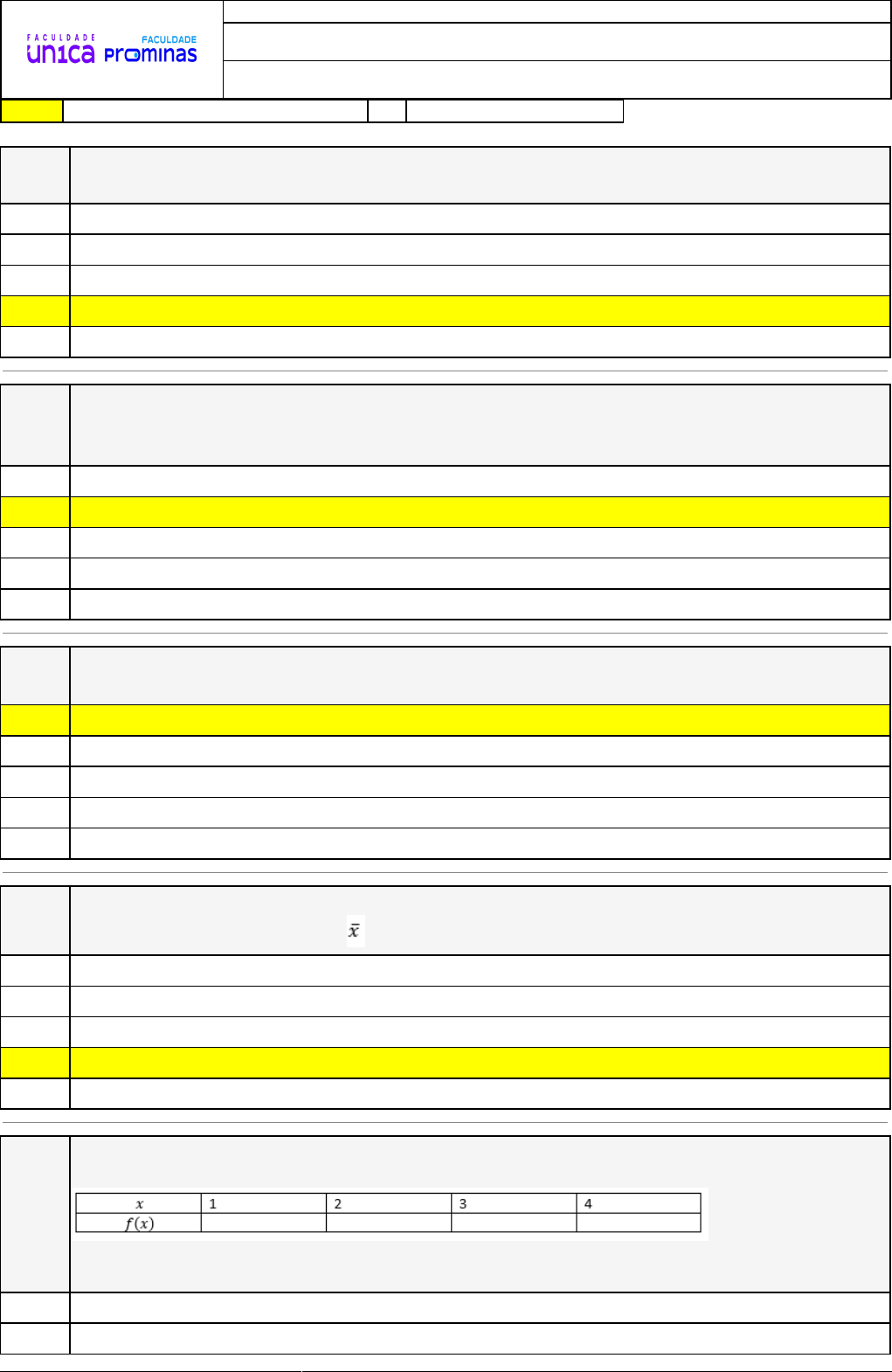 07/08/2024 17:00:08 1/2 REVISÃO DE SIMULADO Nome: RODRIGO BARBOSA FERREIRA Disciplina: Cálculo Numérico Respostas corretas são marcadas em amarelo X Respostas marcardas por você. Questão 001 Seja f(x)=(x+2)(x+1)x(x-1)3 (x-2). Para qual raiz de f o método da bisseção converge quando aplicado no intervalo [-3; 2,5]. A) 0,35 B) 0,25 C) 1 X D) 2 E) 3 Questão 002 O método de Newton foi aplicado n vezes afim de se encontrar a raiz quadrada de 7, tomando x0 = 2 e considerando nove casas decimais até que os valores de xi ficassem os mesmos a cada iteração. O menor valor de n para que isso aconteça é: A) 2 B) 4 C) 5 X D) 3 E) 1 Questão 003 Dada a função, F(x)=ex+2-x+2 cos(x)-6 com zero no intervalo [1,2]. Use o método da falsa posição para encontrar uma aproximação para a raiz de f com precisão de 10-4. A) 1,82938 B) 1,45677 C) 1,74567 X D) 1,3456 E) 1,4356 Questão 004 Considere a função f:[0,1]→R dada por f(x) = x³- 9x+3. E seja ∈ < 5 × 10-4. Nessas condições, uma aproximação para a raiz de f é: A) 0,387415 B) 0,375 C) 0,338624 D) 0,337635 X E) 0,344578 Questão 005 Considere a função f(x)= x.ln(x)-3, calcule os valores de f(x) para os seguintes valores arbitrários: Utilizando o Método da Bisseção, podemos concluir que uma das possíveis raízes, encontra-se no intervalo: A) [1,2] X B) [3,4] 07/08/2024 17:00:08 2/2 C) [2,3] D) [2,4] E) [1,4] Questão 006 A função f(x)=2x-3x, possui dois zeros, um no intervalo de [0,1] e outro no intervalo [3,4], aplicando o teorema da Bissecção, podemos determinar na primeira iteração que o intervalo que contém a raiz é: A) [0,25;1] B) [0;0,25] C) [0; 0,5] X D) [0,5;1] E) [0;0,75] Questão 007 Considere a função f(x) = x³ - 2x -1 que possui apenas uma raiz positiva. Pelo método da falsa posição essa raiz pertence ao intervalo: A) Nenhuma das alternativas anteriores. B) (1,3⁄2) C) (3⁄2, 2) D) (0,1⁄2) X E) (1⁄2,1) Questão 008 Considere a função f(x)= x²+x-6 e x=1.5. Utilizando o Método de Newton, após três iterações, considerando cinco casas decimais, temos X A) =2,00076 B) =2,0625 C) =1,87544 D) =2,00000 E) =1,99987