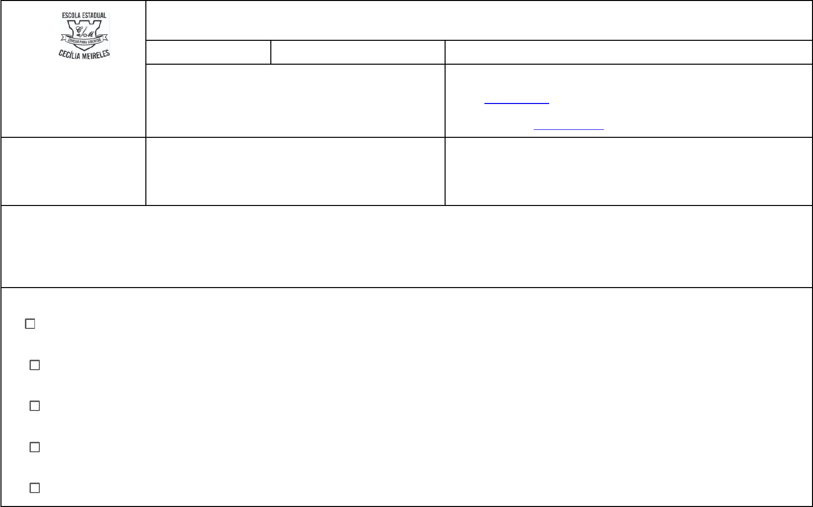 ESCOLA ESTADUAL CECÍLIA MEIRELES E-mail:escola.7994.pedagogico@educacao.mg.gov.br PLANO DE CURSO – 2º Ano (CRMG) Ensino Médio Ano: 2023 Série: 3º ANO Turma: 3º REGULAR Turno: TARDE/NOITE Professor(a): CARLOS RENATO BATALHA DISCIPLINA: FÍSICA EEB: Mariana Andrade (Manhã) Sirlene Sousa (Tarde) Paula Ludimila (Noite) Coordenadores: Rafael Oliveira ( Manhã - Tarde) Marcos Firmino ( Noite) Carga horária semanal:_2HA__ Carga horária anual:_80 HA____ Número de aulas (calendário escolar) 1º Bimestre:_20____ 2º Bimestre:_20______ 3º Bimestre:_20___ 4º Bimestre:_20_____ Média para Aprovação: 60 pontos Valor de cada etapa 1º Bimestre: 25 pontos 2º Bimestre: 25 pontos 3º Bimestre: 25 pontos 4º Bimestre: 25 pontos Ementa: No terceiro ano do curso de Física no ensino médio, o estudante irá entender conceitos que envolvem eletricidade e eletromagnetismo. Durante o ano ele irá, progressivamente, compreender os conceitos, iniciando do mais básico, que envolve o conhecimento sobre a Física dos átomos e das cargas elétricas, aprofundando aos poucos até um entendimento mais amplo sobre a eletricidade, conhecimento muito importante para nossa vida, além de ser utilizado em diversas profissões. Com esses conhecimentos os estudantes terão base para entender os conceitos do eletromagnetismo, altamente presente em nosso cotidiano em exames diagnósticos como raio x ou ressonância magnética, por exemplo, transmissões via rádio, tv e celulares, radares, entre diversos outros, conseguindo assim, compreender e analisar as influências dessas tecnologias em nossa vida.. Projetos articulados às Unidades Curriculares do Itinerário Formativo (breve descrição) Projeto de Vida: Eletivas: Aprofundamento nas áreas do Conhecimento (Práticas Comunicativas e Criativas): Preparação para mundo do trabalho: Outras Áreas de Conhecimento: 1º BIMESTRE Competência(s) específica(s) (descrever qual(is) serão desenvolvidas no bimestre): Analisar fenômenos naturais e processos tecnológicos, com base nas relações entre matéria e energia, para propor ações individuais e coletivas que aperfeiçoem processos produtivos, minimizem impactos socioambientais e melhorem as condições de vida em âmbito local, regional e/ou global. Construir e utilizar interpretações sobre a dinâmica da Vida, da Terra e do Cosmos para elaborar argumentos, realizar previsões sobre o funcionamento e a evolução dos seres vivos e do Universo, e fundamentar decisões éticas e responsáveis. Analisar situações-problema e avaliar aplicações do conhecimento científico e tecnológico e suas implicações no mundo, utilizando procedimentos e linguagens próprios das Ciências da Natureza, para propor soluções que considerem demandas locais, regionais e/ou globais, e comunicar suas descobertas e conclusões a públicos variados, em diversos contextos e por meio de diferentes mídias e tecnologias digitais de informação e comunicação (TDIC). Habilidade (descritor e descrição) Unidade temática/ Tópico Objetos de Conhecimento Metodologias / Estratégias de ensino Avaliações: formas e valores Compreender os fenômenos eletrostáticos e suas aplicações Compreender as diferenças entre condutores e isolantes. Compreender o conceito de carga elétrica e sua unidade de medida no SI. Compreender como os isolantes podem ser carregados por atrito. Compreender como os metais podem ser carregados por indução. Compreender o processo de polarização nos isolantes. Compreender as aplicações da eletrização no cotidiano. Eletricidade e Magnetismo Processos de Eletrização. - Processos de eletrização de um corpo. - Revisão (diagnóstico) -Aula expositiva dialogada; -Resumos; -Debates; -Questões para reflexão; -Atividades de fixação de conteúdo; -Pesquisas em livros, jornais, artigos, revistas e sites; -Leitura e interpretação de textos, gráficos, mapas e tabelas. -Recuperação paralela -Trabalho em grupo -Uso do livro didático -Exercício extra classe -Avaliação Bimestral – 10 pontos; - Trabalho prático de pesquisa e apresentação – 6 pontos -Debates, atividades no caderno, para casa – 5 pontos. - Conceito, frequência e participação – 4 pontos Compreender o conceito de força eletrostática. Compreender as forças elétricas como uma manifestação da ação a distância entre cargas elétricas. Saber explicar as forças de atração e repulsão. Compreender e saber explicar as forças de atração entre corpos eletricamente neutros e corpos eletrizados. Saber resolver problemas usando a expressão matemática da Lei de Coulomb. Eletricidade e Magnetismo Força Elétrica. Campo Elétrico. - A carga elétrica e a Lei de Coulomb. - Campo Elétrico. Compreender o conceito de potencial elétrico. Compreender que entre dois pontos de uma linha de força de um campo elétrico existe uma diferença de potencial elétrico. Saber que a diferença de potencial elétrico é definida como o trabalho por unidade de carga e sua unidade no SI. Entender os fenômenos eletrostáticos com base na noção de diferença de potencial elétrico. Compreender situações envolvendo transformações de energia em circuitos elétricos. Entender o conceito de voltagem (tensão ou ddp) como a razão entre a energia aplicada em um elemento de um circuito e a quantidade de carga elétrica que passa através desse elemento. Saber a unidade medida da voltagem no SI. Potencial Elétrico. Voltagem e potência elétrica. - Potencial elétrico e Diferença de Potencial. 2º BIMESTRE Competência(s) específica(s) (descrever qual(is) serão desenvolvidas no bimestre): Analisar fenômenos naturais e processos tecnológicos, com base nas relações entre matéria e energia, para propor ações individuais e coletivas que aperfeiçoem processos produtivos, minimizem impactos socioambientais e melhorem as condições de vida em âmbito local, regional e/ou global. Construir e utilizar interpretações sobre a d