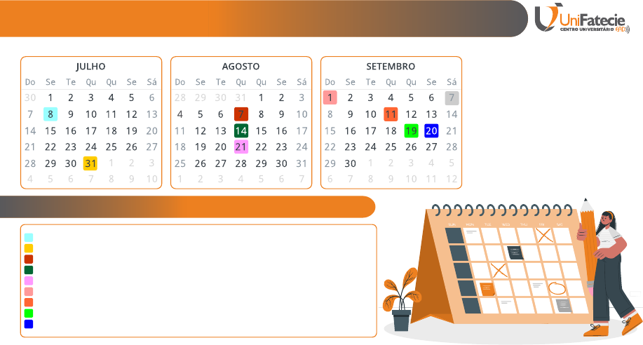 Módulo III - Calendário Acadêmico - Grupo I Legenda ATIVIDADE PRÁTICA DE APRENDIZAGEM A.P.A - PERÍODO (08/07/2024 | 07/08/2024) INÍCIO DO MÓDULO - PERÍODO (08/07/2024 | 20/09/2024) ATIVIDADE DE ESTUDO 01- PERÍODO (08/07/2024 | 31/07/2024) ATIVIDADE DE ESTUDO 02- PERÍODO (08/07/2024 | 14/08/2024) ENTREGA FINAL DA A.C.E - PERÍODO (08/07/2024 | 21/08/2024) PROVA 01ª OPORTUNIDADE- PERÍODO (30/08/2024 | 01/09/2024) PROVA 02ª OPORTUNIDADE- PERÍODO (09/09/2024 | 11/09/2024) SOLICITAÇÃO DE PROVA SUBSTITUTIVA- PERÍODO (17/09/2024 | 19/09/2024) AVALIAÇÃO SUBSTITUTIVA (20/09/2024)