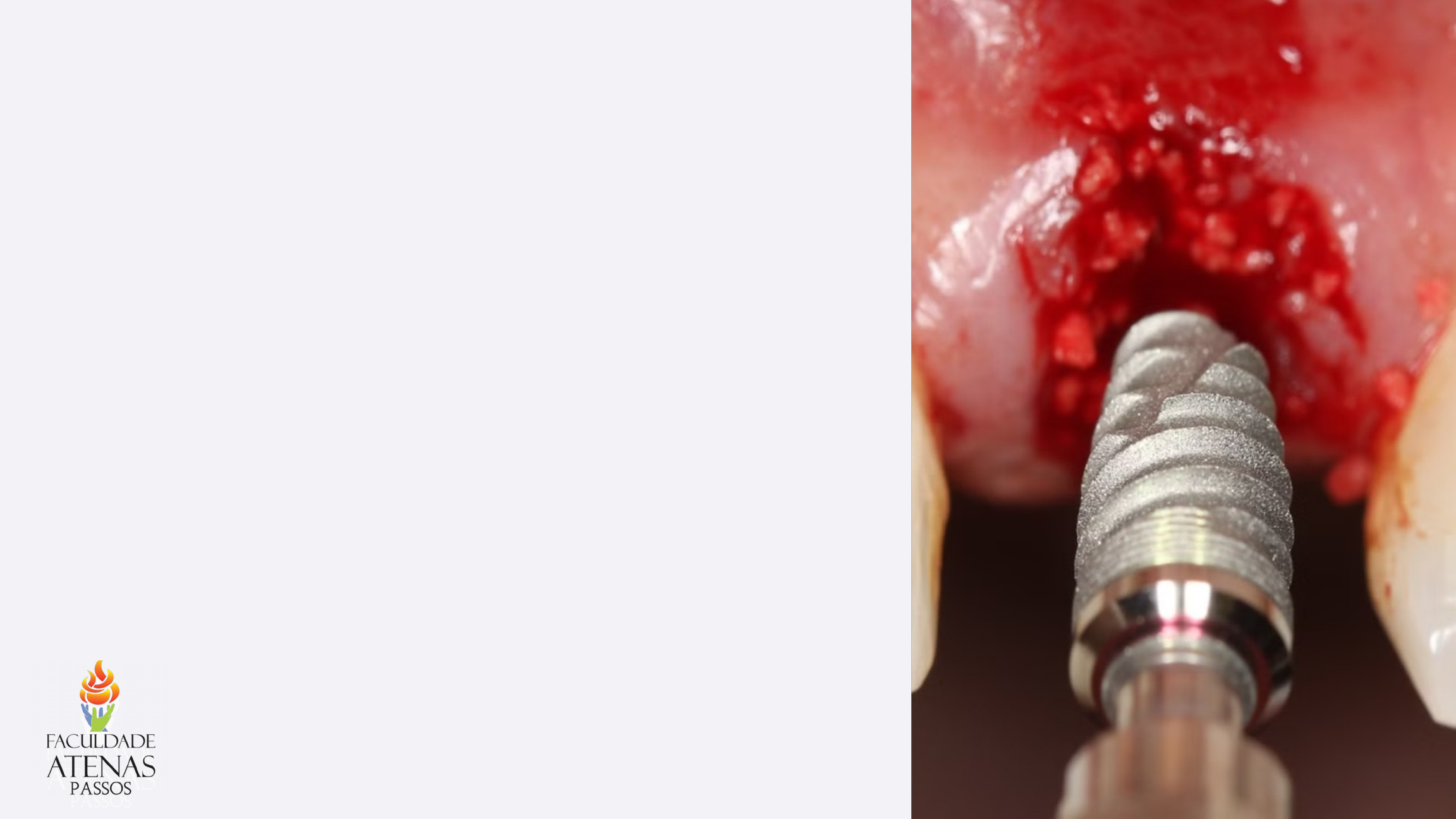 Introdução aos implantes dentários Os implantes dentários são uma solução moderna e eficaz para a reposição de dentes perdidos. Eles oferecem uma alternativa durável e natural, permitindo a restauração da função mastigatória e estética do sorriso. Profª. Letícia F. de Oliveira Lemos Checagem 01 Tipos de implantes dentários Implantes de titânio: Os mais comuns, oferecem alta resistência e osseointegração eficiente. Implantes cerâmicos: Alternativa estética para pacientes que buscam opções metálicas discretas. Implantes híbridos: Combinam materiais como titânio e cerâmica, proporcionando ótima biocompatibilidade. Tipos de Implantes Dentários Implantes Endósseos São os mais comuns e são inseridos diretamente no osso da mandíbula. Implantes Subperiostais Colocados sobre o osso, são indicados para pacientes com pouca quantidade de osso. Implantes Transmucosos Atravessam a gengiva sem precisar de uma segunda cirurgia para a exposição do implante. Tipos de Implantes Dentários Implantes Zigomáticos Utilizados quando há perda óssea significativa na maxila. Ancoram nos ossos zigomáticos (maçãs do rosto). Implantes Imediatos Colocados imediatamente após a extração de um dente. Reduzem o tempo de espera para a instalação do implante. Conhecido como "alvéolo fresco". Implantes Carga Imediata Permitem a fixação de dentes artificiais no mesmo dia da colocação do implante. Apropriados em casos selecionados. Estrutura do corpo do implante O corpo do implante dentário é a parte fundamental do sistema, responsável pela integração com o osso e estabilidade da prótese. Ele é composto por diferentes camadas e componentes que trabalham em conjunto para oferecer suporte, resistência e durabilidade. Partes dos implantes Colo do implante: – Reto – Em diagonal – Largo de tipo XP – Integrado platform-switching – Em microespirais – Transgengival (para implantes em um tempo) Colo Reto Colo platform-switching Colo Em diagonal Colo Microespirais Colo Transgengival Corpo do implante – Formatos •Cilíndrico •Escalonado •Cônico – Roscas • Triangular • Trapezoidal • Quadrada – Ápices •Ápice arredondado •Ápice ativo (Parte que entra em contato com o osso, onde pode existir câmaras cortantes) – Diâmetro •Padrão •Pequeno diâmetro •Grandes diâmetros Espelho ou plataforma dos implantes Conexão Tamanho dos implantes dentários Os implantes dentários estão disponíveis em diferentes tamanhos, variando de acordo com a região da boca e a estrutura óssea de cada paciente. Implantes curtos, de 6 a 10mm de comprimento, são indicados para áreas com menos volume ósseo, como a região posterior da mandíbula. Regular: De 10 a 13 mm, é o tamanho mais comum. Implantes longos, de 12 a 16 mm, são melhores opções para regiões com maior suporte ósseo, permitindo uma ancoragem mais estável. Instalação de implantes curtos em mandíbula pode ser recomendada como alternativa de tratamento previsível e que a taxa de sucesso pode ser comparada com a de implantes mais longos do mesmo sistema. Indicação para implante de pequeno diâmetro Diâmetro protético cervical limitado; Espaço ósseo inter-radicular reduzido; Crista Alveolar estreita; Indicação para implante de grande diâmetro Zona edêntula nos setores molares; Implantação imediata após exodontia; Substituição imediata de um implante não osseointegrado ou fraturado; Formas de Implantes Dentários 1 Cilíndricos Forma mais comum, indicada para a maioria dos casos. 2 Cônicos Imitam a forma natural da raiz do dente, indicados para regiões com pouco osso. 3 Roscados Possuem uma superfície rosqueada, proporcionando maior estabilidade. 4 Autorosqueáveis Podem ser inseridos diretamente no osso sem precisar de perfurações prévias. (MPO) Diâmetro dos implantes Os implantes dentários vêm em diferentes diâmetros, variando de 3,3 mm a 6,0 mm, de acordo com as necessidades específicas de cada paciente. O diâmetro ideal depende da largura do espaço edêntulo e da quantidade de osso disponível. Implantes de menor diâmetro são mais indicados para áreas com pouco espaço ou volume ósseo reduzido, enquanto os de maior diâmetro proporcionam uma ancoragem mais forte e estável. Implantes estreitos Indicado para áreas estreitas e espaços interdentais limitados, assim como regiões de incisivos laterais superiores e incisivos inferiores. Com plataforma mais estreitas de 2.9 e 3.0mm Espaço Mínimo (Preservação de Papila) Regiões estéticas: –Implante-Dente = 1,5mm –Implante-Implante = 3,0 mm (2x 1,5mm) • Regiões não estéticas: – Implante-Dente= 1 a 1,5mm –Implante-implante = 2 a 3 mm Resposta Tecidual ao implante em função Conservação do espaço biológico: –No plano mesiodistal, há uma distância mínima a ser respeitada entre dois implantes ou entre um dente e um implante; –No plano vestibulopalatino, há uma distância mínima a ser respeitada entre o bordo externo do implante e o rebordo da cortical vestibular; –No plano apicocoronário, há um posicionamento supracrestal, justacrestal ou subcrestal da junção implante-pilar e do colo implantar Distâncias Vestíbulo Palatino/Lingual Planejamento em Implantodontia Sabe-se que a perda de um ou mais elementos dentais podem provocar transtornos para a saúde geral do paciente. Além do efeito na saúde geral do paciente, alguns dados… Planejamento em Implantodontia Exame clínico e exames de imagem: Avaliação minuciosa da cavidade oral, incluindo análise de quantidade e qualidade óssea, para determinar a viabilidade do tratamento com implantes. Planejamento cirúrgico: Determinação da posição ideal dos implantes, considerando fatores anatômicos, estéticos e funcionais, para garantir o sucesso do procedimento. Planejamento em Implantodontia Seleção de implantes: Escolha dos implantes mais adequados em termos de diâmetro, comprimento e formato, de acordo com 