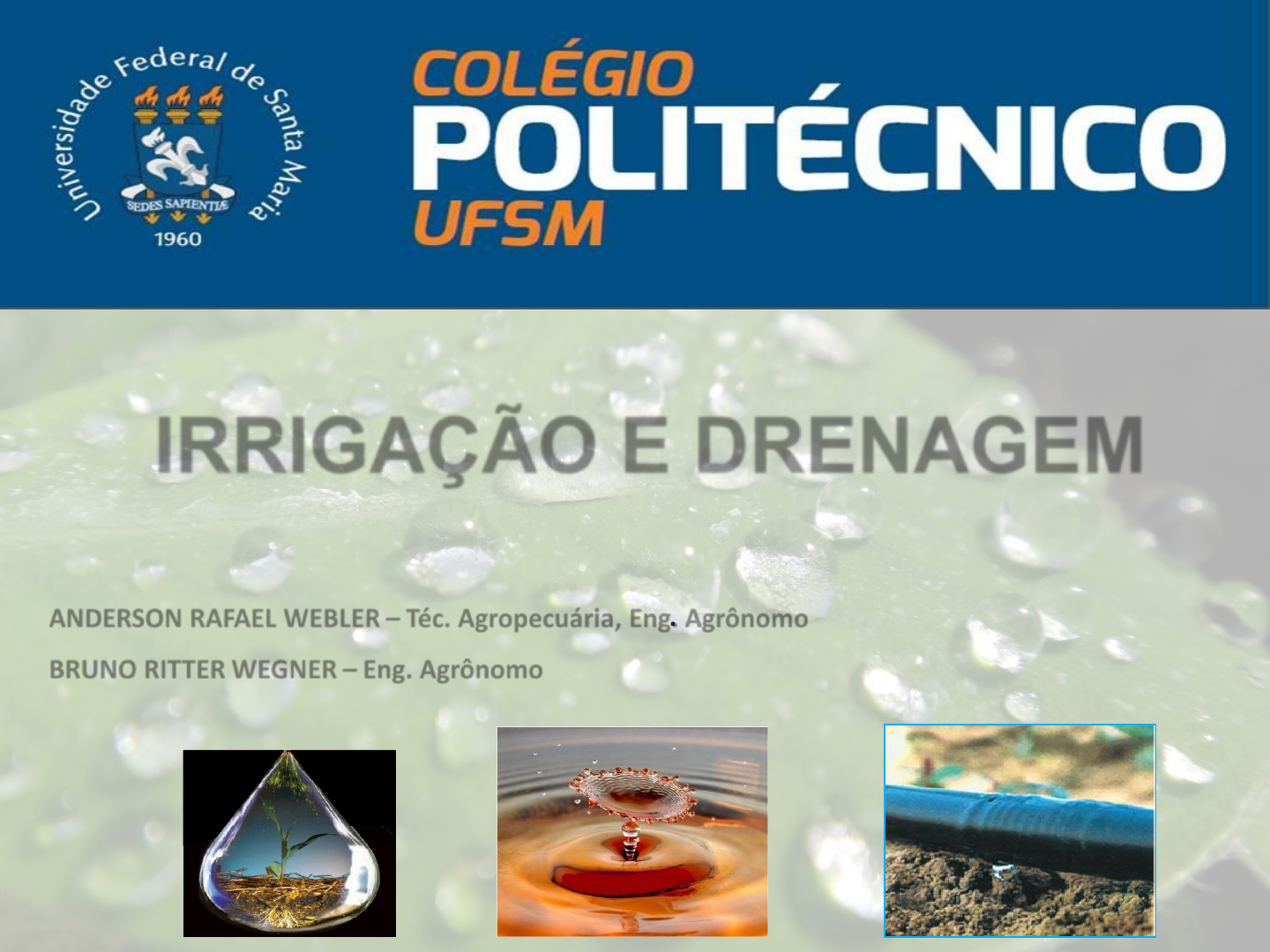 IRRIGAÇÃO E DRENAGEM ANDERSON RAFAEL WEBLER – Téc. Agropecuária, Eng. Agrônomo BRUNO RITTER WEGNER – Eng. Agrônomo Ciclo Hidrológico IRRIGAÇÃO E FERTIRRIGAÇÃO 2 Evaporação (E) – Processo pelo qual se transfere água do solo e das massas líquidas para a atmosfera. Transpiração (T) – Processo de evaporação que ocorre através da superfície das plantas. A taxa de transpiração é função dos estômatos, da profundidade radicular e do tipo de vegetação. Evapotranspiração (ET) IRRIGAÇÃO E FERTIRRIGAÇÃO 3 IRRIGAÇÃO E FERTIRRIGAÇÃO 4 IRRIGAÇÃO E FERTIRRIGAÇÃO 5 Transpiração IRRIGAÇÃO E FERTIRRIGAÇÃO 6 Processo de Evapotranspiração. Evapotranspiração (ET) Processo simultâneo de transferência de água para a atmosfera através da evaporação (E) e da transpiração (T). A taxa de evapotranspiração é normalmente expressa em milímetros (mm) por unidade de tempo. IRRIGAÇÃO E FERTIRRIGAÇÃO 7 Fatores que afetam a Evapotranspiração Fatores meteorológicos/climáticos: Radiação solar Temperatura do ar Umidade relativa do ar Velocidade do vento IRRIGAÇÃO E FERTIRRIGAÇÃO 8 FATORES QUE INTERFEREM NA EVAPOTRANSPIRAÇÃO Estágio de desenvolvimento da cultura Período críticos de desenvolvimento IRRIGAÇÃO E FERTIRRIGAÇÃO 9 Altura e sombreamento da cultura sobre o solo (área foliar e espaçamento) Sistema de cultivo ( convencional e plantio direto ) IRRIGAÇÃO E FERTIRRIGAÇÃO 10 FATORES QUE INTERFEREM NA EVAPOTRANSPIRAÇÃO Capacidade de água disponível IRRIGAÇÃO E FERTIRRIGAÇÃO 11 FATORES QUE INTERFEREM NA EVAPOTRANSPIRAÇÃO Durante o crescimento vegetativo de uma cultura, o valor de Kc varia à medida que a cultura cresce e se desenvolve, do mesmo modo que varia com a fração de cobertura da superfície do solo pelo dossel vegetativo, e à medida que as plantas envelhecem e atingem a maturação. Por este motivo, calcula-se o Kc em função do IAF. COEFICIENTE DE CULTIVO IRRIGAÇÃO E FERTIRRIGAÇÃO 12 IRRIGAÇÃO E FERTIRRIGAÇÃO 13 IRRIGAÇÃO E FERTIRRIGAÇÃO 14 Cultura Kc ini Kc med Kc fim Altura máxima das plantas h (m) Profundidade máxima do sistema radicular Zr (m) Índice P OLERÍCOLAS DE PEQUENO PORTE 0,7 1,05 0,95 0,4 - - Cenoura - 1,05 0,95 0,3 0,5-1,0 0,35 Aipo - 1,05 1,00 0,6 0,3-0,5 0,20 Crucíferas (couve)7 - 1,05 0,95 0,4 0,4-0,6 0,40 Alho - 1,00 0,70 0,3 0,3-0,5 0,30 Alface - 1,00 0,95 0,3 0,3-0,5 0,30 Cebola - 1,05 0,75 0,4 0,3-0,6 0,30 Cebola verde - 1,00 1,00 0,3 0,3-0,6 0,30 Espinafre - 1,00 0,95 0,3 0,3-0,5 0,20 Rabanete - 0,90 0,85 0,3 0,3-0,5 0,30 OLERÍCOLAS TUBEROSAS 0,5 1,10 0,95 0,5 - - Beterraba - 1,05 0,95 0,4 0,6-0,1 0,50 Mandioca 1º ano 0,3 0,80 0,30 1,0 0,5-0,8 0,60 Mandioca 2º ano 0,3 1,10 0,50 1,5 0,7-1,0 0,60 Pastinaca 0,5 1,05 0,95 0,4 0,5-1,0 0,40 Nabo - 1,10 0,95 0,6 0,5-1,0 0,50 Beterraba açucareira8 0,35 1,20 0,70 0,5 0,7-1,2 0,55 15 EVAPOTRANSPIRAÇÃO (ET) • Evapotranspiração potencial de referência (ETo): evapotranspiração de uma cultura hipotética que cobre toda a superfície do solo (gramado), em crescimento ativo, sem restrição hídrica nem nutricional, com altura média de 0,12 m, albedo de 0,23 e resistência da superfície de 70 s m-1, sem restrições hídricas no solo e com adequada bordadura. • Evapotranspiração potencial (máxima) da cultura (Etm): é a evapotranspiração de determinada cultura quando há ótimas condições de umidade e nutrientes no solo, de modo a permitir produção potencial desta cultura no campo. IRRIGAÇÃO E FERTIRRIGAÇÃO 16 Evapotranspiração real da cultura (Etr): é a quantidade de água evapotranspirada por uma determinada cultura, sob as condições normais de cultivo, isto é, sem a obrigatoriedade do teor de umidade permanecer próximo a CC. IRRIGAÇÃO E FERTIRRIGAÇÃO 17 DETERMINAÇÃO DA ETC IRRIGAÇÃO E FERTIRRIGAÇÃO 18 Determinação da evapotranspiração (ET) • Métodos diretos: lisímetros de drenagem e pesagem. • Métodos indiretos: Tanque classe A, fórmulas empíricas, método de Penmann-Monteith IRRIGAÇÃO E FERTIRRIGAÇÃO 19 MÉTODOS DIRETOS: Lisímetro: depósito enterrado, aberto na parte superior, contendo o terreno que se quer estudar. O solo recebe a precipitação, e é drenado para o fundo do aparelho onde a água é coletada e medida. Medidas de umidade do solo: medir sucessivamente a umidade e estabelecer por o valor da evapotranspiração. arm/t = ET + Percolado IRRIGAÇÃO E FERTIRRIGAÇÃO 20 Os lisímetros, consistem de tanques contendo solo utilizados para estudar a dimânica da água no solo, mede diretamente a evapotranspiração (ET) de cultivos agrícolas e a evaporação de água em solo. LISÍMETROS IRRIGAÇÃO E FERTIRRIGAÇÃO 22 T P A VpVa ETpc em que: ETpc = evapotranspiração média da cultura [mm d-1]; Va = volume de água aplicado [L]; Vp = volume de água percolado [L]; A = área do tanque [m2]; T = intervalo entre medições [dia]; e P = precipitação ocorrida no período considerado [mm]. LISÍMETROS IRRIGAÇÃO E FERTIRRIGAÇÃO 23 Exemplo de aplicação: Com o objetivo de determinar a evapotranspiração para uma cultura de milho por meio de um lisímetro de percolação, foram levantados os seguintes dados: - volume de água aplicado (Va): 0,10 m3; - volume de água percolado (Vp): 0,05 m3; - área do lisímetro (A): 1,2 m2; - intervalo entre medições (T): 7 dias; e - precipitação no período considerado: não houve. a) Volume de água retido (Vr): Vr = Va - Vp Vr = 0,1 - 0,05 = 0,05 m3 = 50 L IRRIGAÇÃO E FERTIRRIGAÇÃO 24 2- 2Vr m L 67,41 m 2,1 L50 A Vr L 1- Vr d mm 95,5ETpc dias 7 mm 67,41 T L ETpc b) Lâmina equivalente ao volume retido (LVr): Sabendo-se que 1 L m-2 equivale a 1 mm, tem-se que: LVr = 41,67 mm c) Evapotranspiração média do período considerado (ETpc) TANQUE CLASSE A Tanque "Classe A" – US Weather Bureau IRRIGAÇÃO E FERTIRRIGAÇÃO 25 • O tanque classe A, que tem forma circular com um diâmetro de 121 cm e profundida